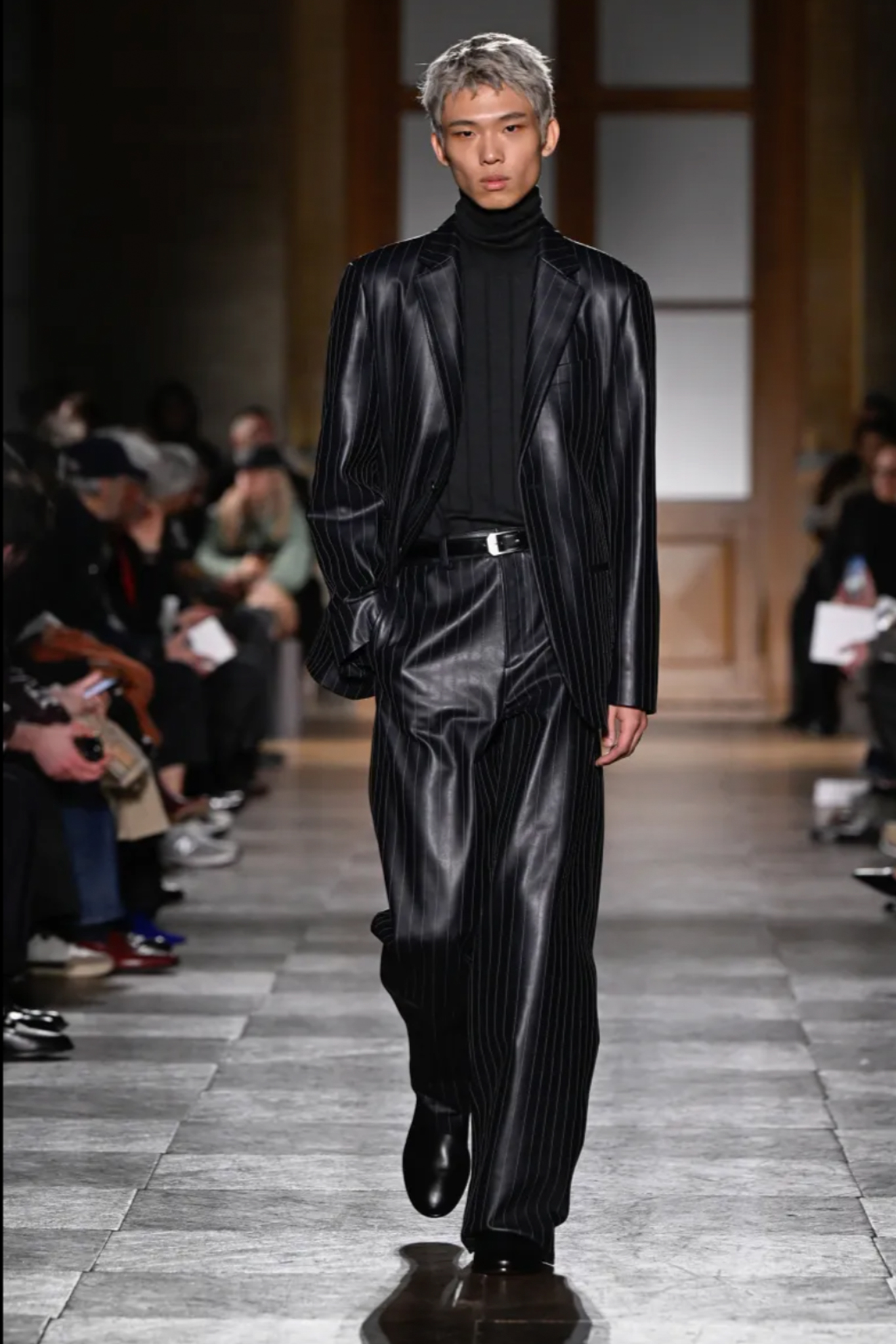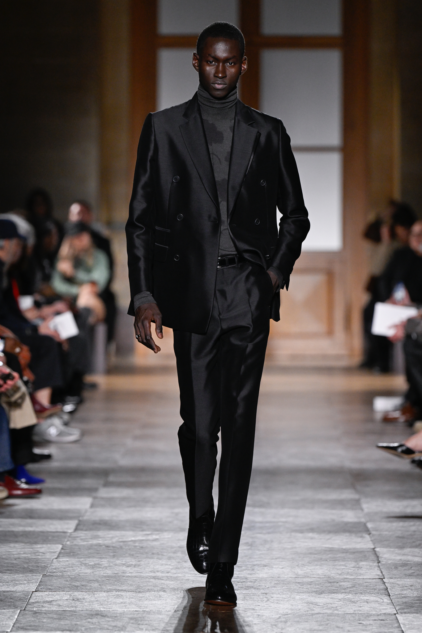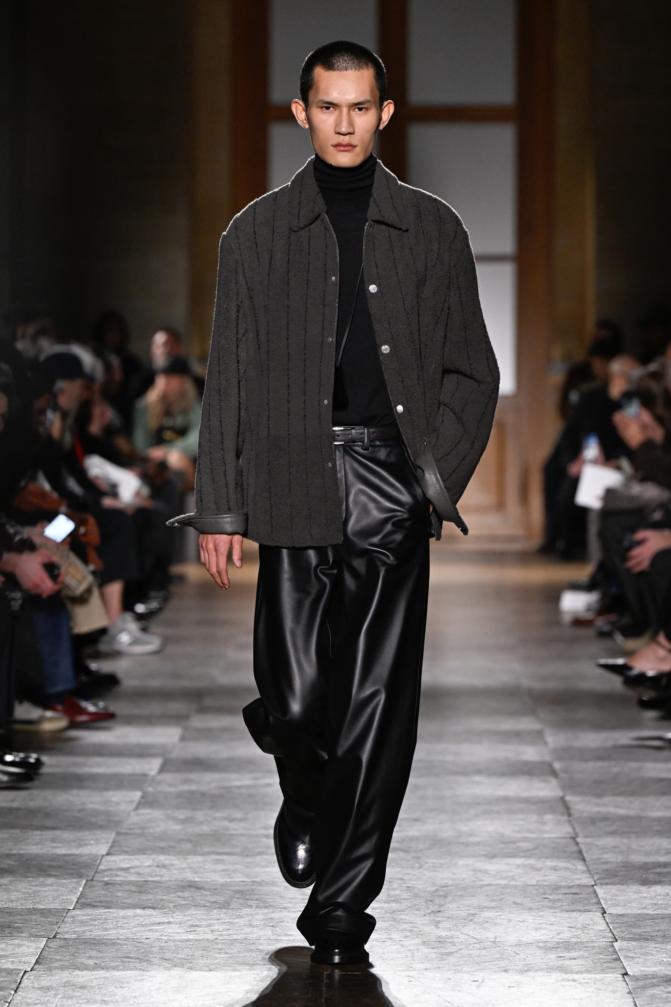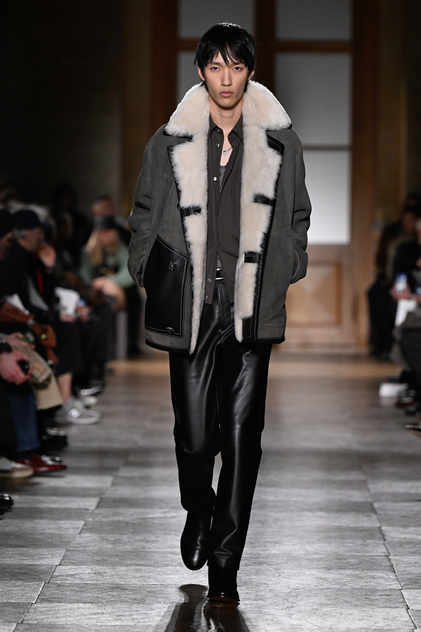 爱马仕 2026 秋冬男装系列作为 Véronique Nichanian 执掌 37 年后的告别之作,以精湛剪裁与经典线条诠释永恒美学。系列延续品牌标志性的合身比例,袖长设计精准贴合手腕,无论挺括大衣、皮质夹克或针织衫,均以恰到好处的长度勾勒利落轮廓。无论是复刻自 1991 年的连体工装,还是全新的珊瑚粉羊毛皮大衣,袖部剪裁皆呼应整体造型的简洁与平衡,亦暗含 Nichanian 对「慢工细作」的坚持。这一细节亦成为其设计哲学的无声注脚——在瞬息万变的时尚中,唯有精准、经得起时间考验的剪裁,方能定义真正的奢侈。