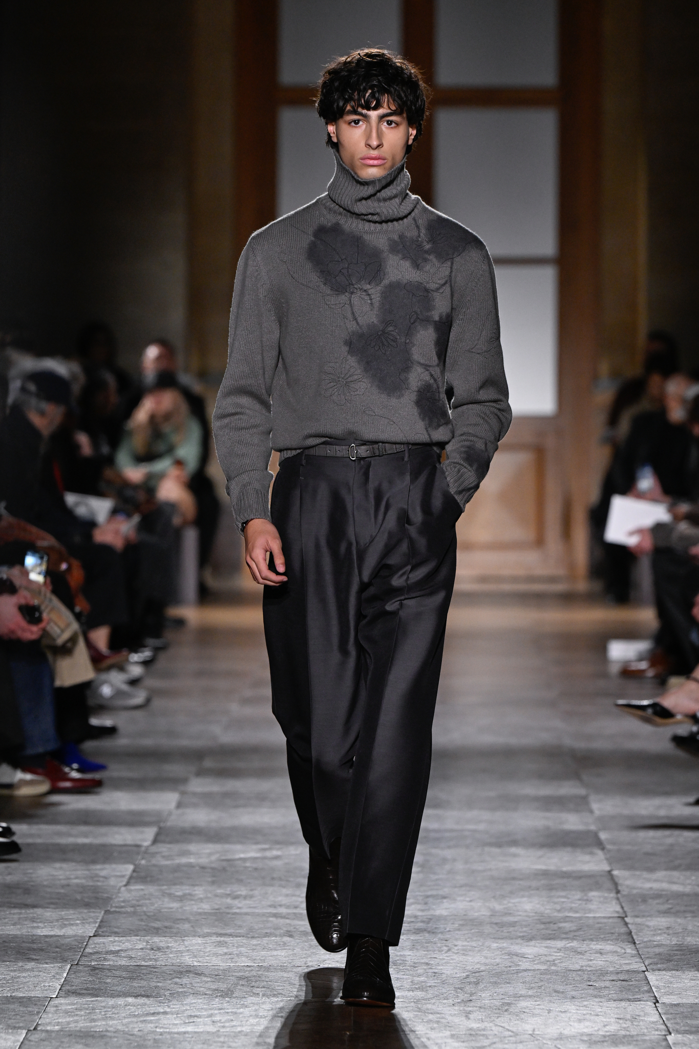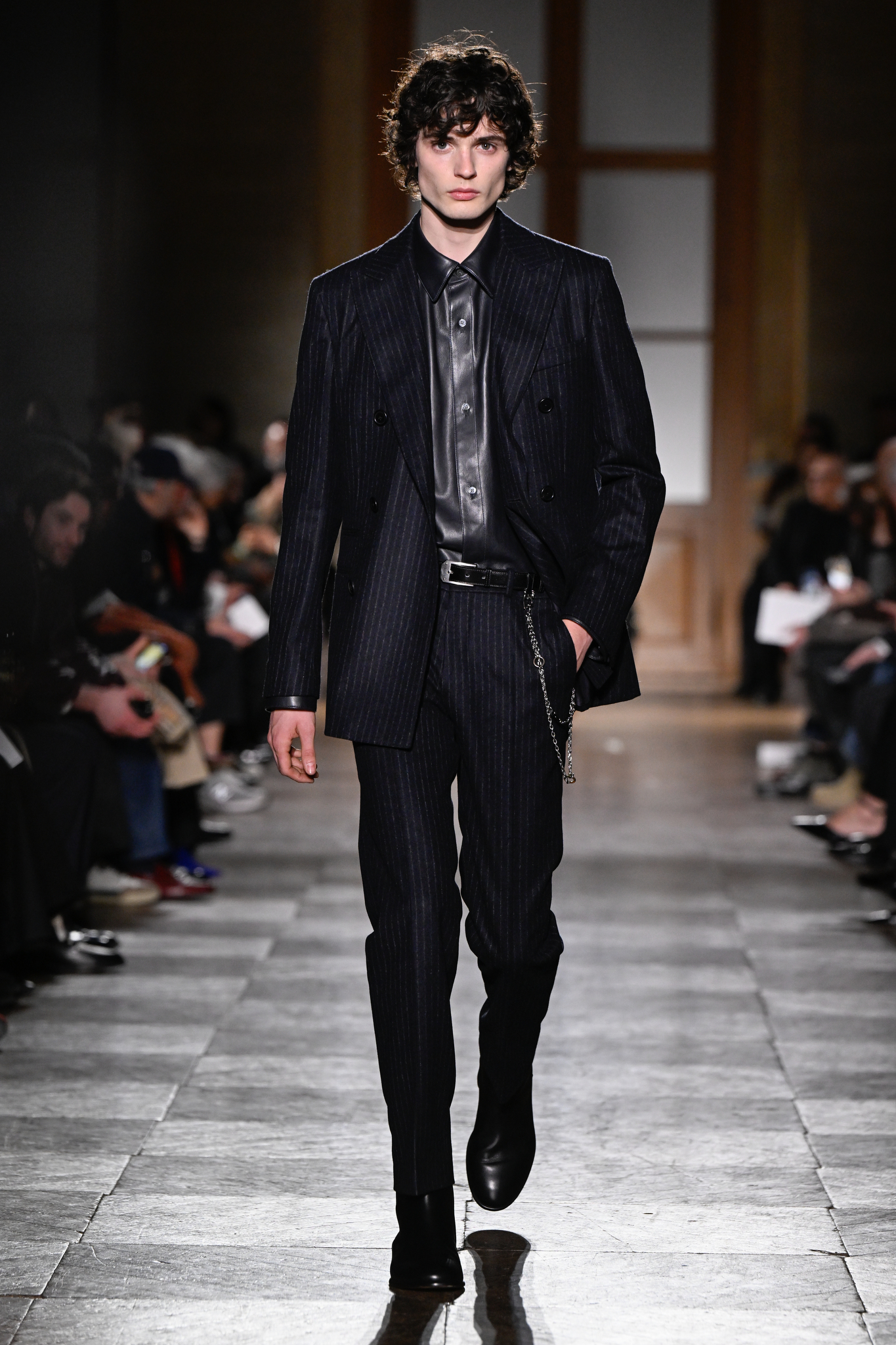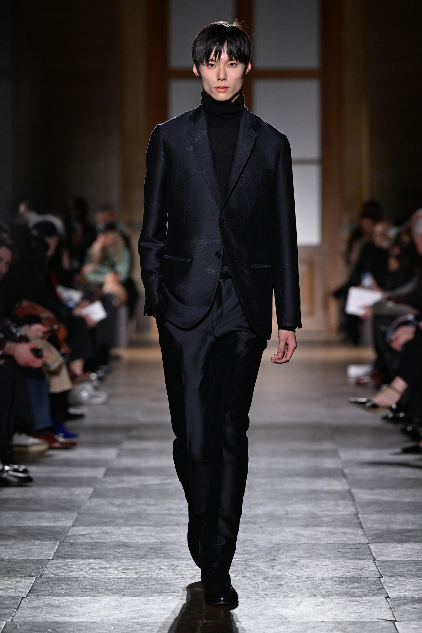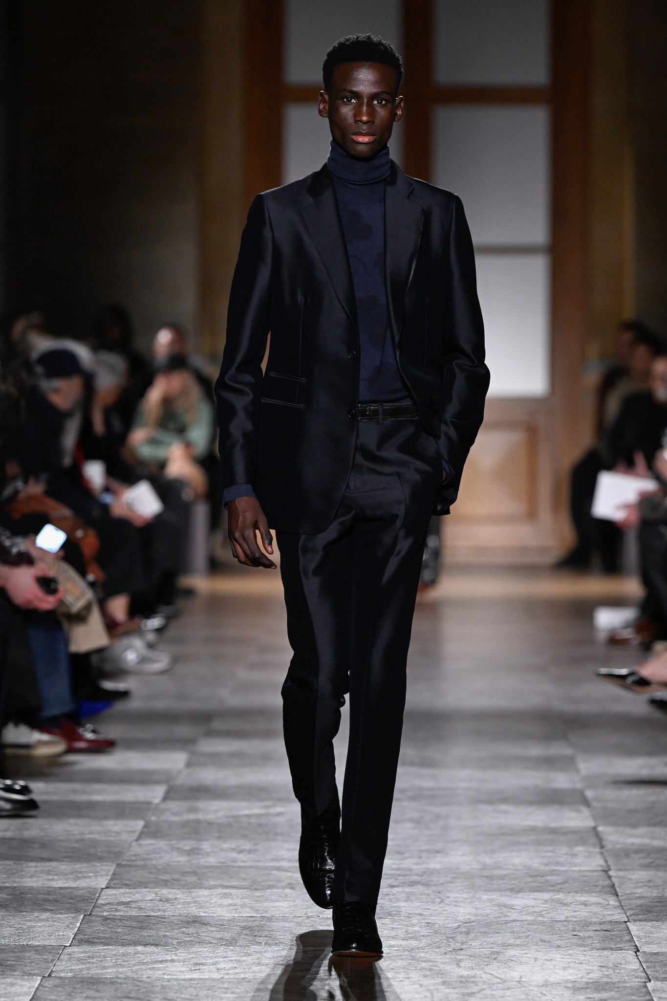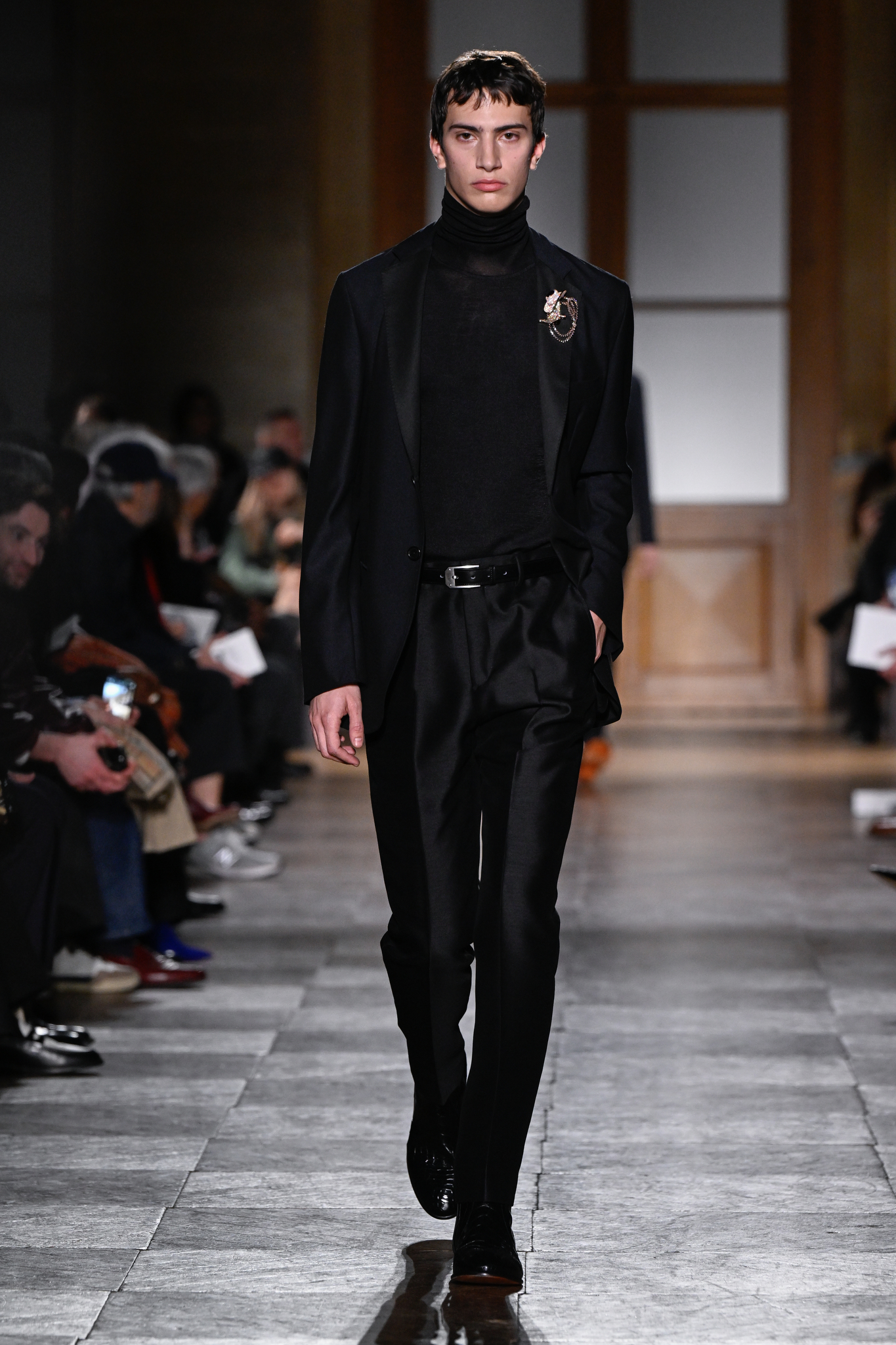 爱马仕 2026 秋冬男装系列作为 Véronique Nichanian 执掌 37 年后的告别之作,以精湛剪裁与经典线条诠释永恒美学。系列延续品牌标志性的合身比例,袖长设计精准贴合手腕,无论挺括大衣、皮质夹克或针织衫,均以恰到好处的长度勾勒利落轮廓。无论是复刻自 1991 年的连体工装,还是全新的珊瑚粉羊毛皮大衣,袖部剪裁皆呼应整体造型的简洁与平衡,亦暗含 Nichanian 对「慢工细作」的坚持。这一细节亦成为其设计哲学的无声注脚——在瞬息万变的时尚中,唯有精准、经得起时间考验的剪裁,方能定义真正的奢侈。