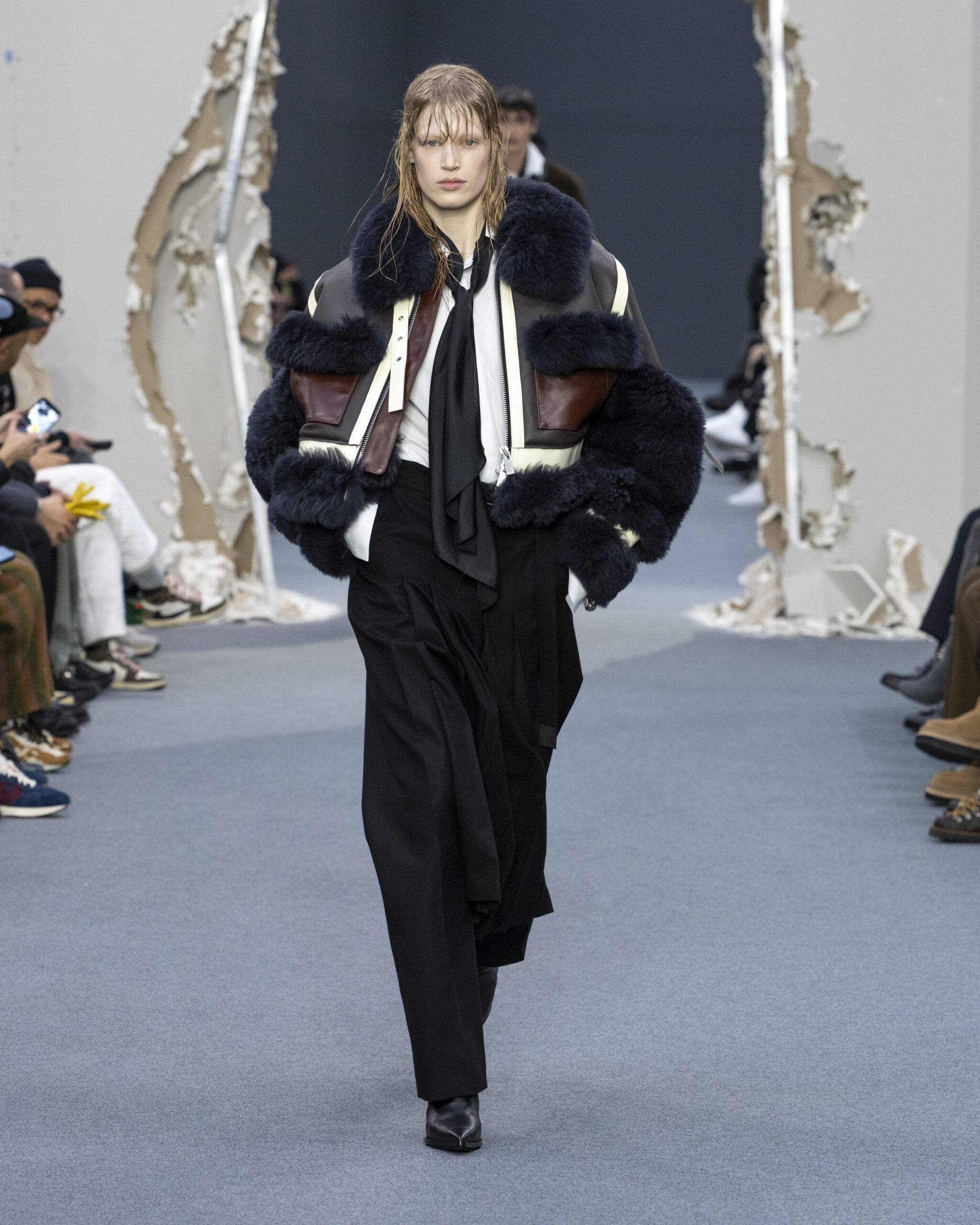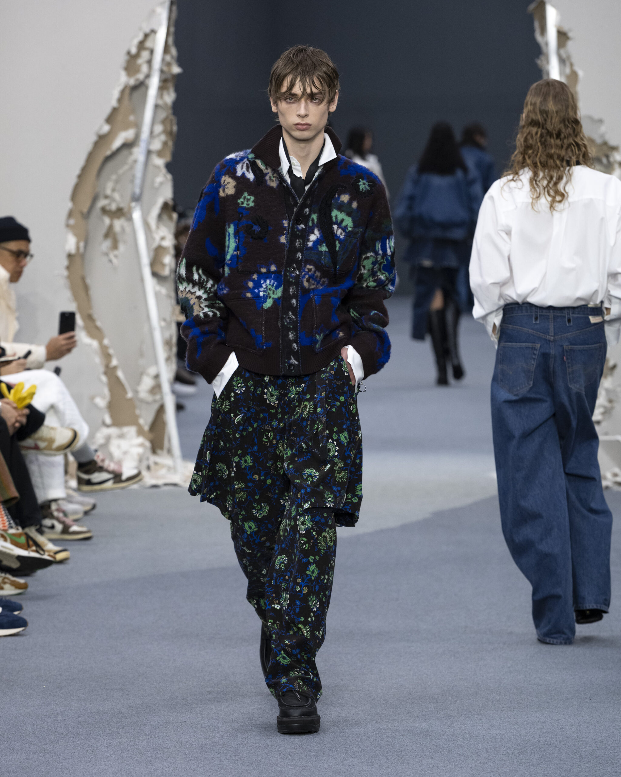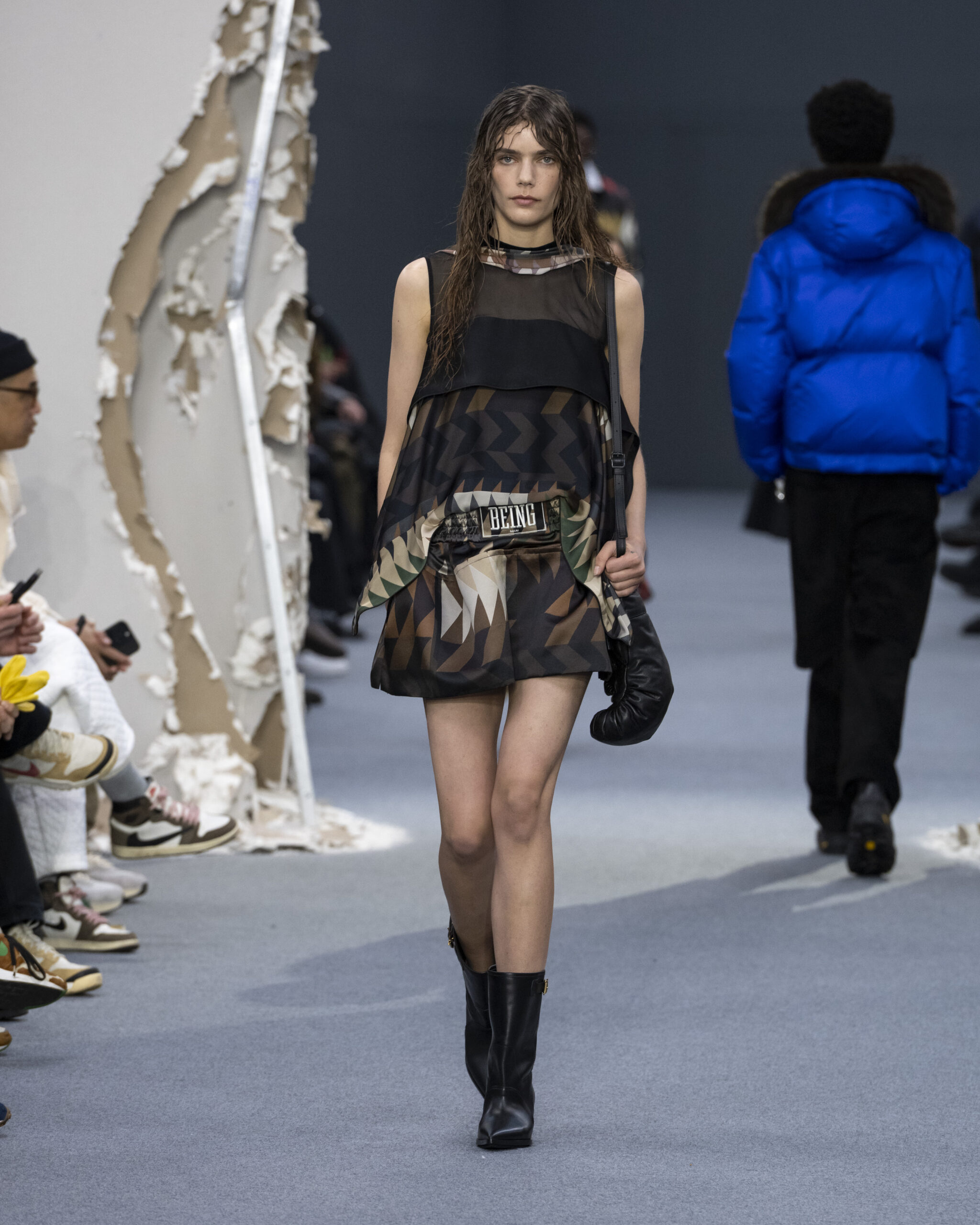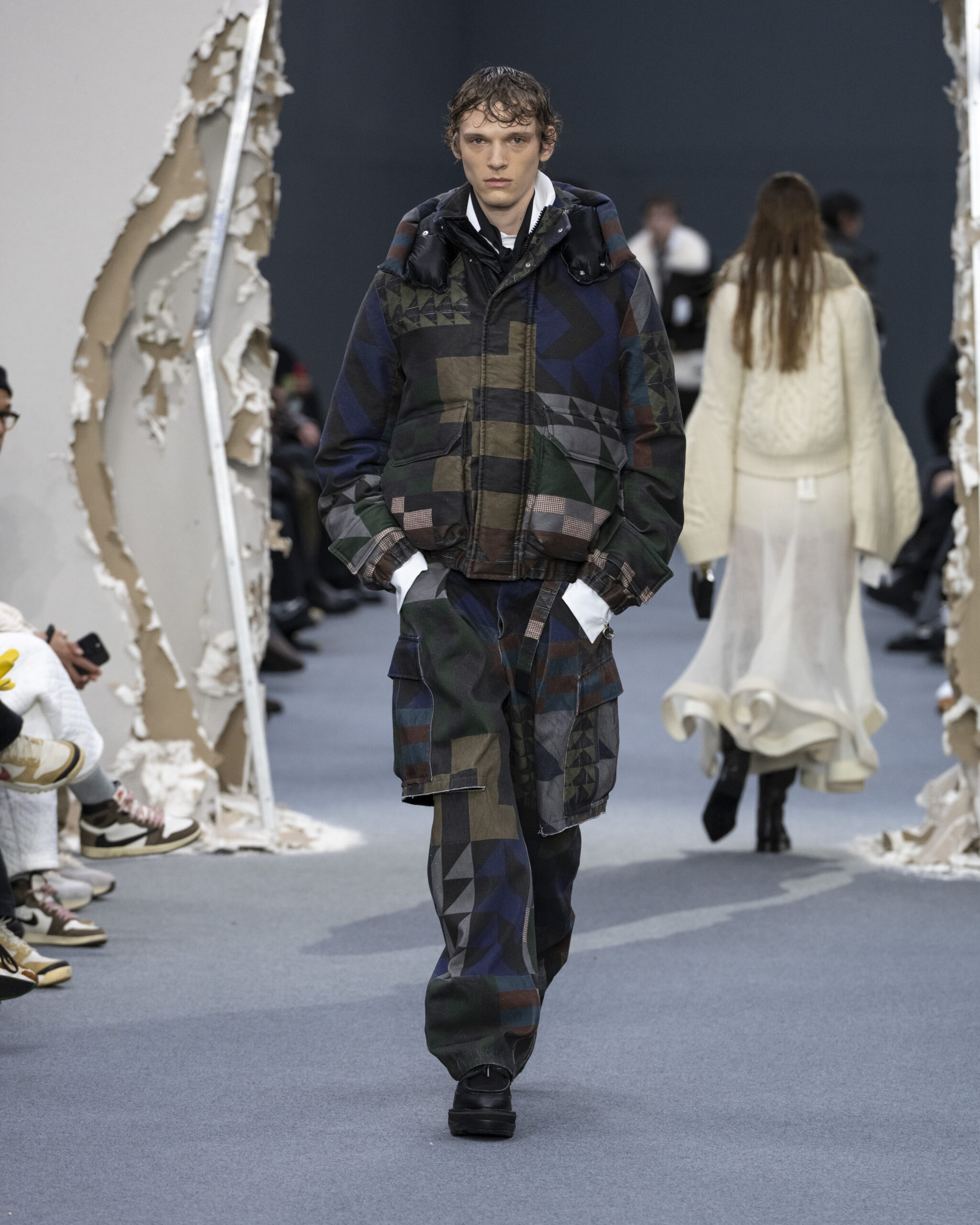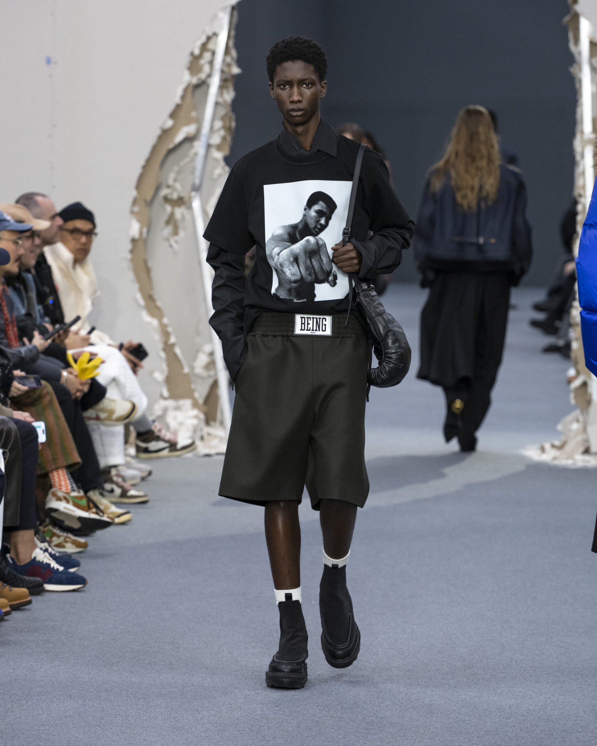 本季,sacai 品牌创始人兼设计师阿部千登势(Chitose Abe)延续其标志性混搭美学,探索「破坏之美」:通过拆解与重构实现新生。传奇拳王穆罕默德·阿里挥拳而出的画面象征性地诠释了这一理念,寓意打破重重束缚,追寻自由之境——设计自由、思想自由与存在自由。