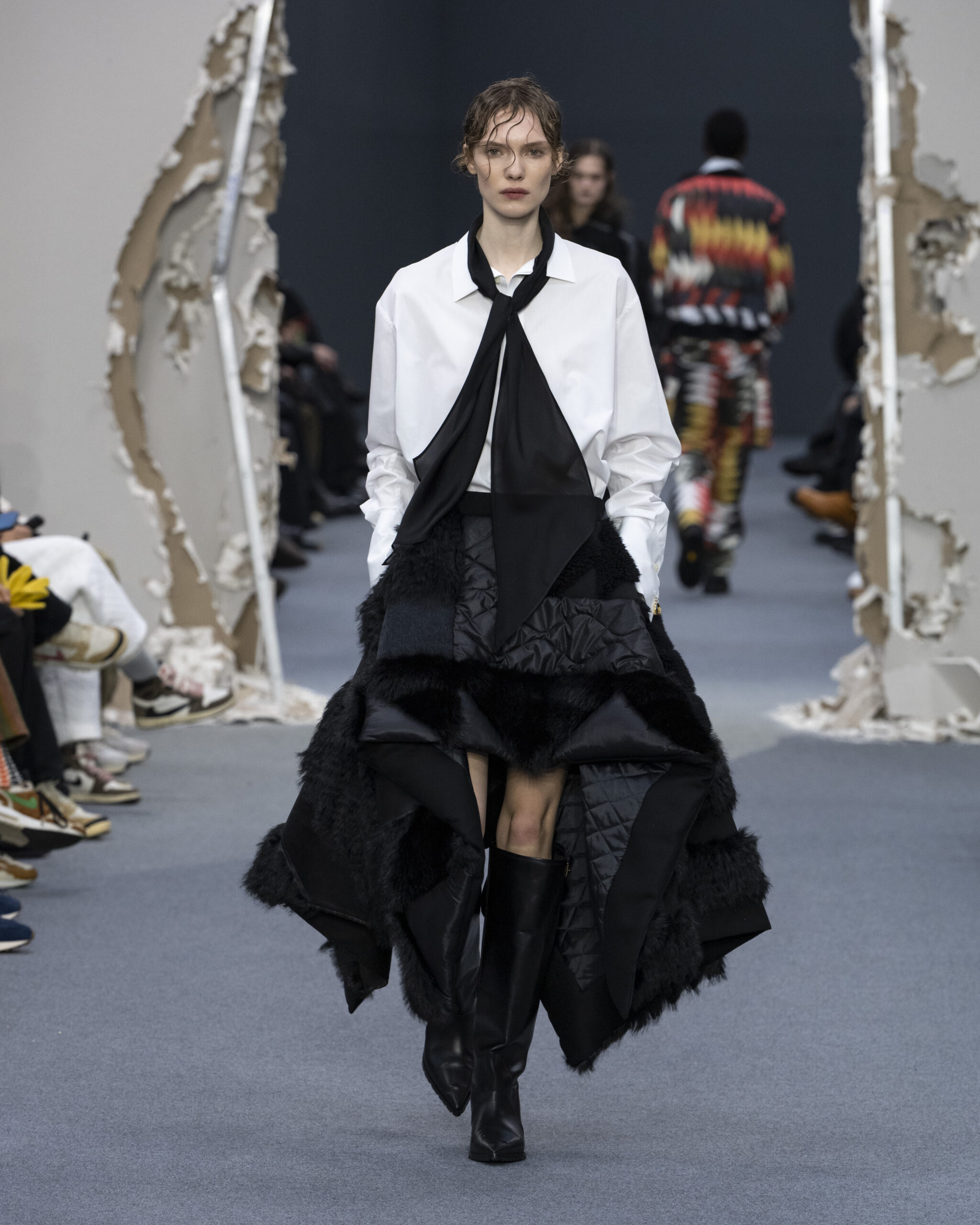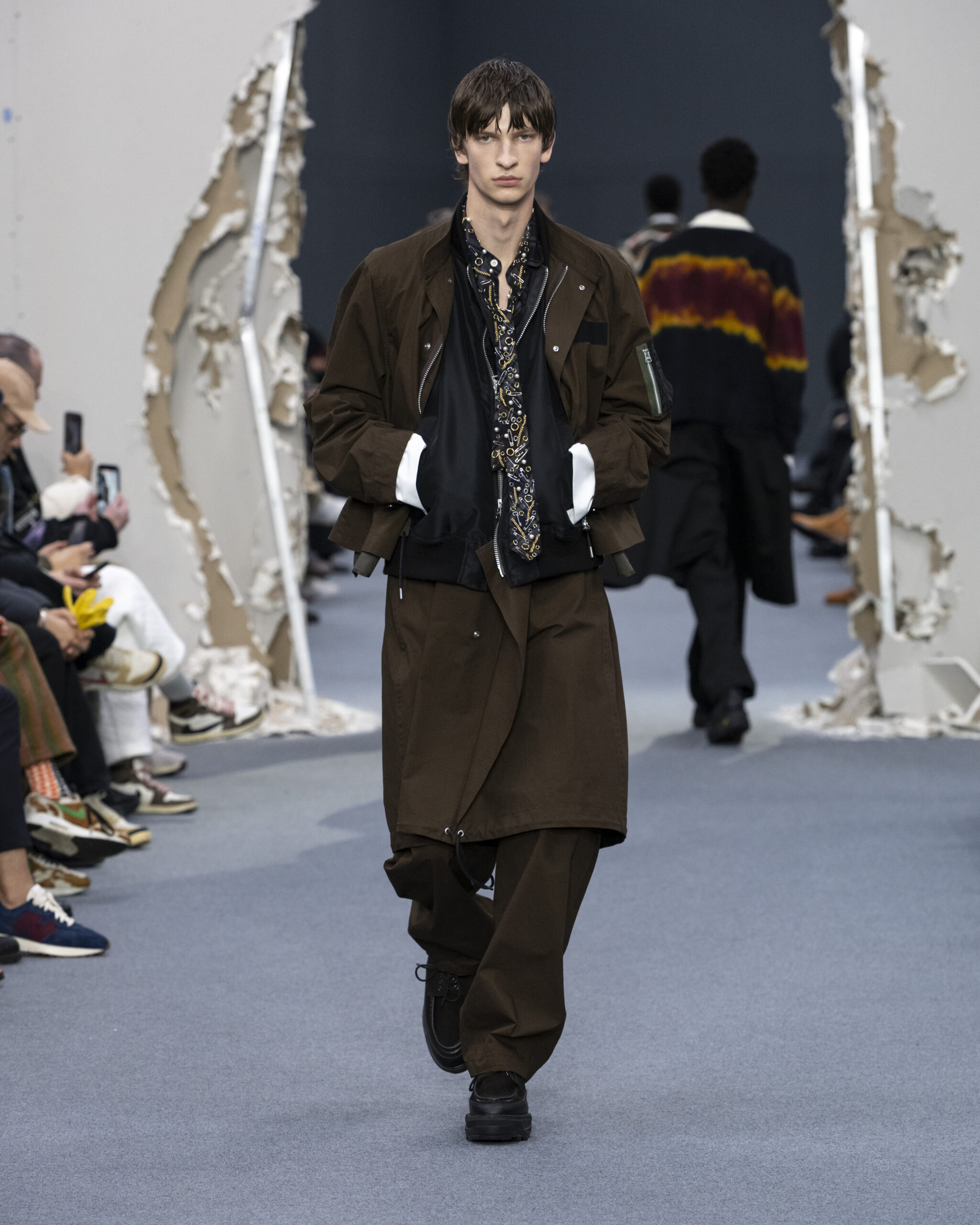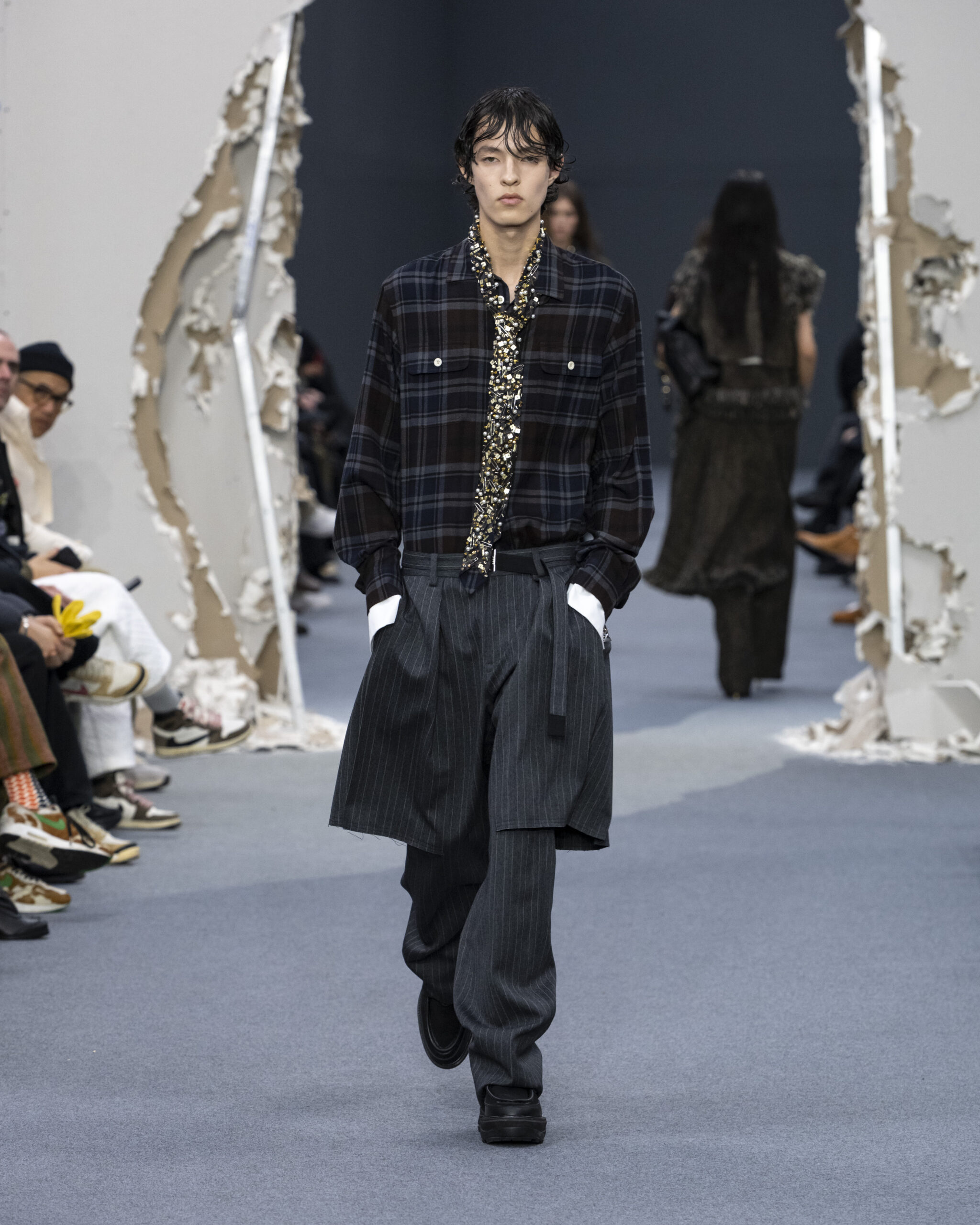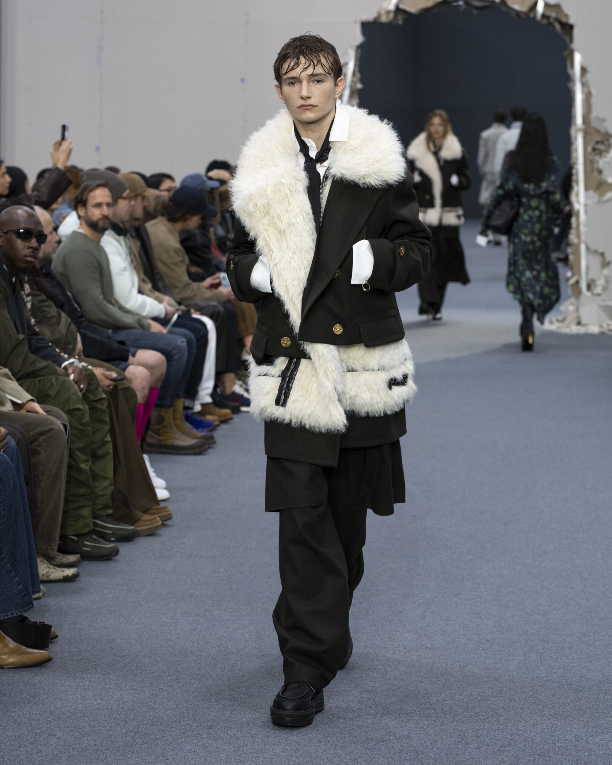 本季,sacai 品牌创始人兼设计师阿部千登势(Chitose Abe)延续其标志性混搭美学,探索「破坏之美」:通过拆解与重构实现新生。传奇拳王穆罕默德·阿里挥拳而出的画面象征性地诠释了这一理念,寓意打破重重束缚,追寻自由之境——设计自由、思想自由与存在自由。