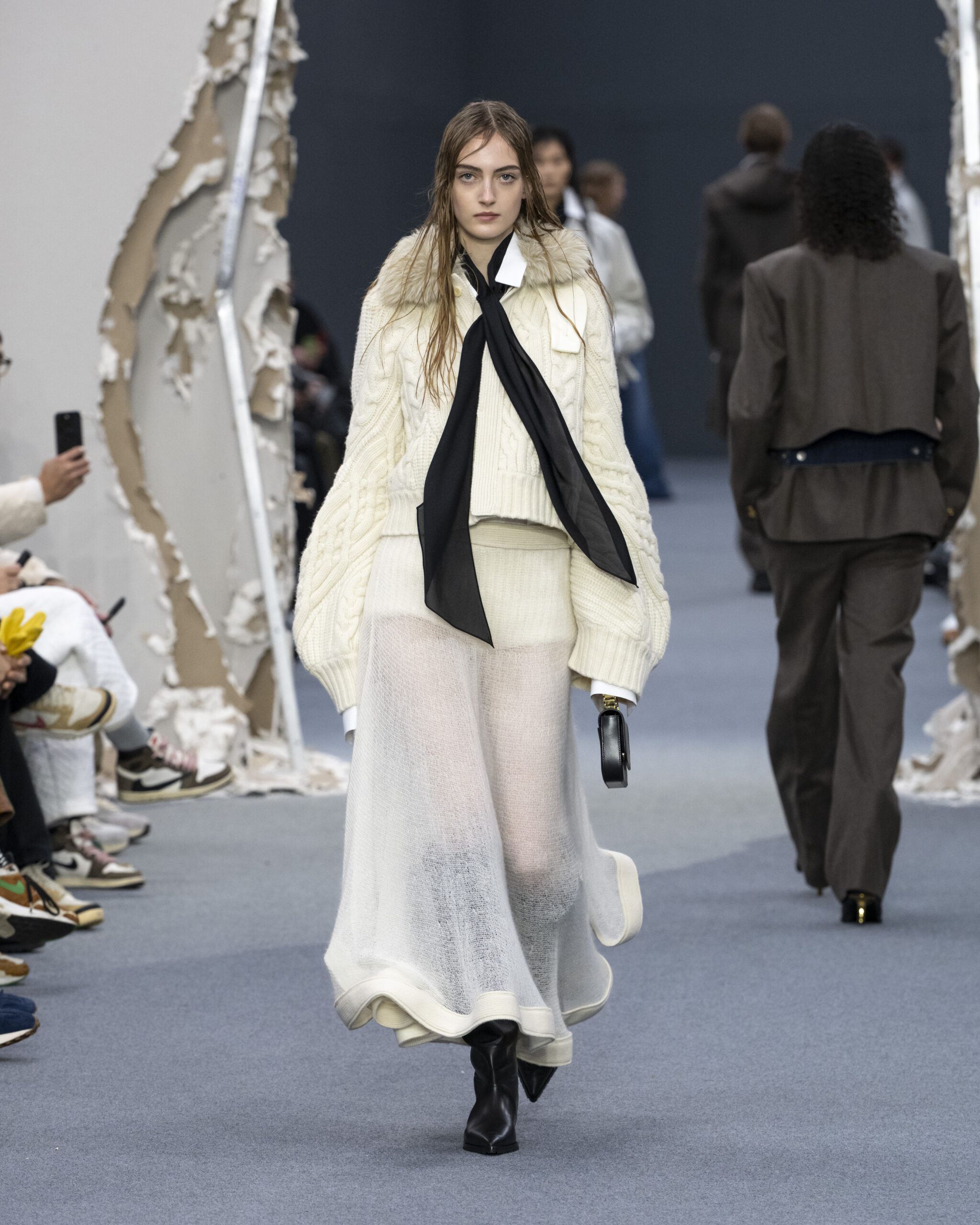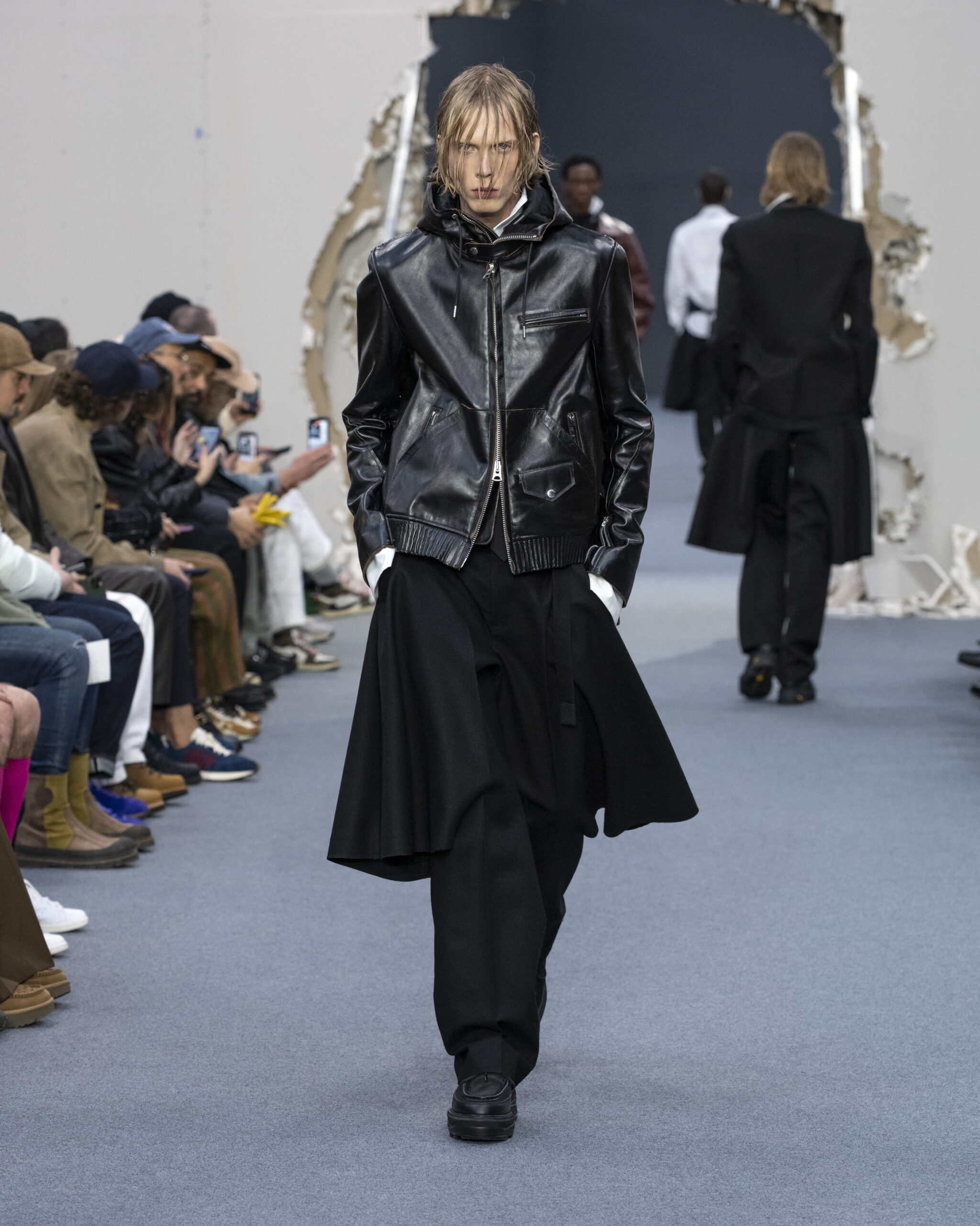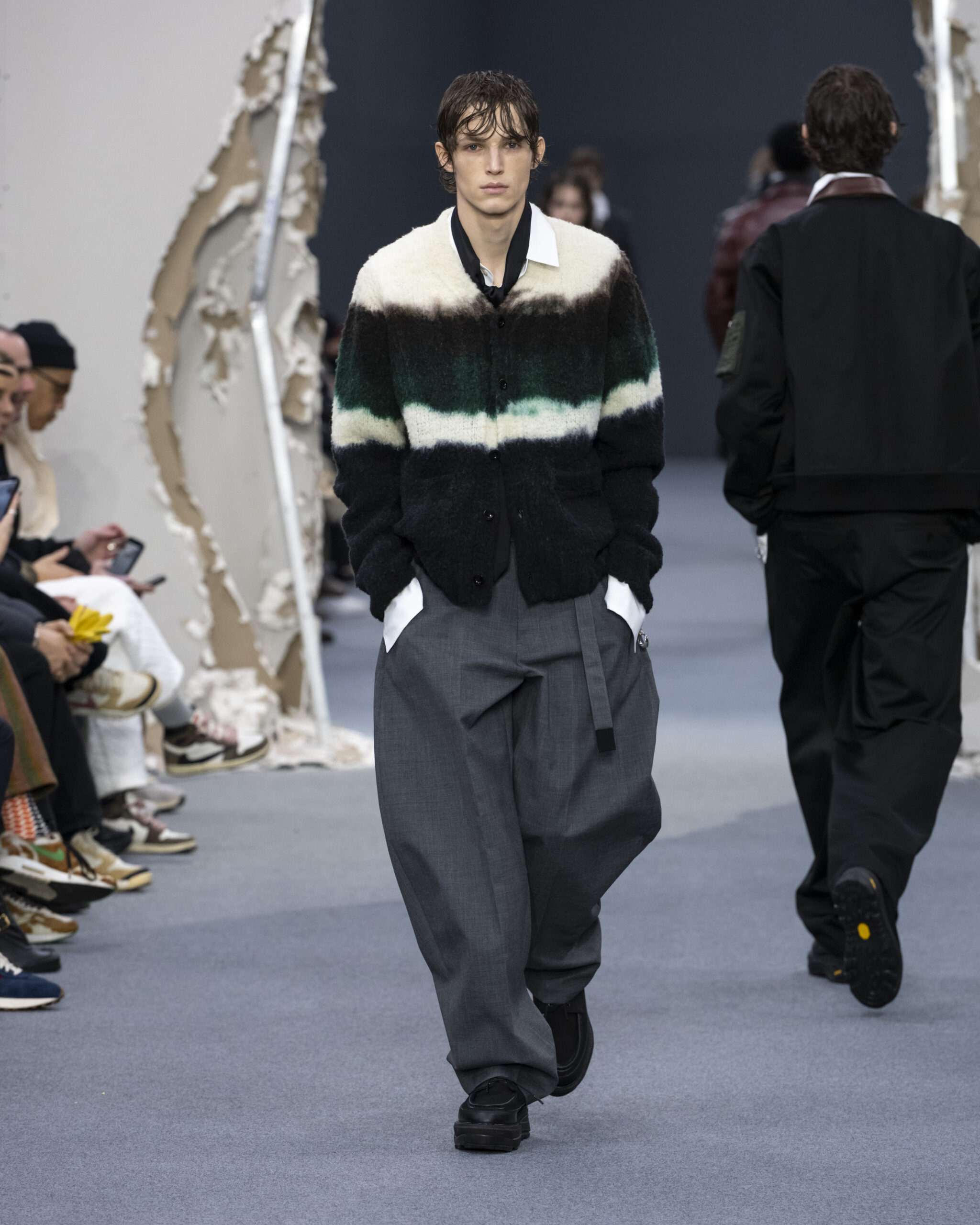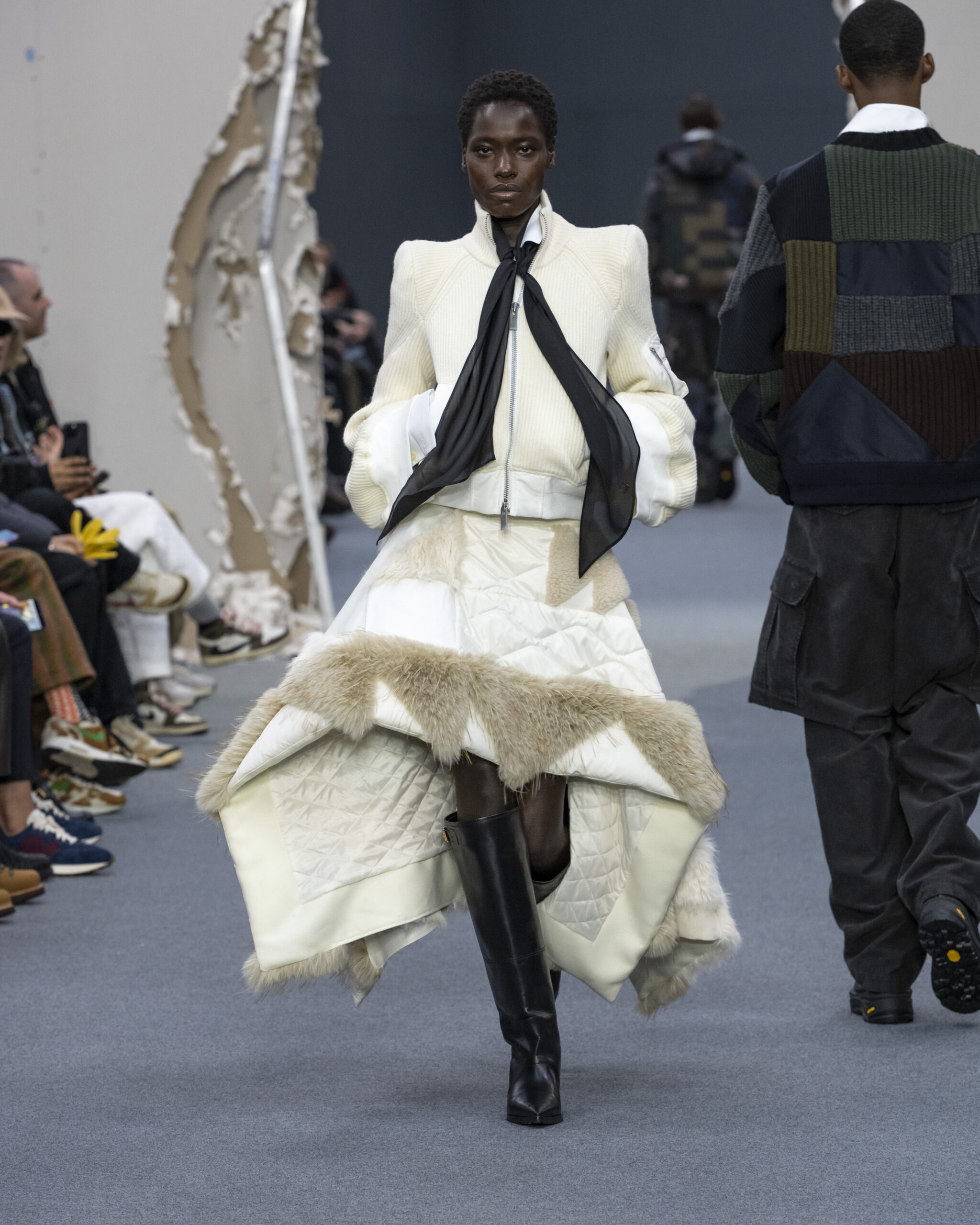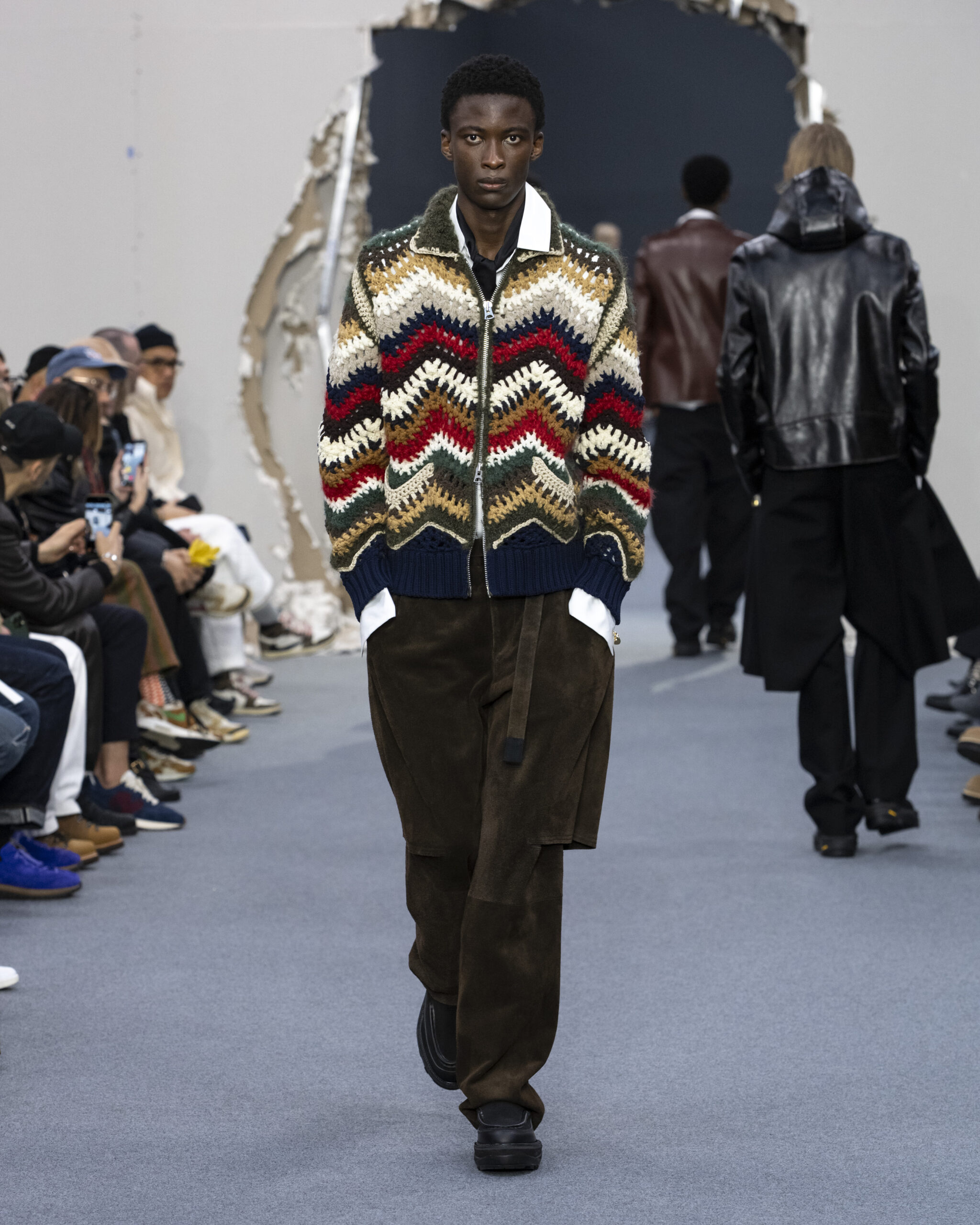 本季,sacai 品牌创始人兼设计师阿部千登势(Chitose Abe)延续其标志性混搭美学,探索「破坏之美」:通过拆解与重构实现新生。传奇拳王穆罕默德·阿里挥拳而出的画面象征性地诠释了这一理念,寓意打破重重束缚,追寻自由之境——设计自由、思想自由与存在自由。