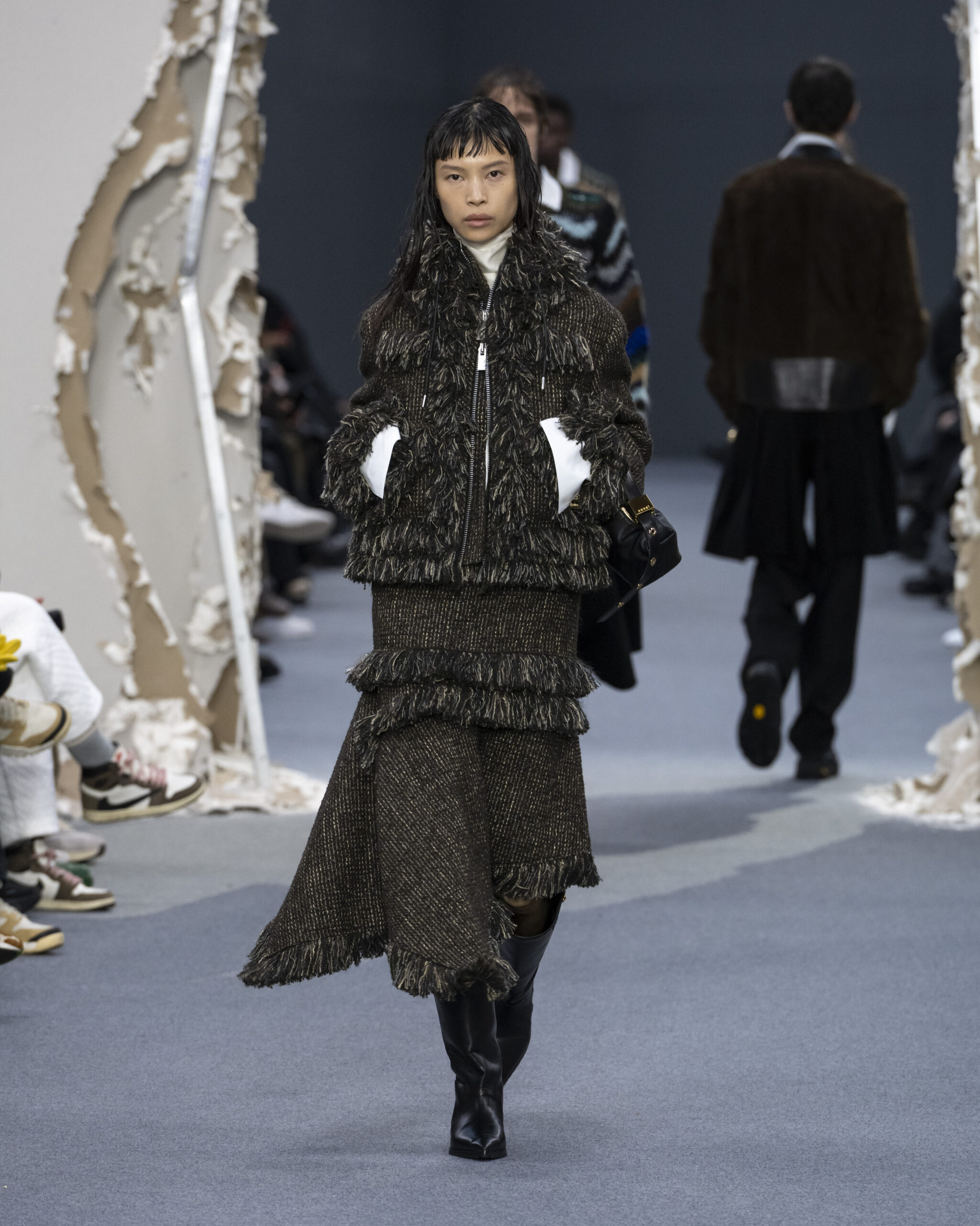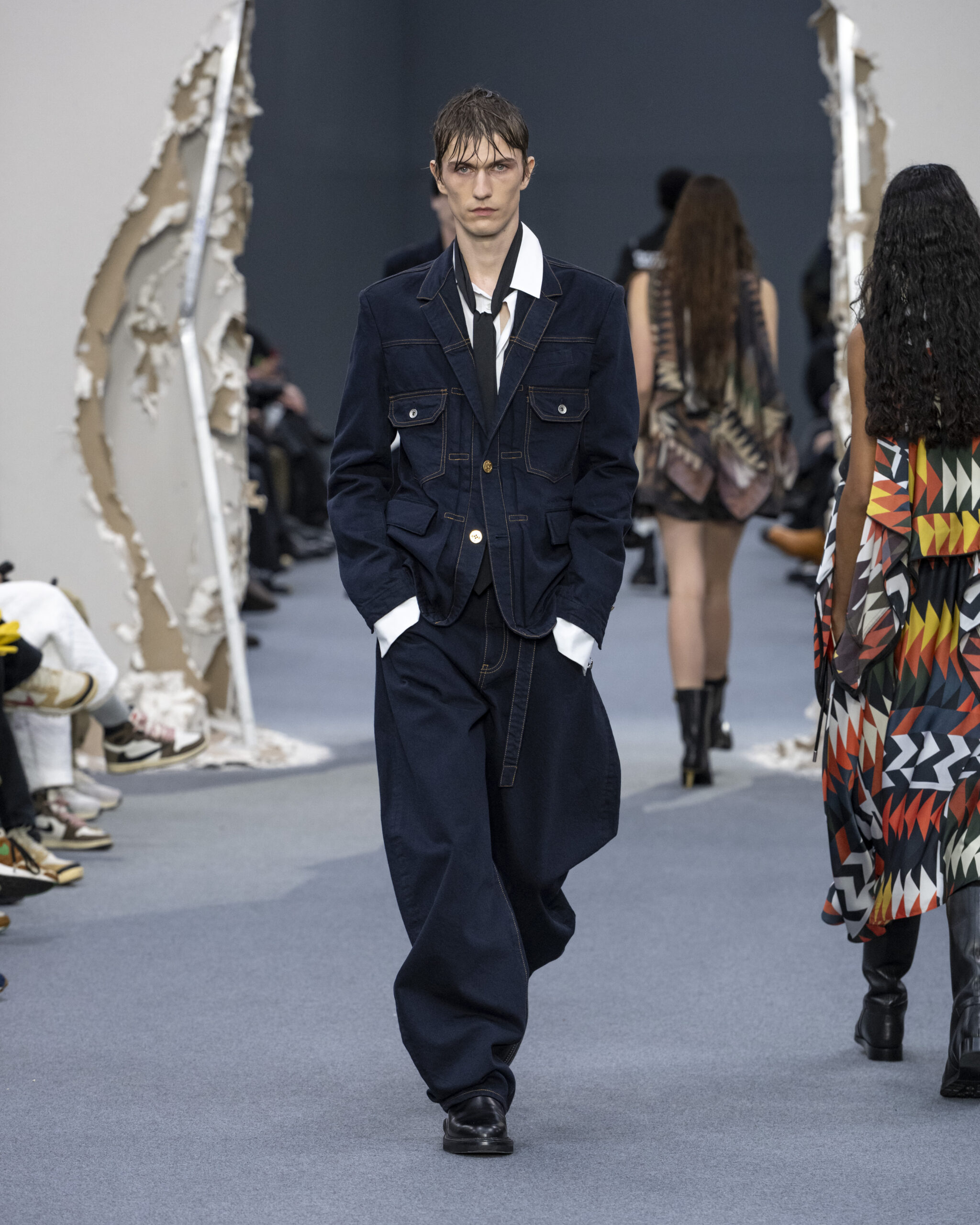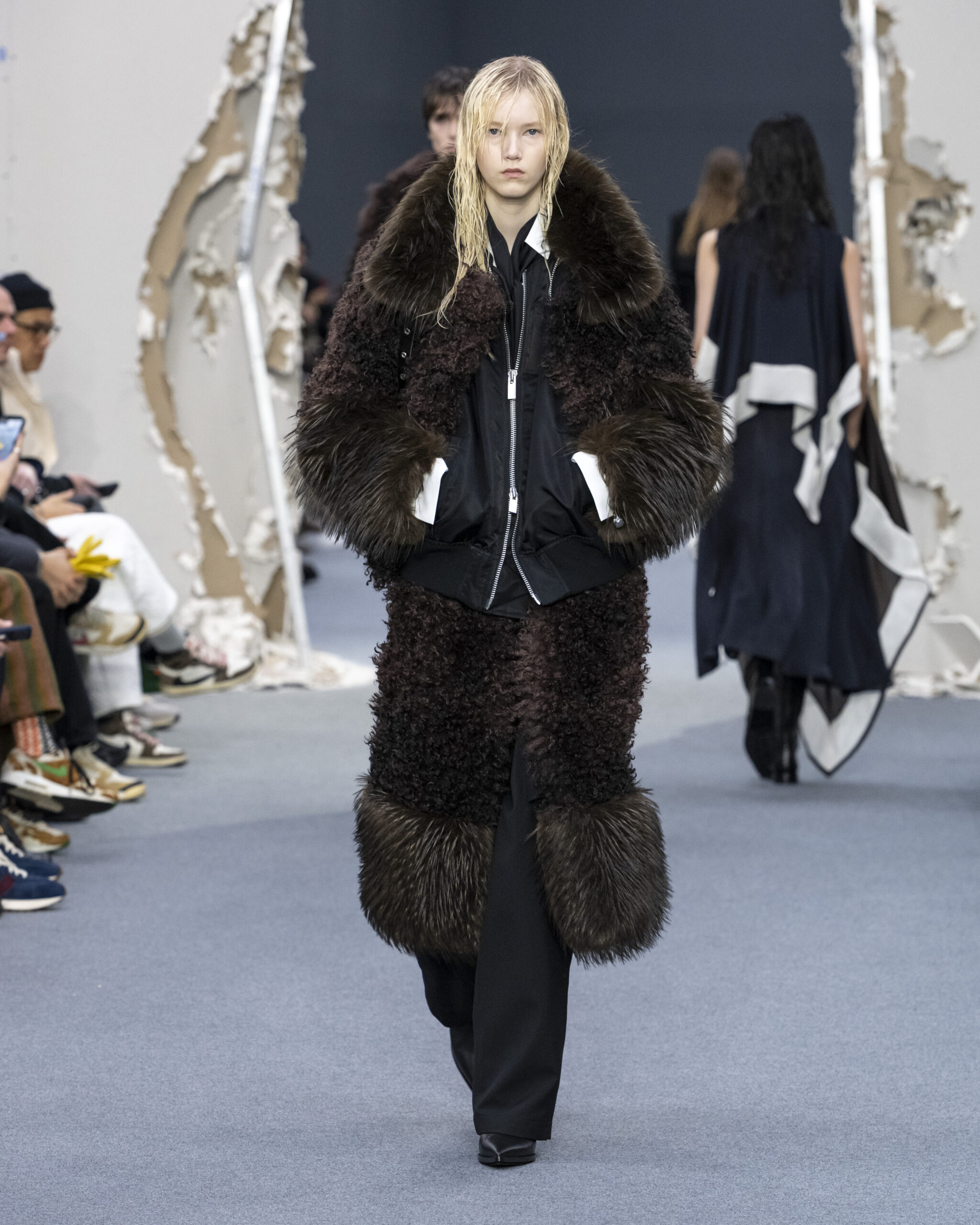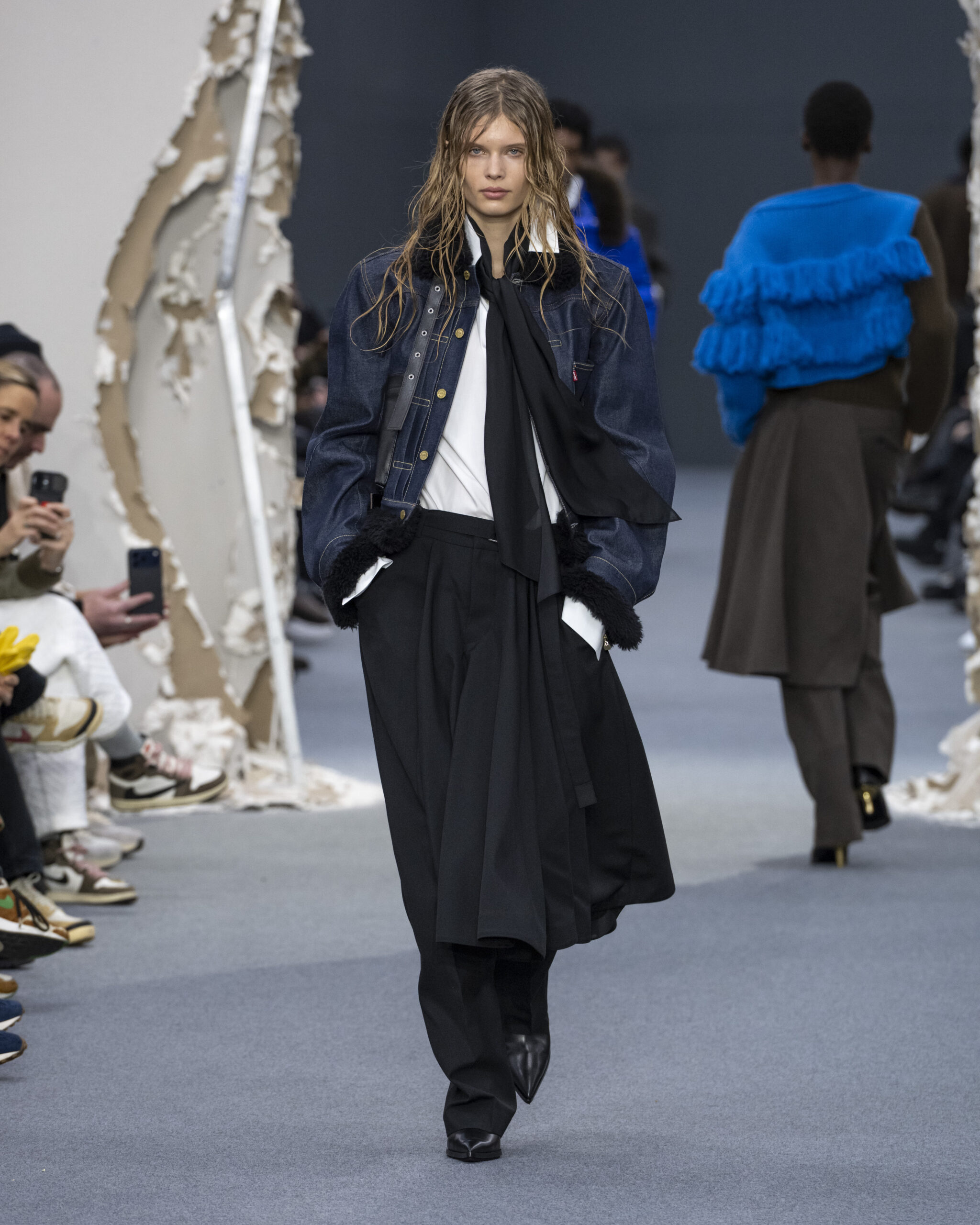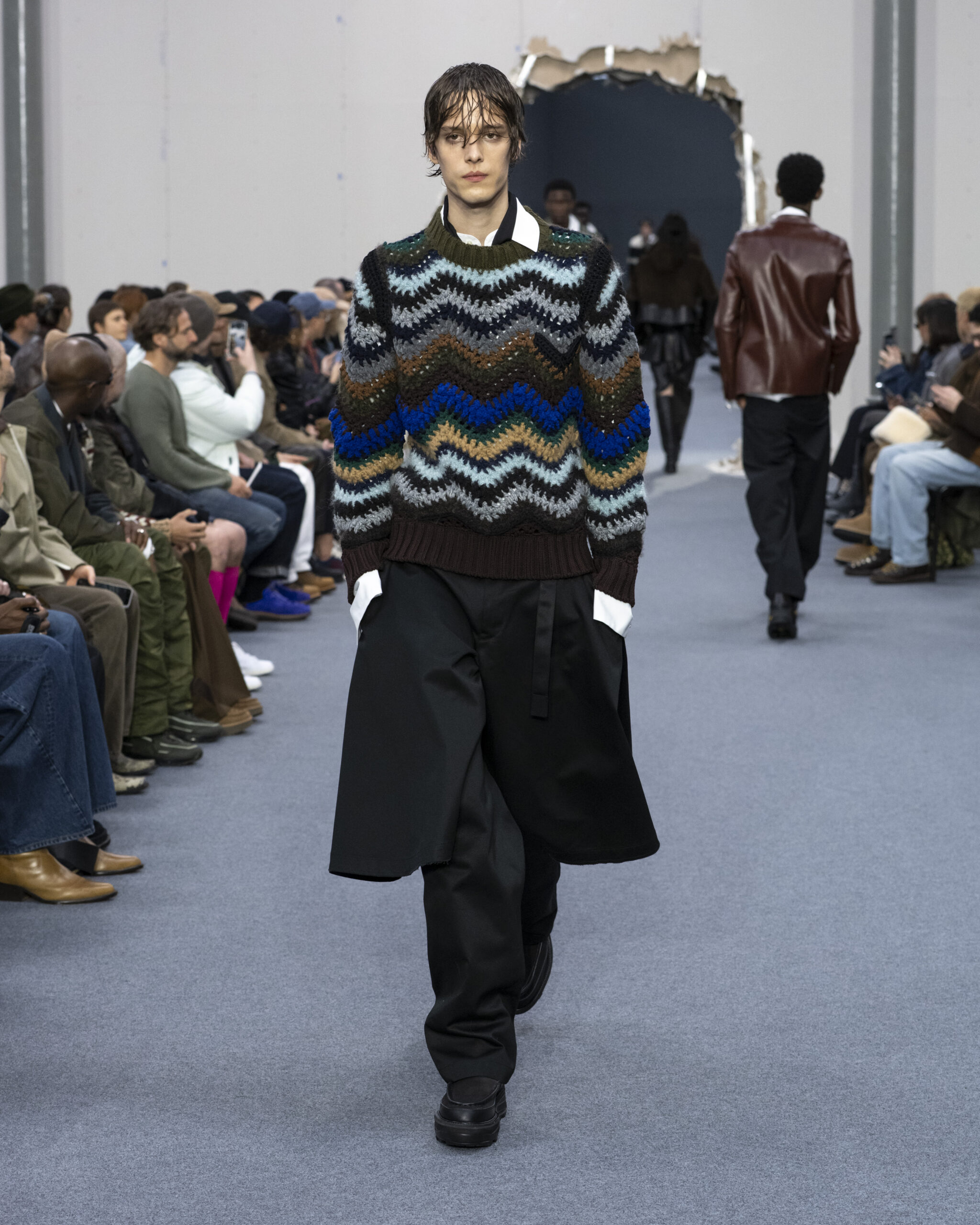 本季,sacai 品牌创始人兼设计师阿部千登势(Chitose Abe)延续其标志性混搭美学,探索「破坏之美」:通过拆解与重构实现新生。传奇拳王穆罕默德·阿里挥拳而出的画面象征性地诠释了这一理念,寓意打破重重束缚,追寻自由之境——设计自由、思想自由与存在自由。