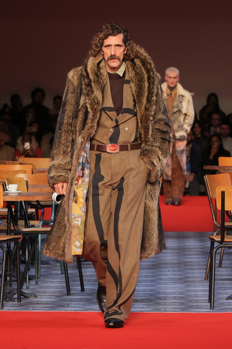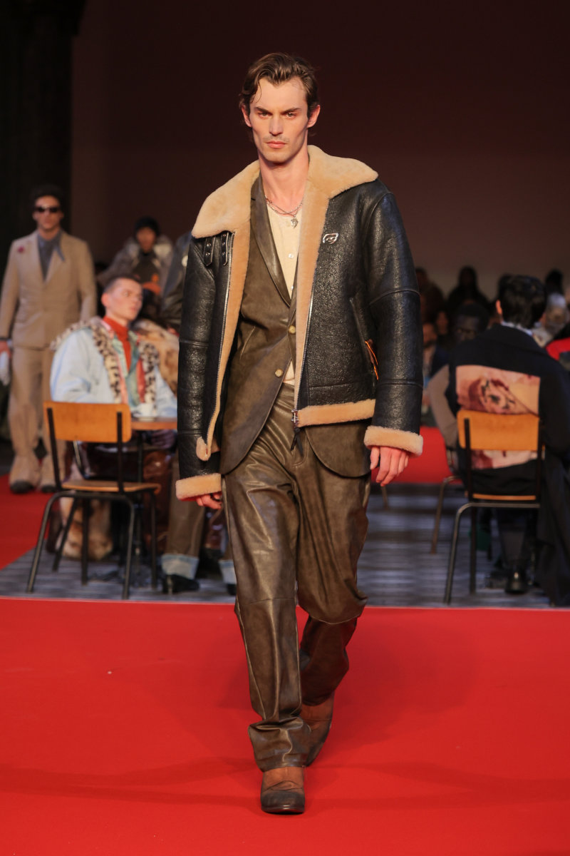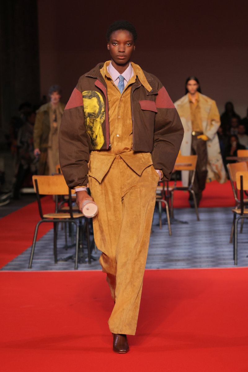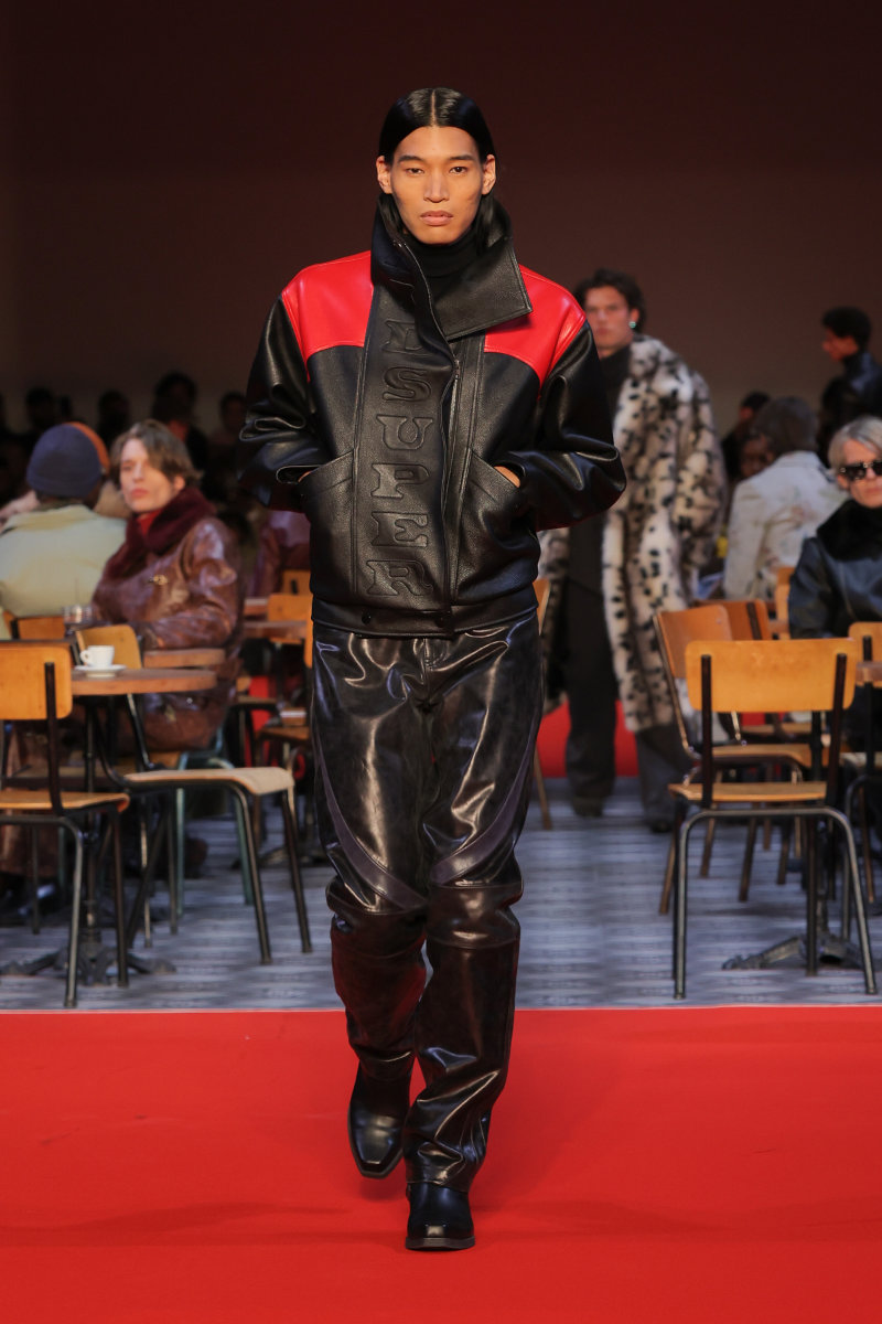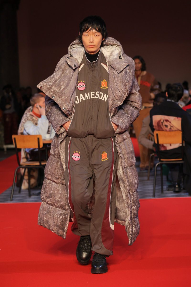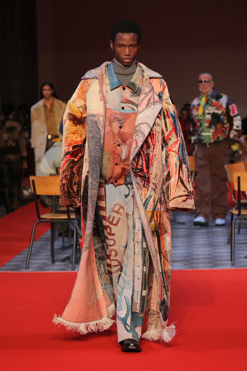 KidSuper 的设计语言向来梦幻,而本季则呈现出更为深沉、内省的基调,并携手顶级造型师 Imruh Asha 共同打造秀场造型,让反思、克制和成熟贯穿于服装之中。此外,KidSuper 的跨界合作理念再次得以展现:与 Jameson 的限量合作系列汲取了工艺、传承和共同文化遗产的理念,巧妙地呼应了 Colm Dillane 的爱尔兰血统;而将与 Havaianas 推出的合作则致敬了 Colm Dillane 在巴西的经历及其文化交流。为了强化这种延续感,Jeff Hamilton 还将身着与 KidSuper 合作设计的专属夹克亮相即将到来的超级碗。