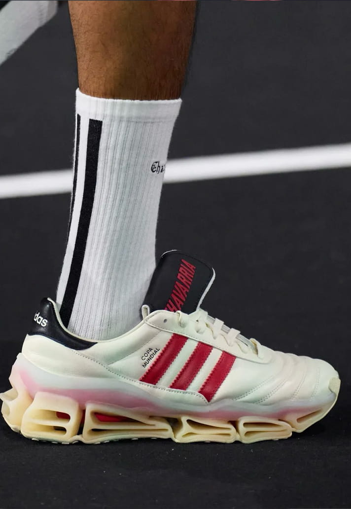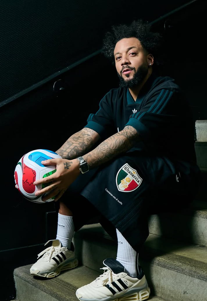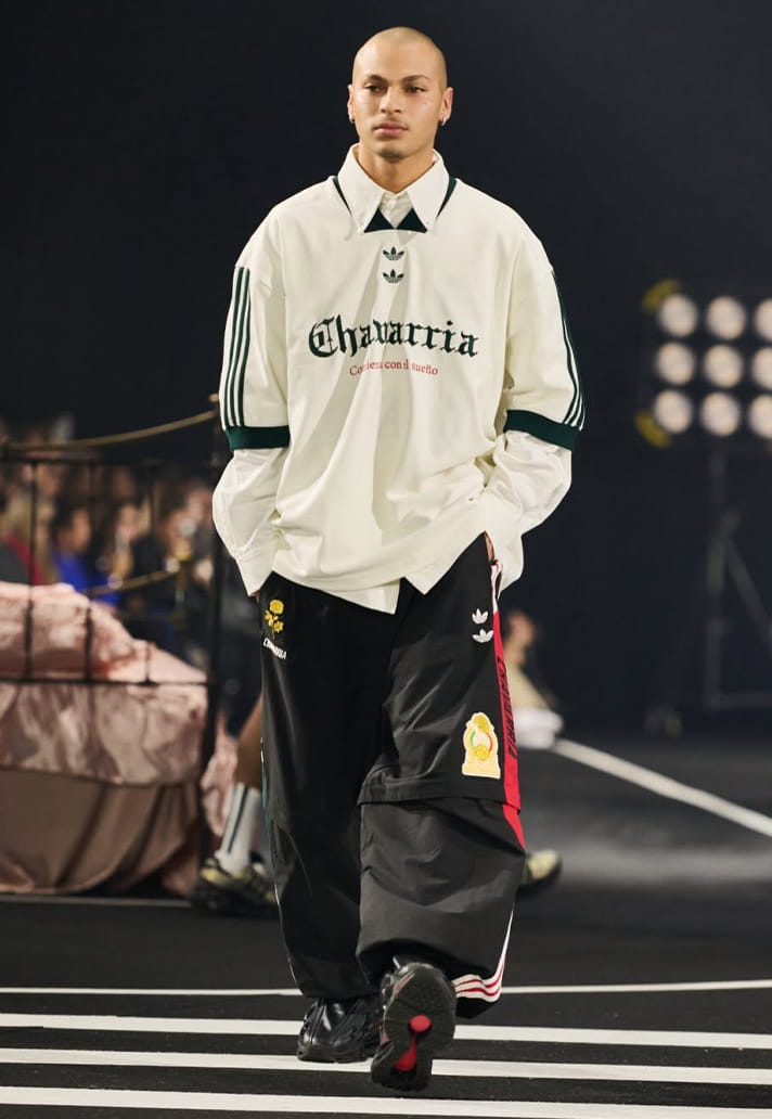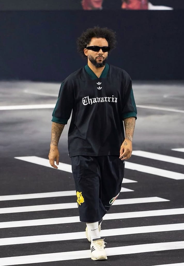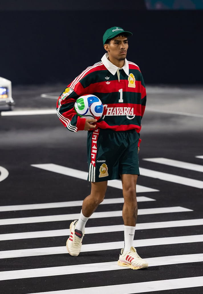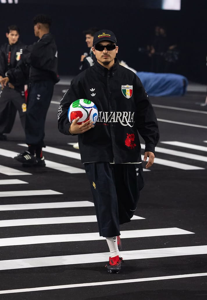 Willy Chavarria 在巴黎时装周与 adidas 再度携手合作 2026 秋冬系列,从醒目的红绿配色到毫不掩饰的硬朗廓形,整个系列都清晰地展现了他对墨西哥血统的致敬,这是一场轰动的文化、身份认同和足球传统的碰撞交融。前皇家马德里传奇球星马塞洛走上 T 台,尽显巴西式的潇洒风范;而罗密欧·贝克汉姆也亮相秀场,继续着他在足球时尚与文化交融领域的探索。这样的选角恰如其分地诠释了此次合作的意义:与足球运动建立真正的联系。