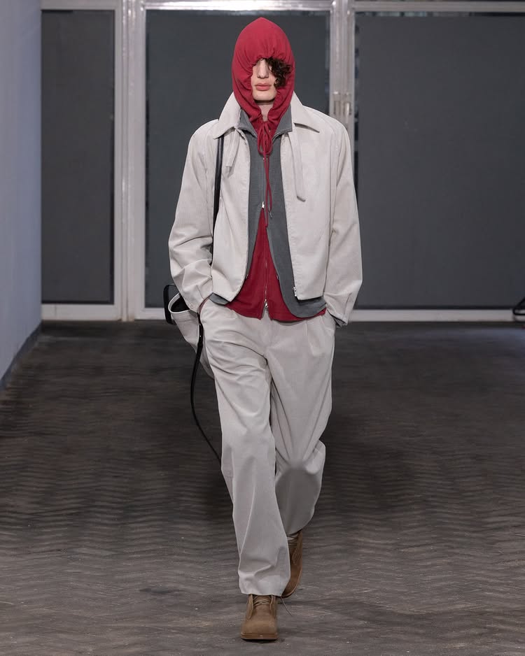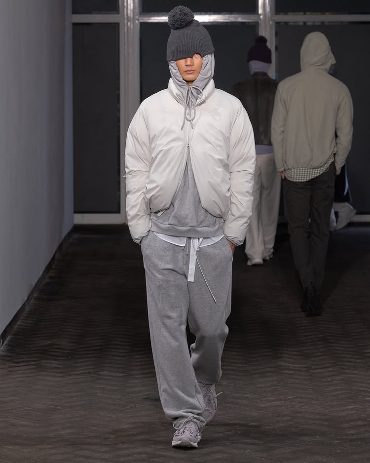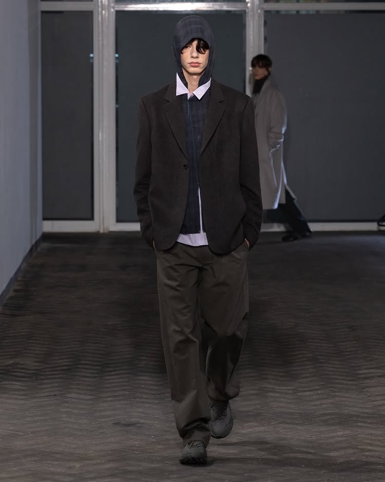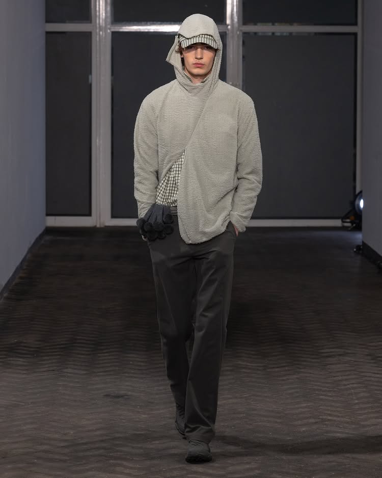POST ARCHIVE FACTION 2026 秋冬系列「Drifter」以流动性和无根生活为主题,探讨了不断变换的状态与创意的解放。设计师 Dongjoon Lim 通过这场秀,表达了「漂泊」并非方向缺失,而是一种充满自由的存在方式,展现了他对过去和未来之间的张力的独特理解。