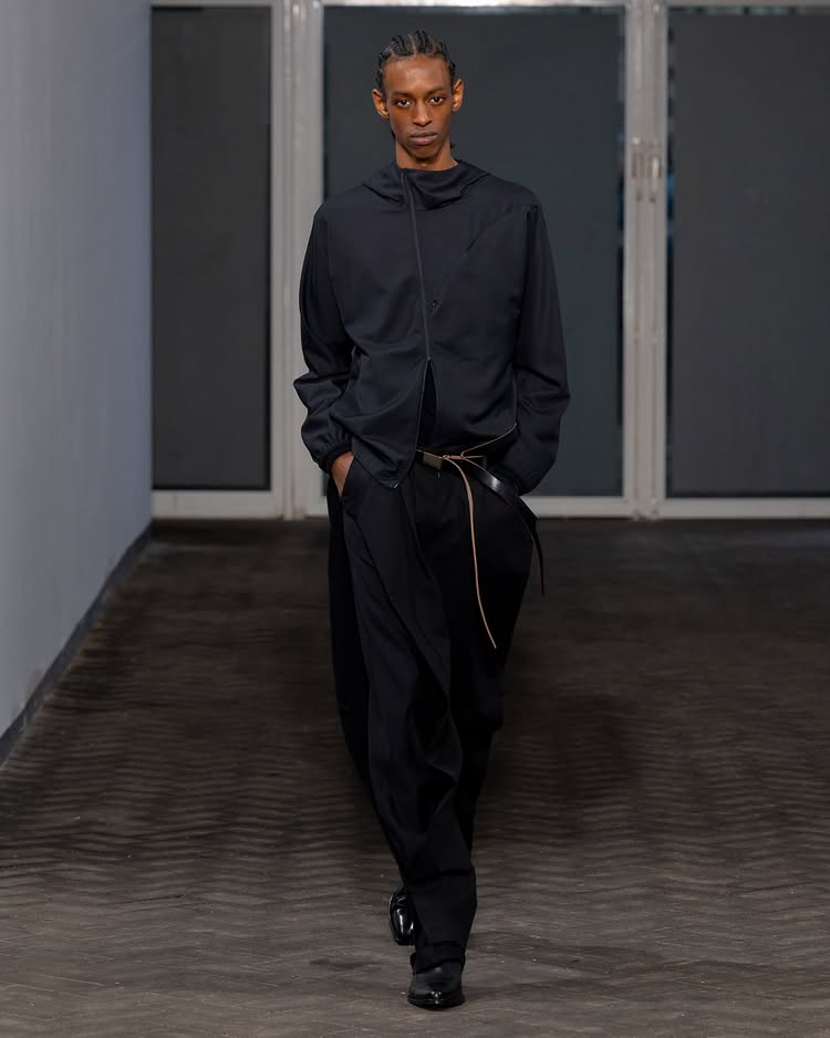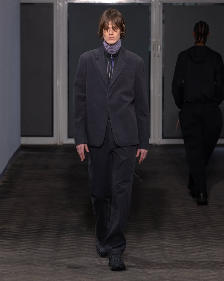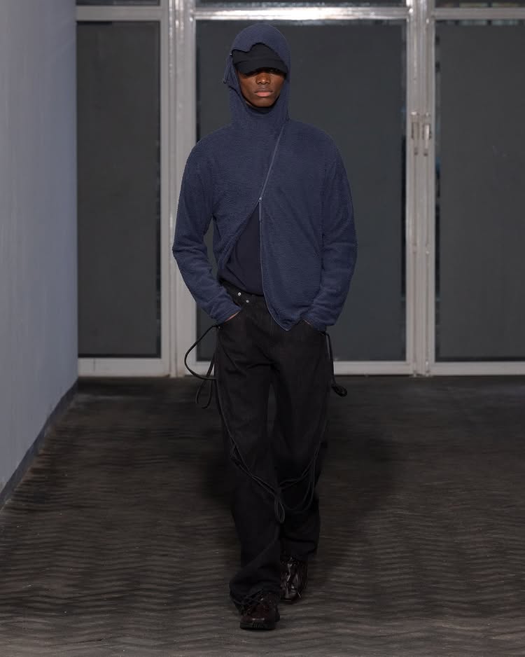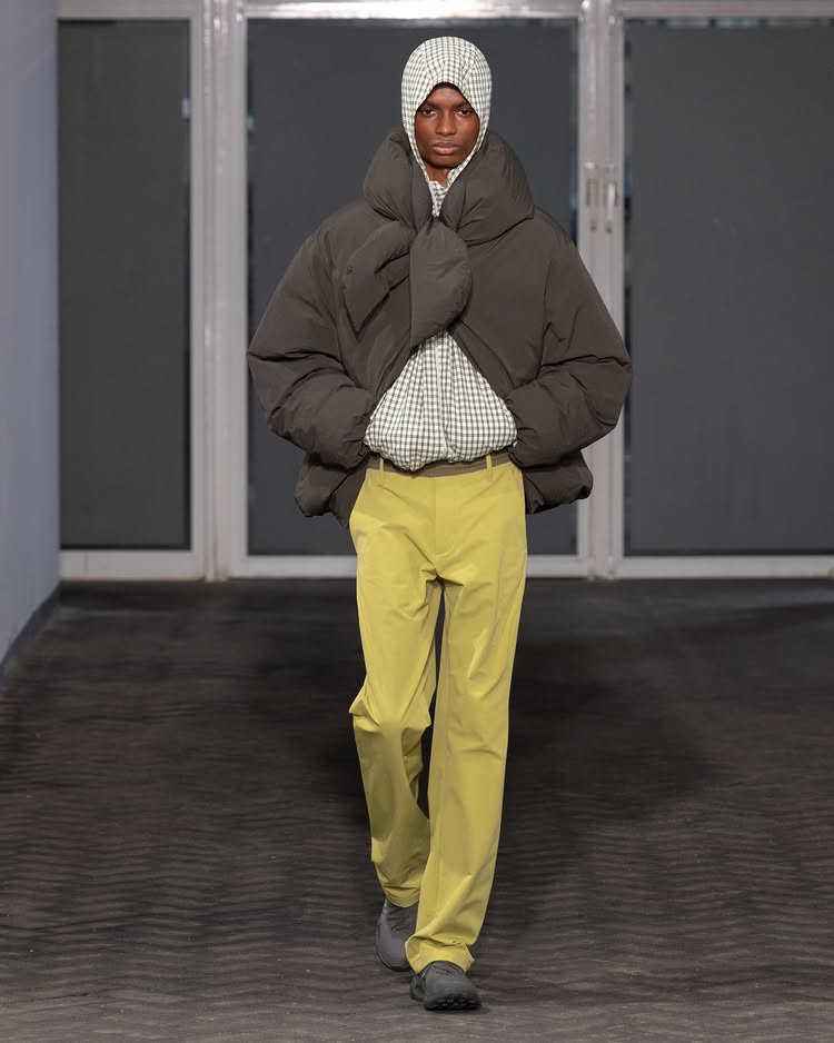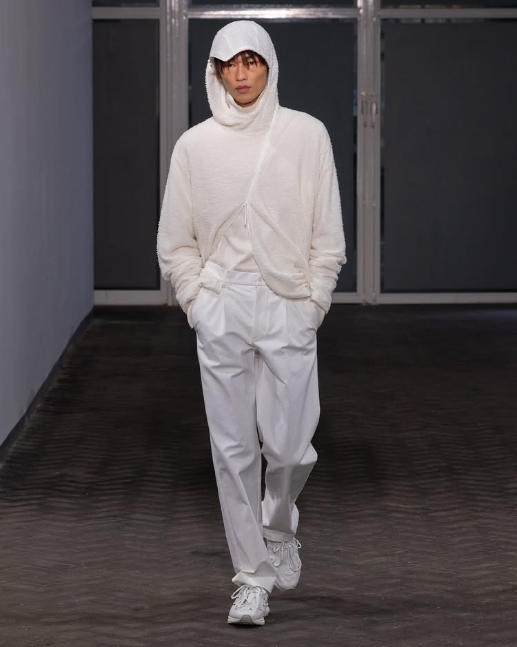 POST ARCHIVE FACTION 2026 秋冬系列「Drifter」以流动性和无根生活为主题,探讨了不断变换的状态与创意的解放。设计师 Dongjoon Lim 通过这场秀,表达了「漂泊」并非方向缺失,而是一种充满自由的存在方式,展现了他对过去和未来之间的张力的独特理解。