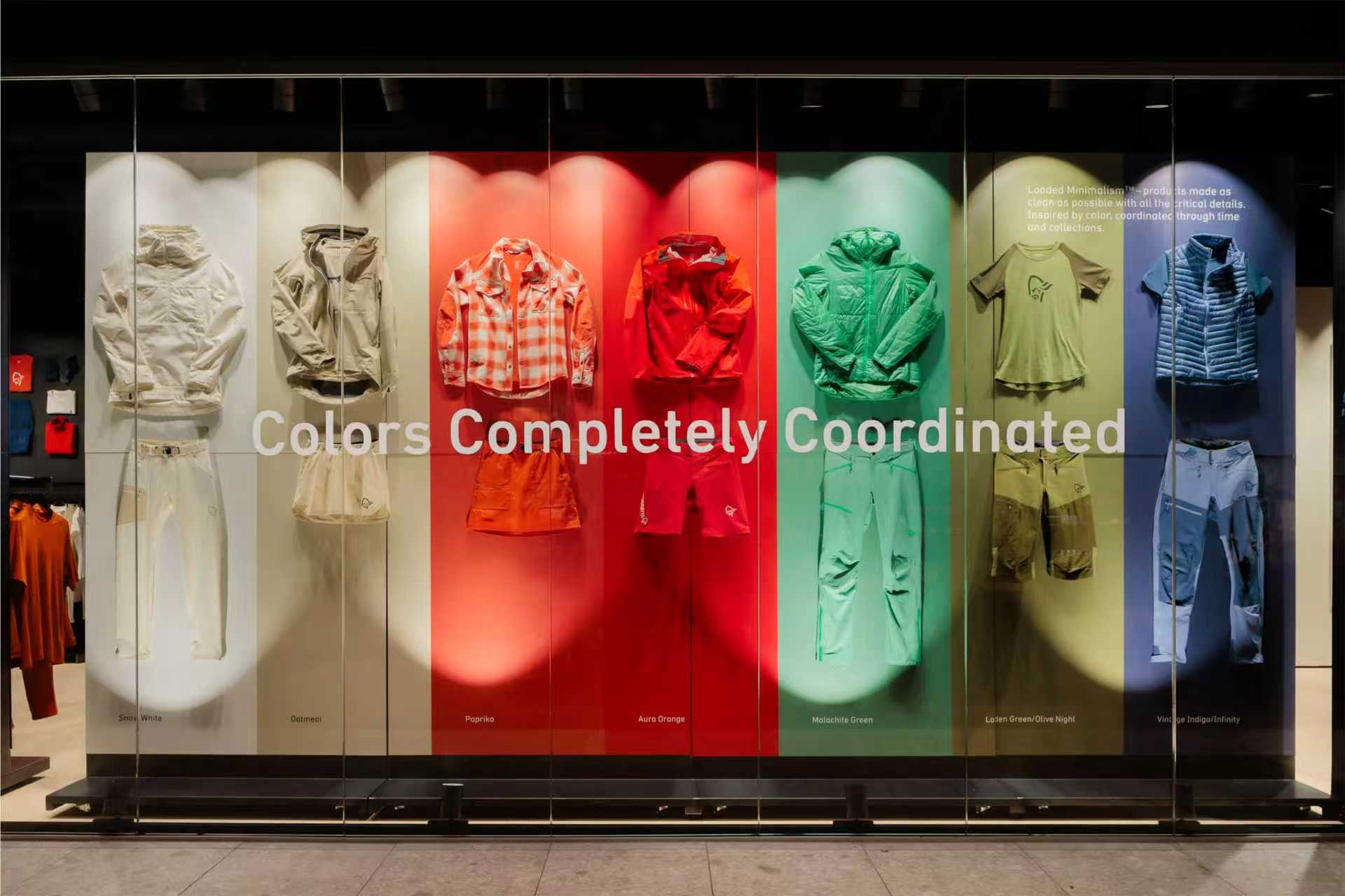 Norrøna 北京 SKP 精品店的空间设计延续品牌的户外美学理念,以极简空间凸显产品本身的质感与功能细节。店铺墙面以挪威壮阔的自然图景为点缀,将宁静磅礴的雪山意象融入空间语境。店内汇集了 Norrøna 的多个装备系列,涵盖滑雪、登山、户外/徒步及越野跑等各类户外场景。消费者可亲身感知产品的卓越质感与精湛工艺,结合场景需求挑选最契合的专业装备。
