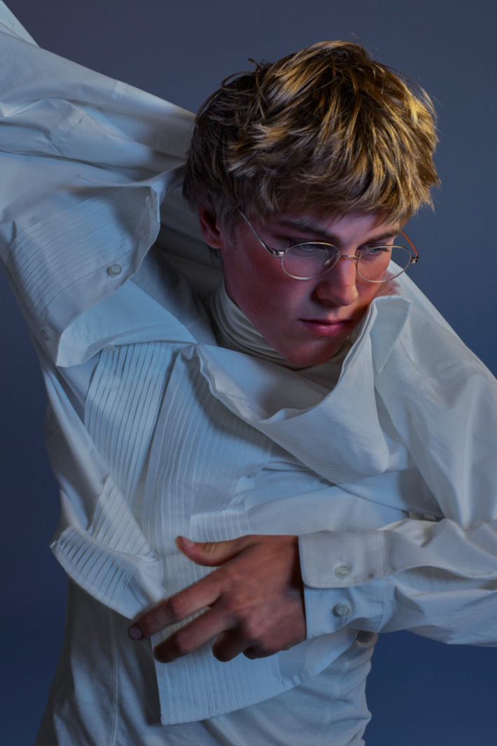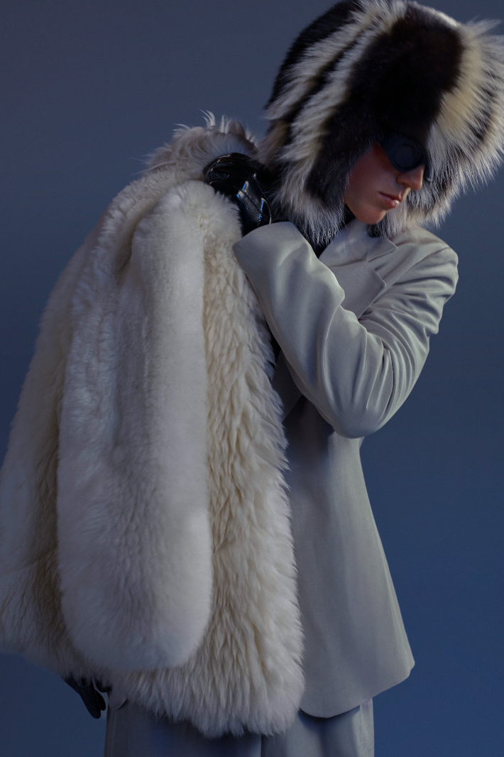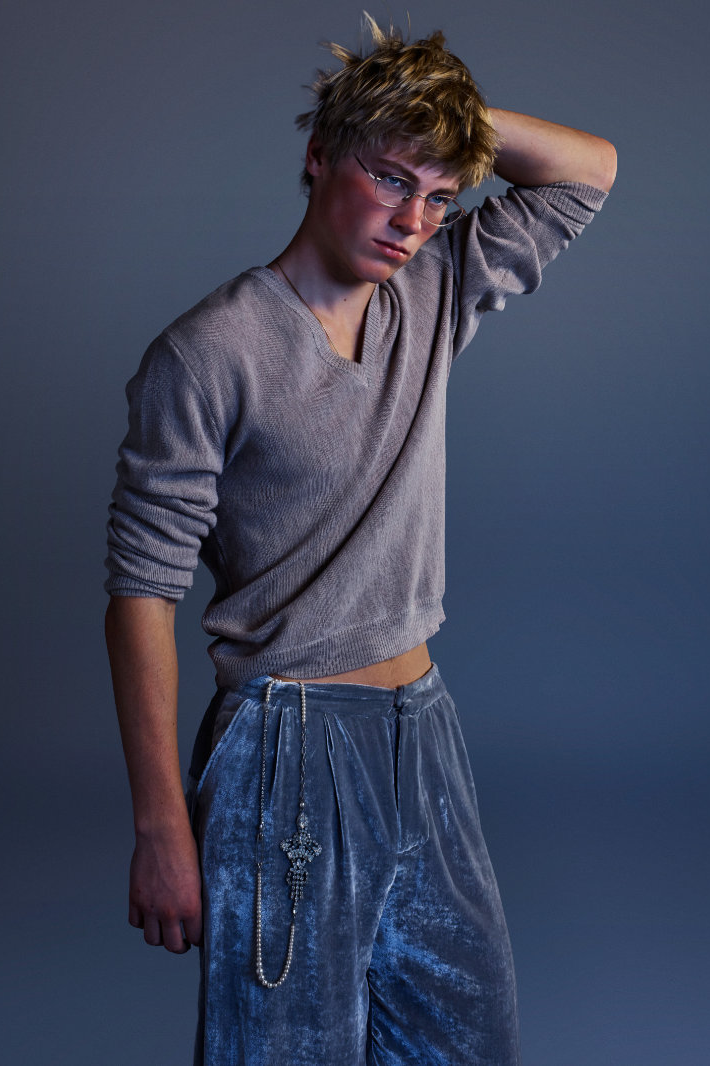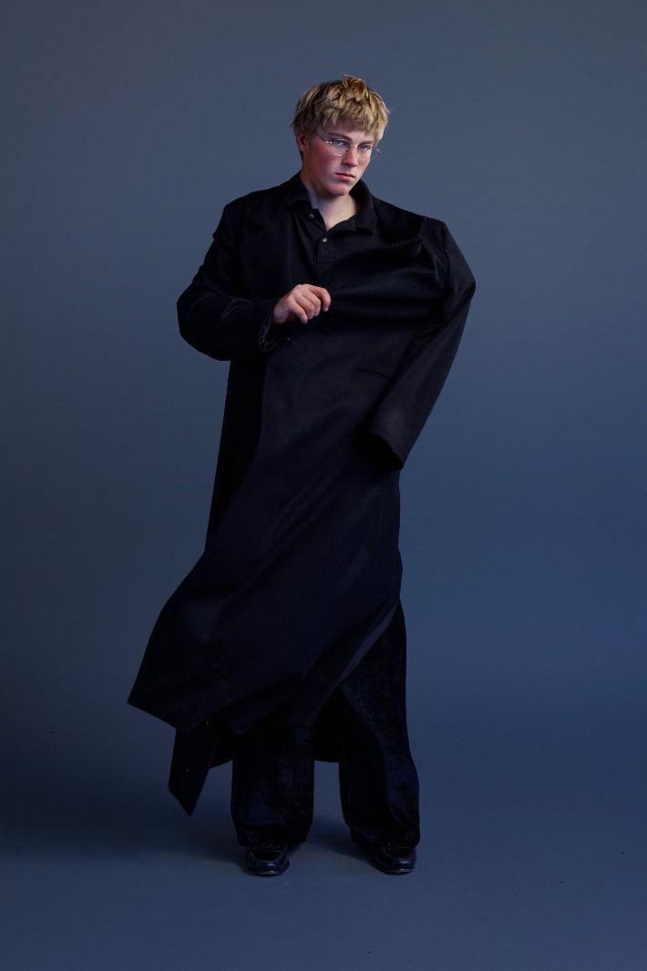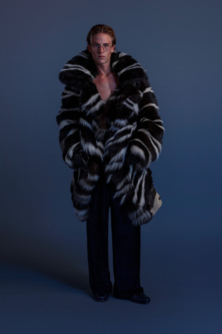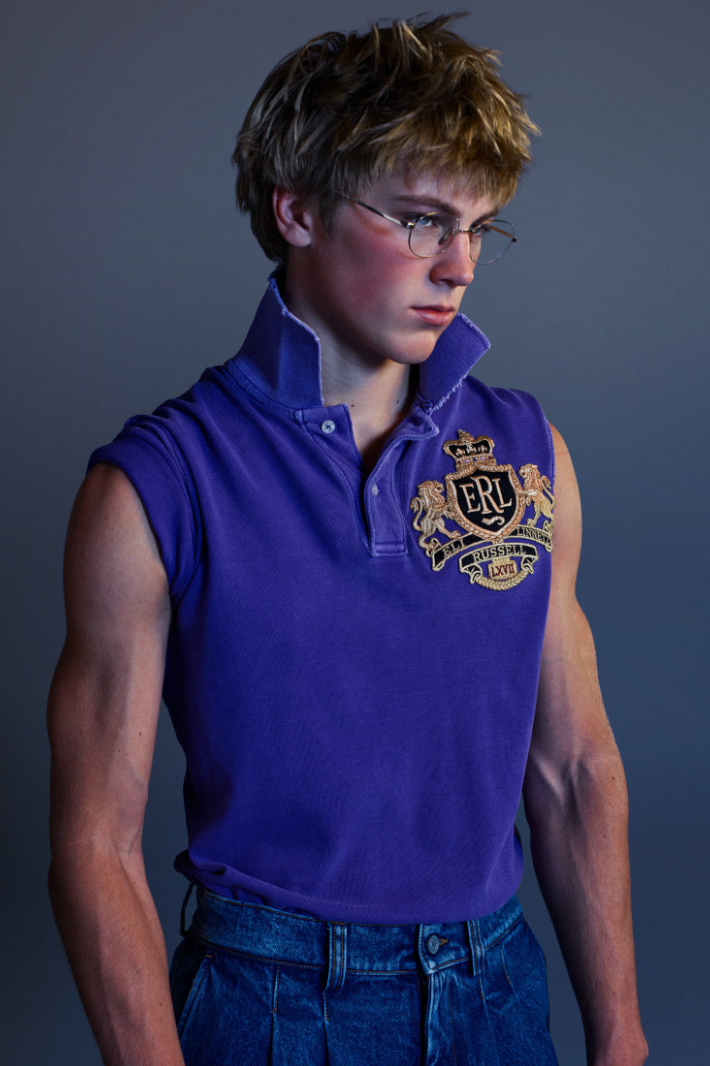 与此同时,Eli Russell Linnetz 依然钟情于矛盾。尼龙面料渗透到剪裁考究的服装中,工装夹克与冲浪文化交相辉映,权威的象征与机车夹克和红色皮质棒球衫碰撞出火花。晚装也同样被颠覆:飞行服取代了燕尾服,天鹅绒长裤与运动感十足的服饰并肩而立。整个系列探讨了角色互换、服饰借用和等级制度的变迁。Eli Russell Linnetz 将对制度的反思转化为视觉语言,并隐约以一种对抗性的方式呈现。
