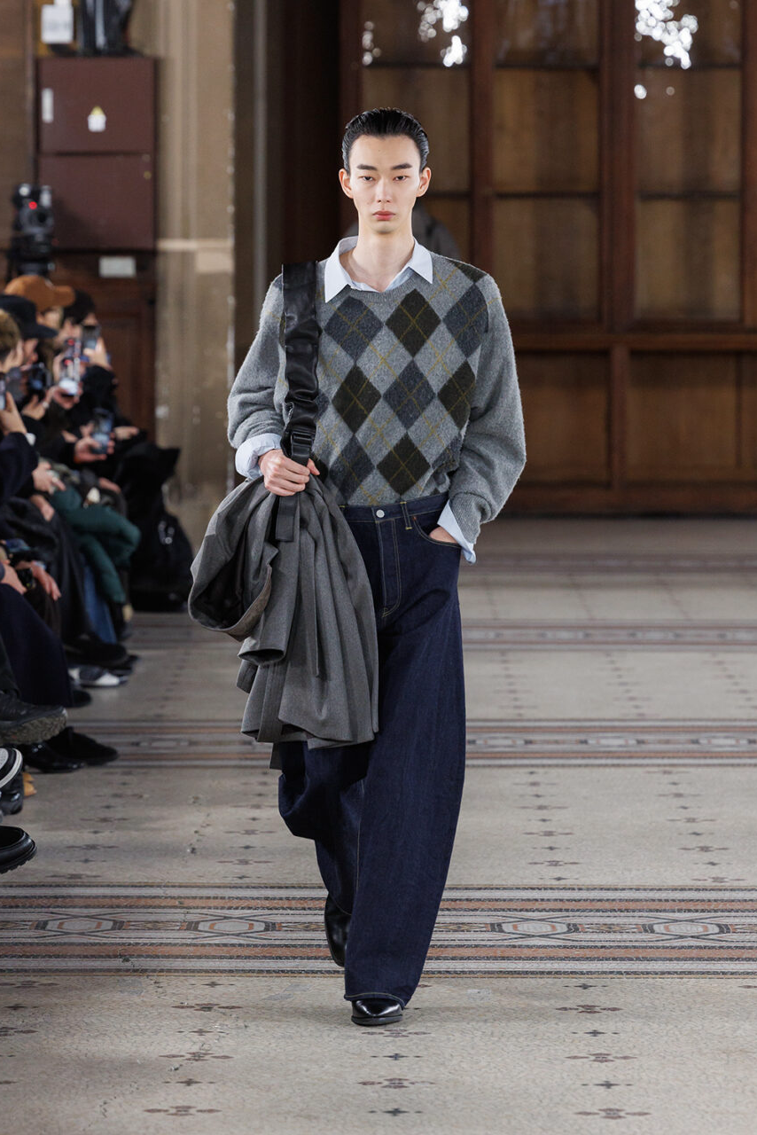 在 ssstein 巴黎时装周首秀之后,这一季其创始人兼创意总监浅川喜一郎带来了一系列非常实穿的服饰。2026 秋冬系列的灵感源自温馨的家庭聚餐、公园漫步、牵手的老夫妇以及季节更迭中树叶由绿转锈等细微瞬间。所有这些都融入了舒缓的色调之中——巧克力色、栗色、灰褐色和灰褐色为主,点缀以南瓜色和姜黄色,以呼应秋叶的色彩。粗花呢和日本产灯芯绒面料,则旨在唤起人们对复古服饰穿着痕迹的记忆,成为了整季的基调。