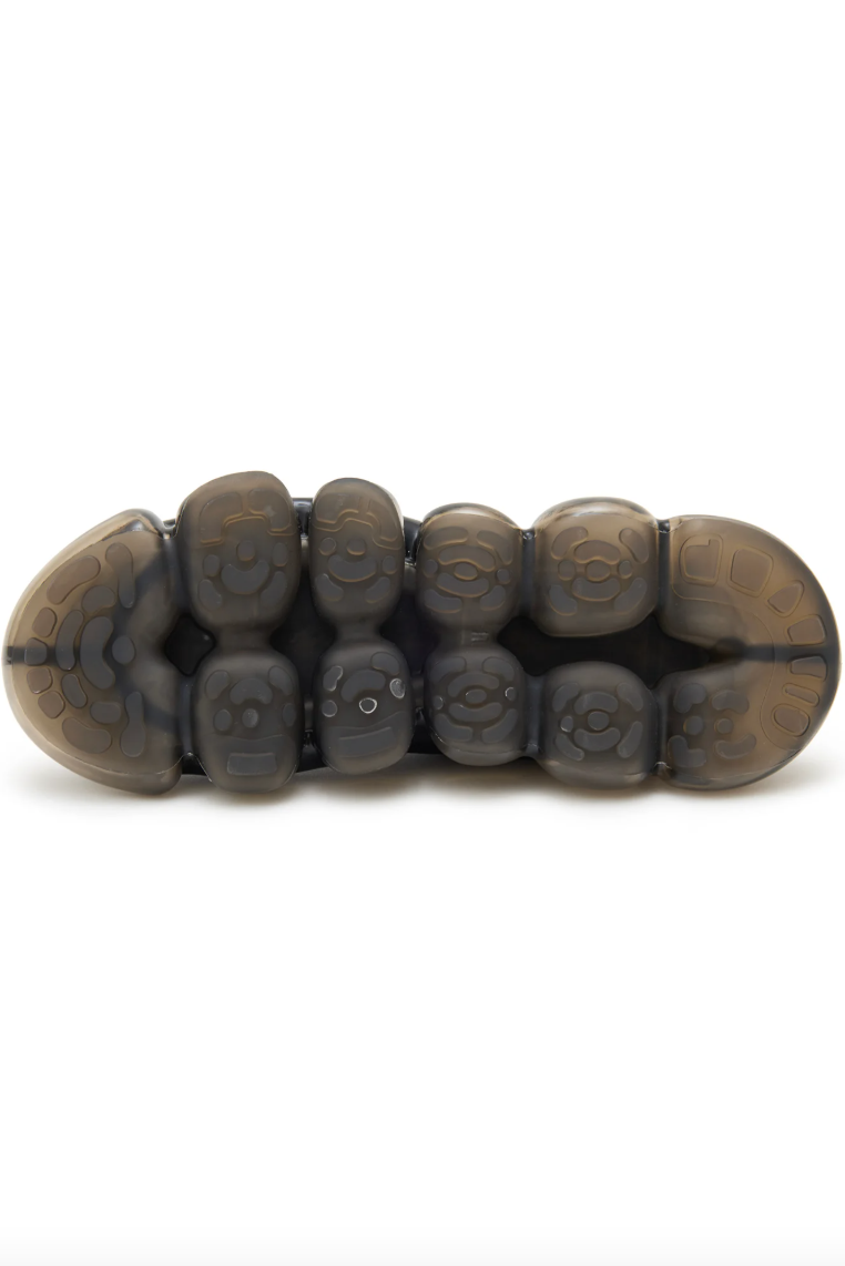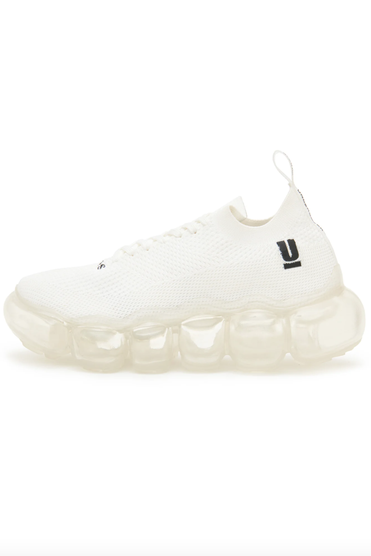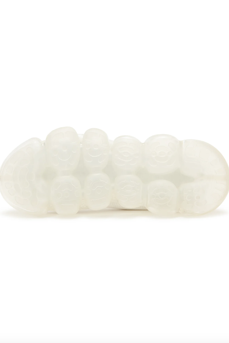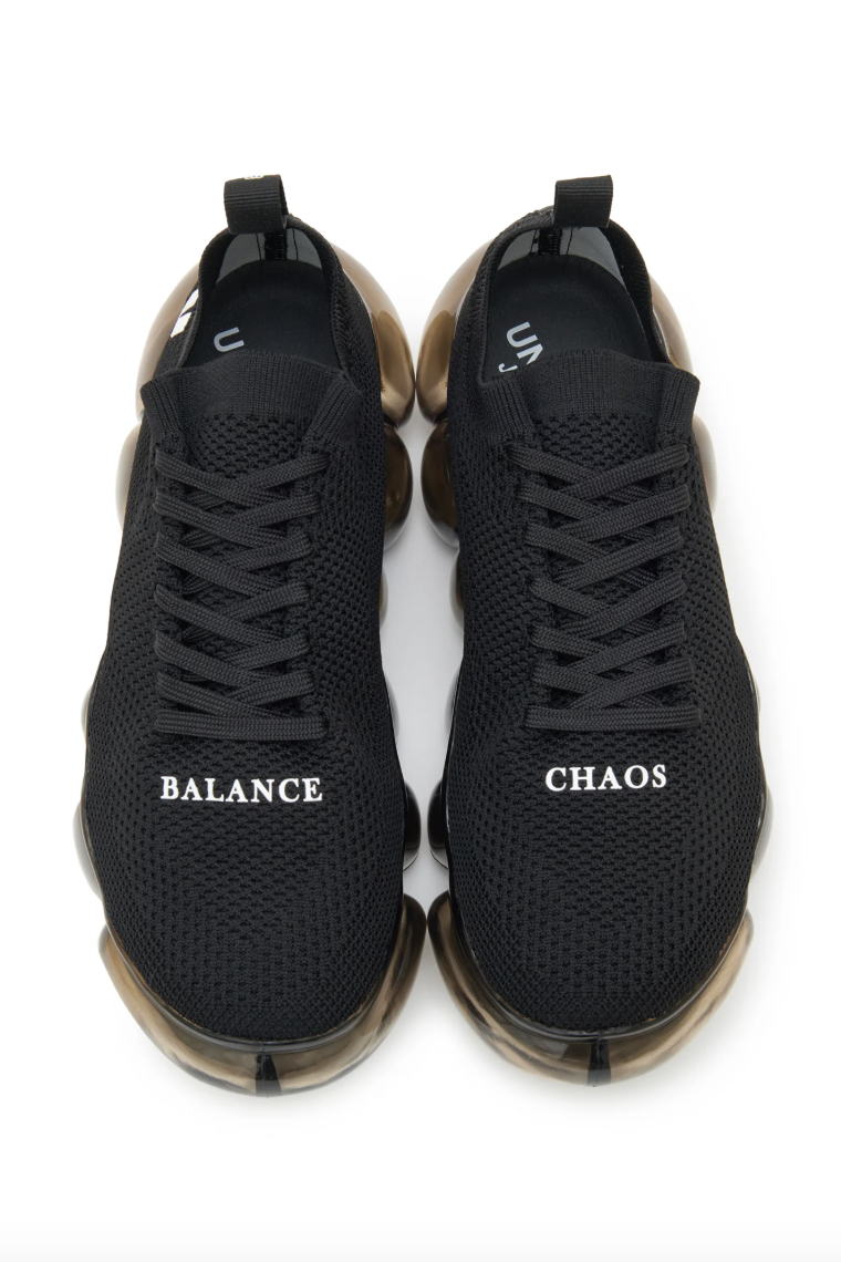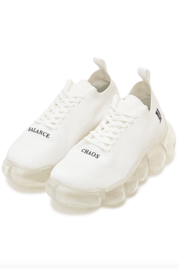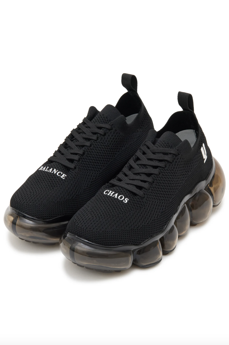 UNDERCOVER 最新携手 grounds 推出了一款联名鞋履。这款鞋首次亮相于 UNDERCOVER 2026 早春女装系列,是两大品牌的第二次合作。全新设计采用了 grounds 标志性的「JEWELRY」厚底,由透明球体构成的夸张外底十分抢眼。鞋面选择了舒适的针织面料,鞋面左右两侧分别印有UNDERCOVER 的经典元素——「CHAOS」和「BALANCE」字样,鞋跟处则饰有双方品牌标识。该款联名鞋将于 1 月 31 日(星期六)在所有 UNDERCOVER 门店、grounds 旗舰店以及 grounds 官网正式发售,共有黑白两色可选,感兴趣的朋友不要错过了。