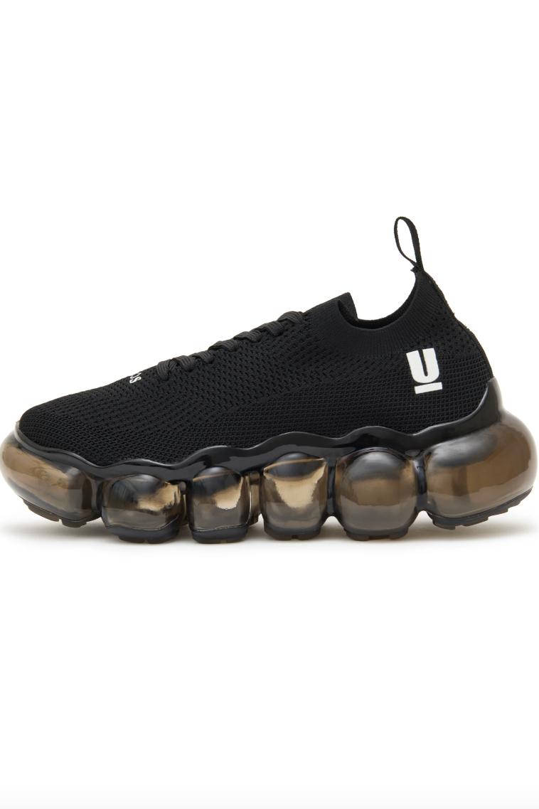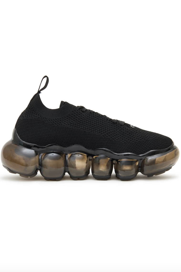 针织面料搭配经典球状厚底。
