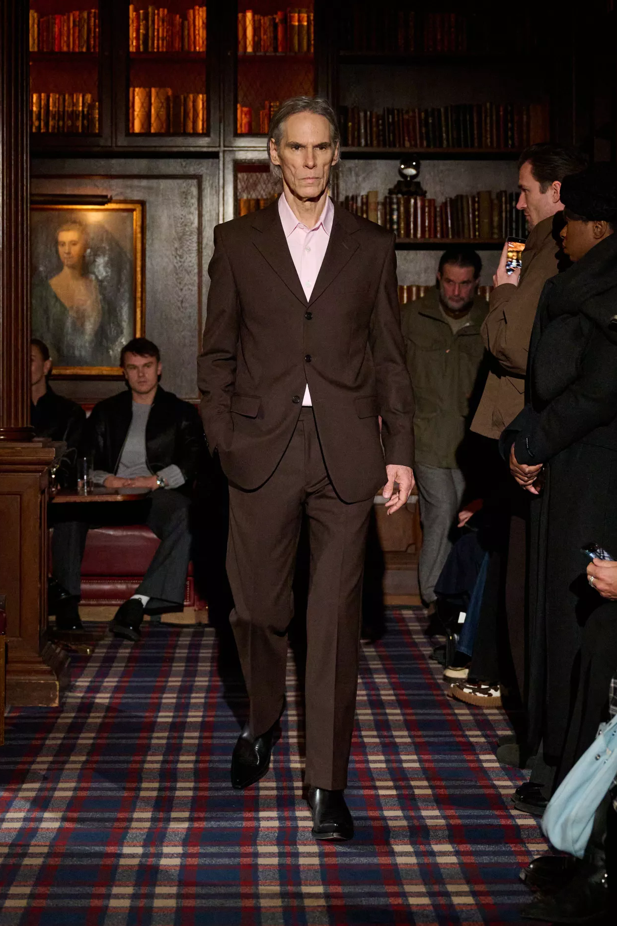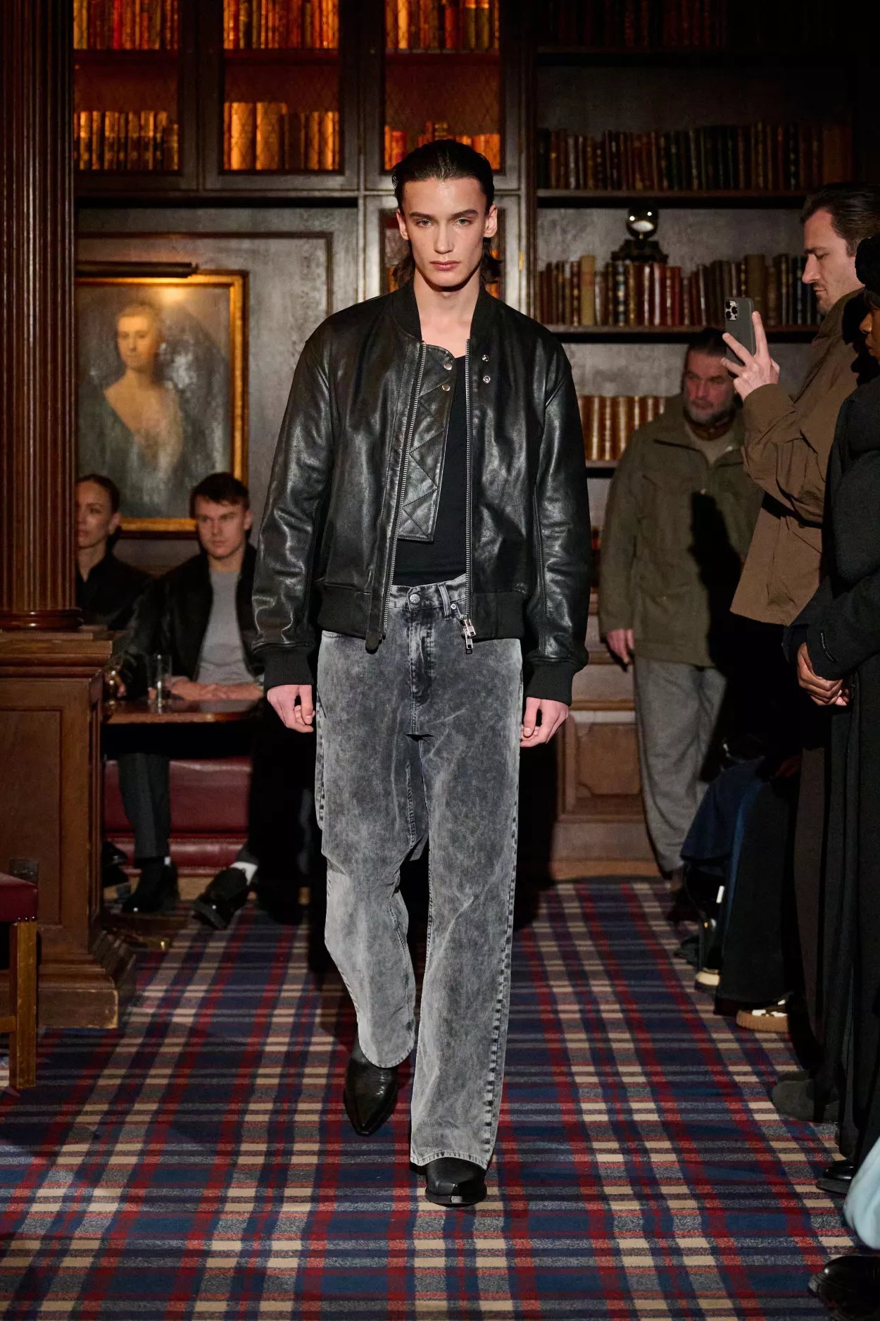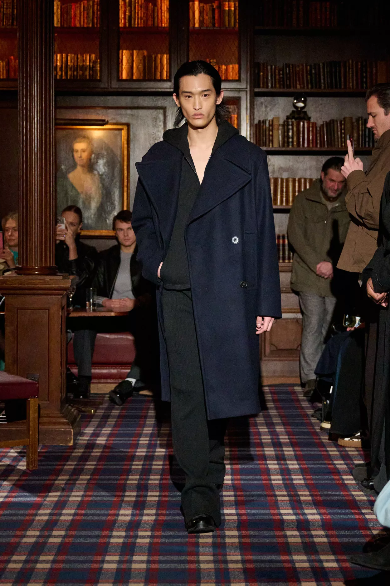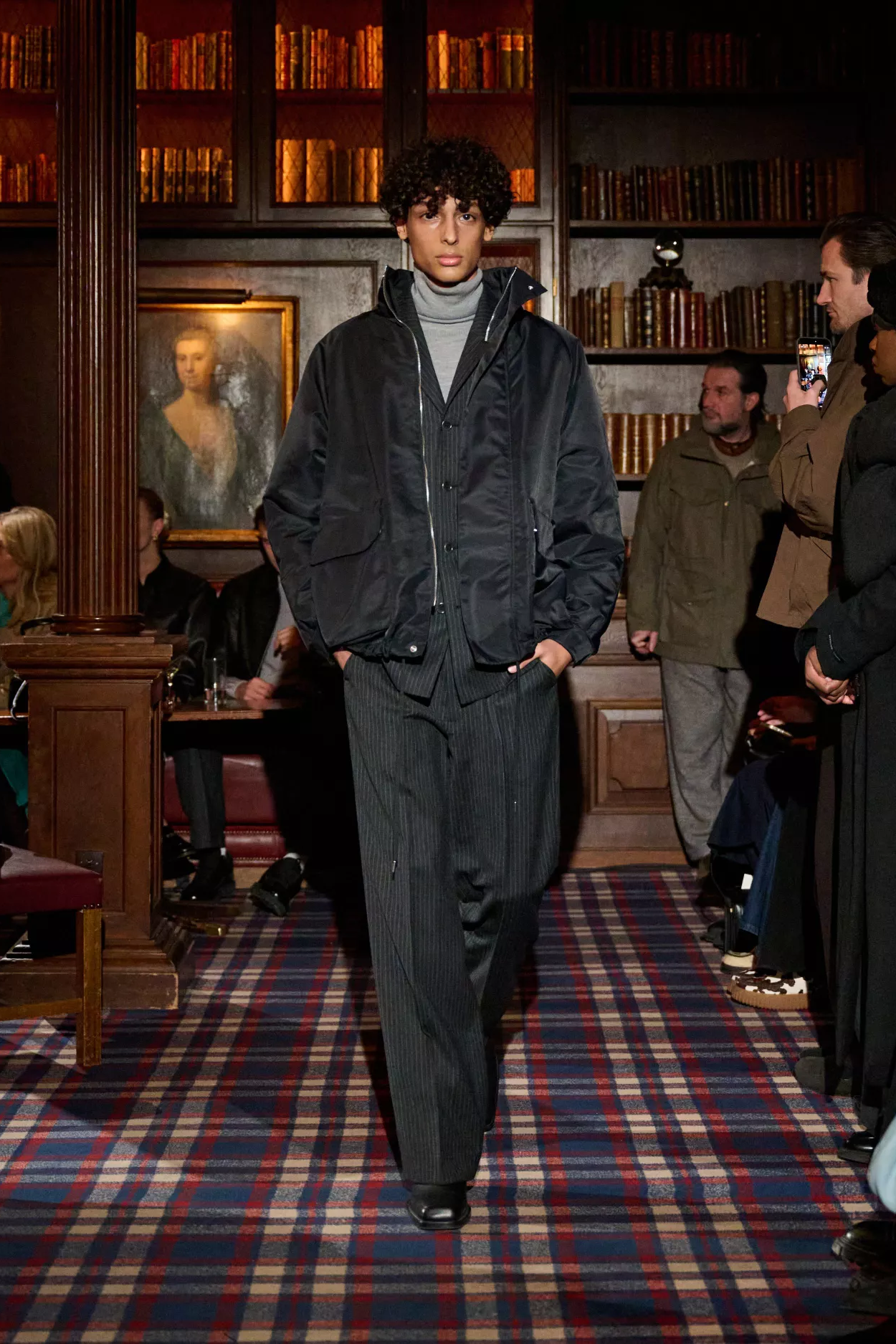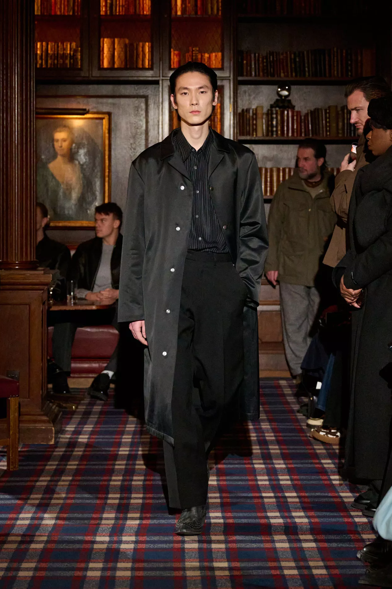 Sunflower 对皮夹克的设计驾轻就熟,本季新品也毫不逊色。简约的飞行员夹克几乎可以完美融入任何风格,质感柔滑的中长款风衣引人注目,棕色灯芯绒西装与以木质元素为主的秀场空间相得益彰,完美契合了 90 年代悠闲绅士的风格。