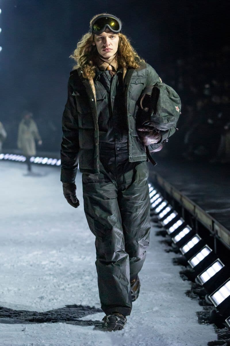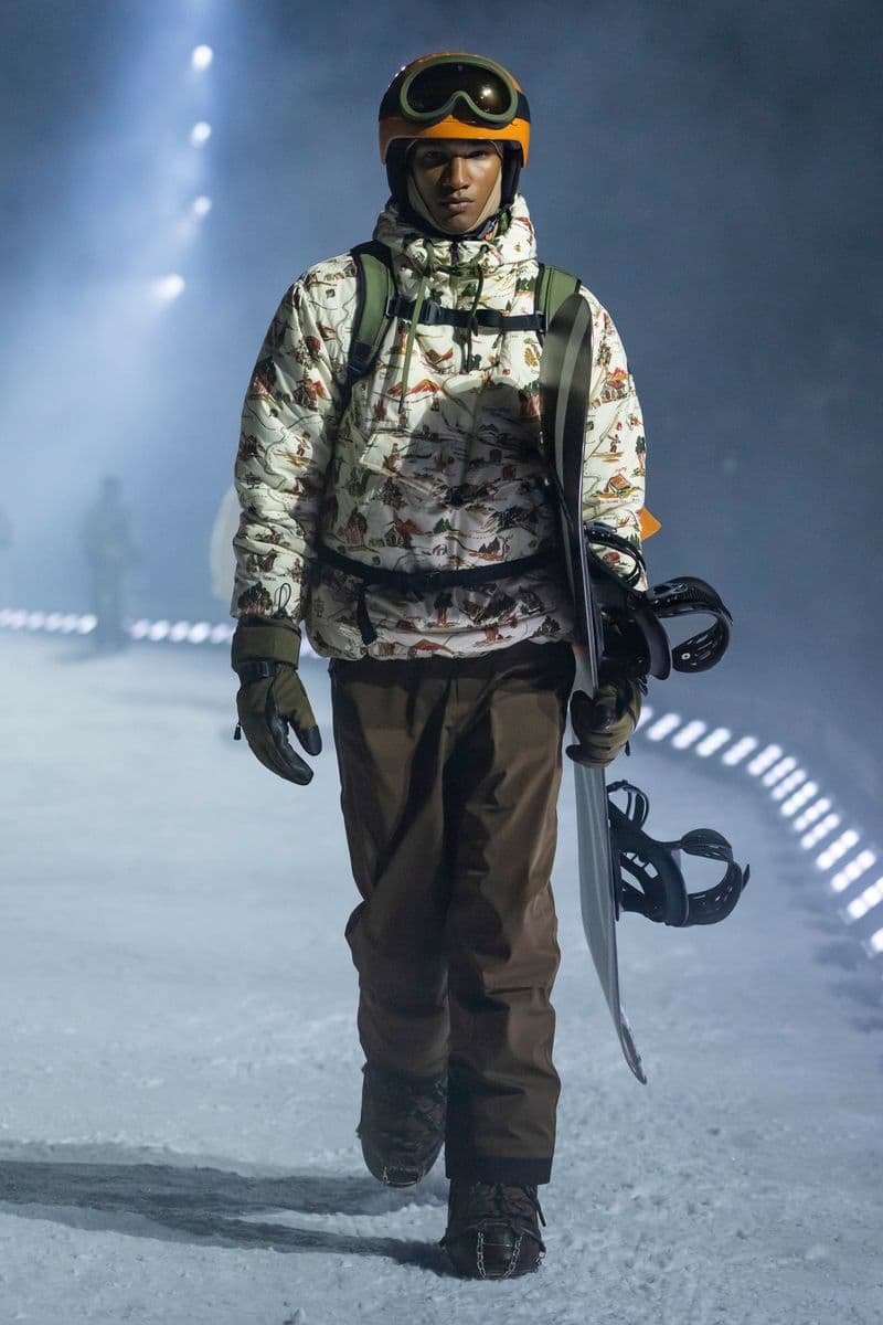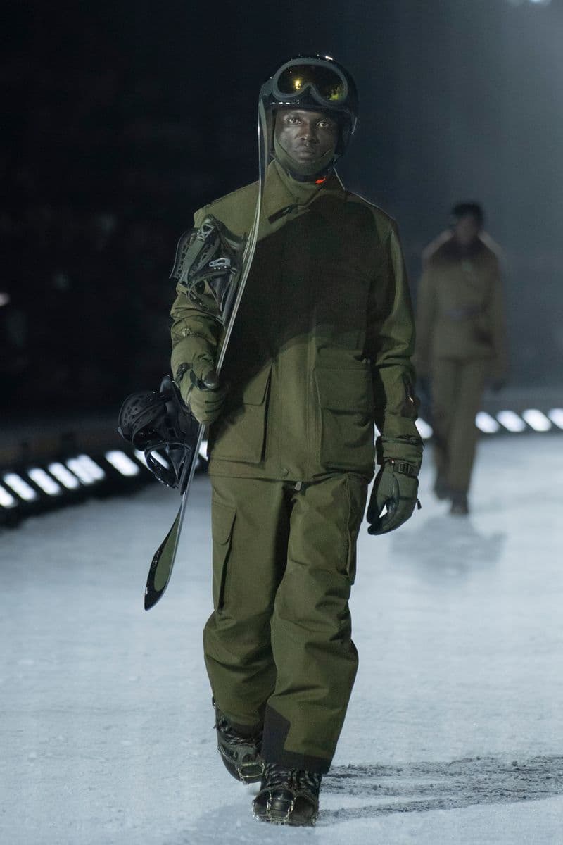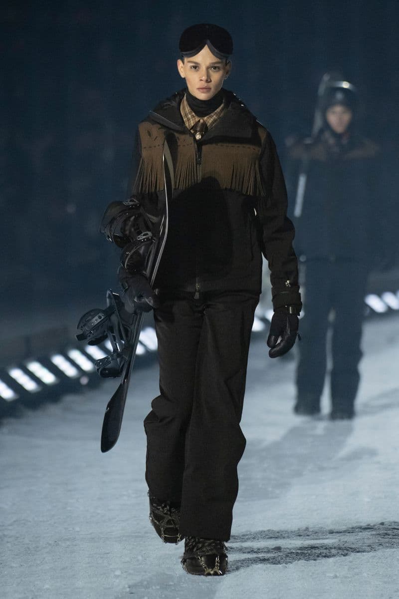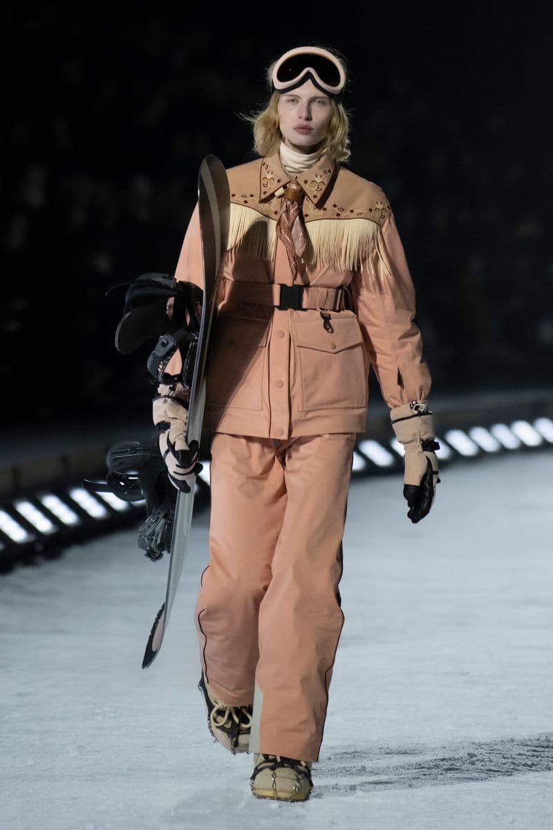 在设计层面,系列聚焦高性能外套系统的进阶演绎:多层结构羽绒服、滑雪夹克与技术大衣通过立体剪裁与分区保暖设计,实现防风、防水与轻量化的协同。功能性面料成为核心语言,结合弹性织物、技术填充与耐候材质,适应雪地、低温与高海拔条件。细节上可见大量源自专业滑雪装备的设计逻辑,如功能口袋配置、可调节结构与包裹式廓形,在保持运动机能的同时,强化整体线条的精致度与奢华感。