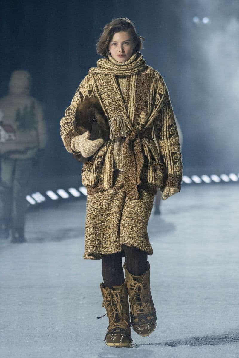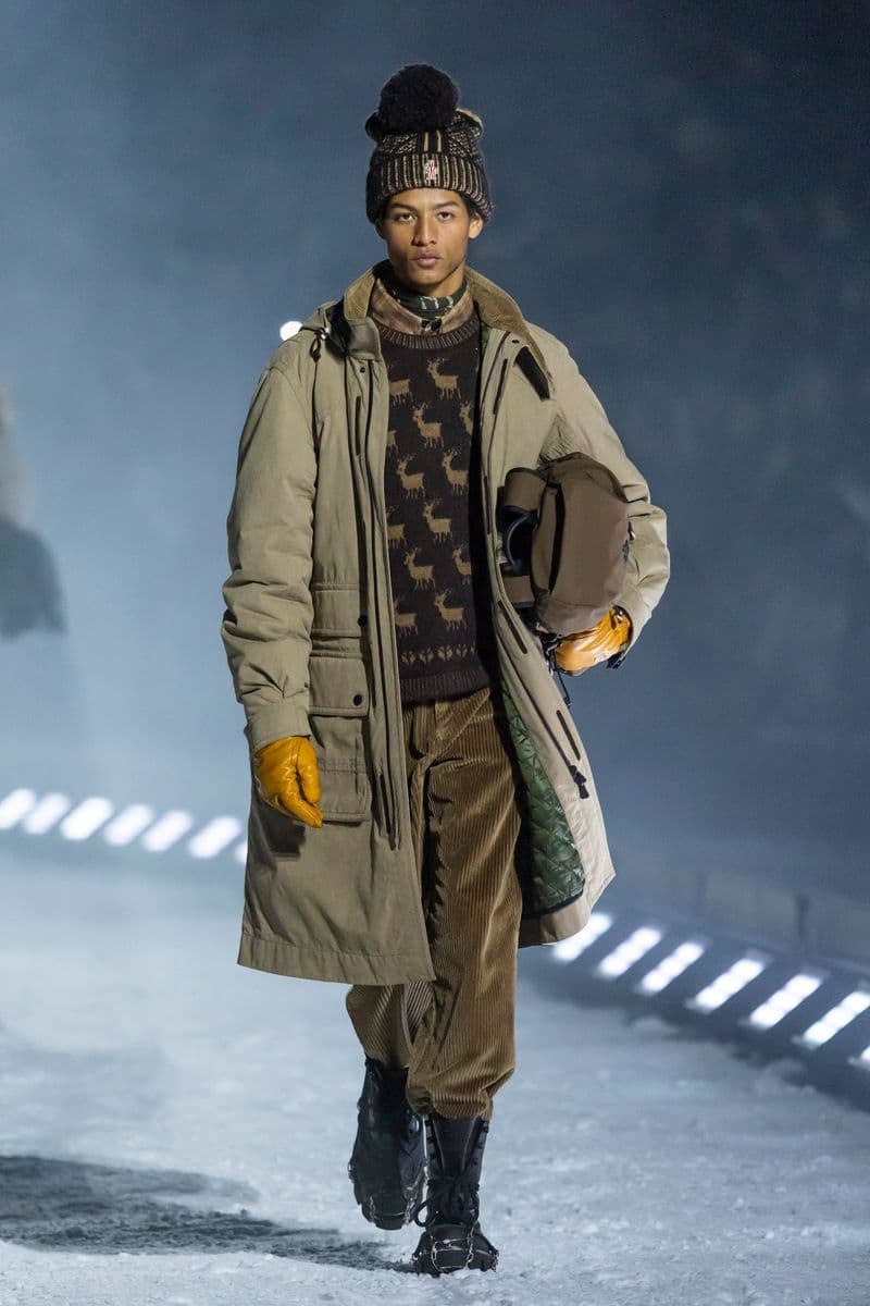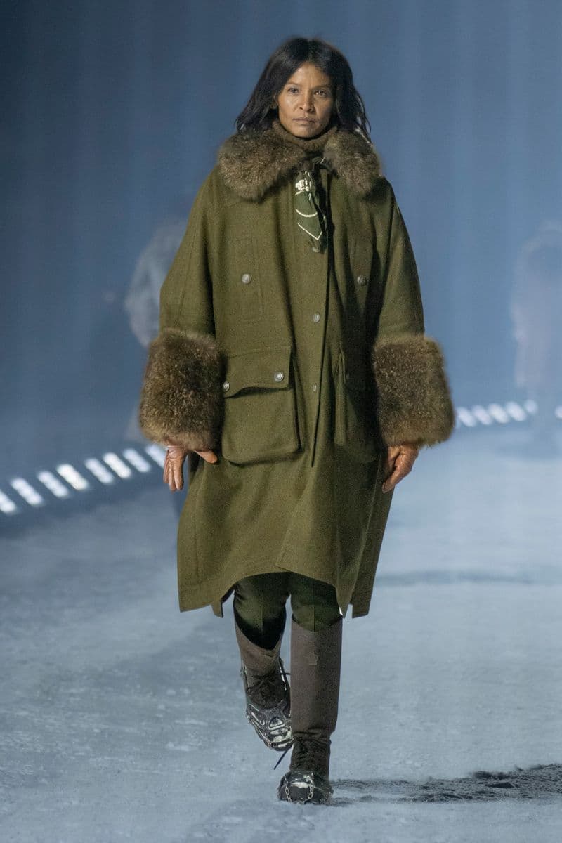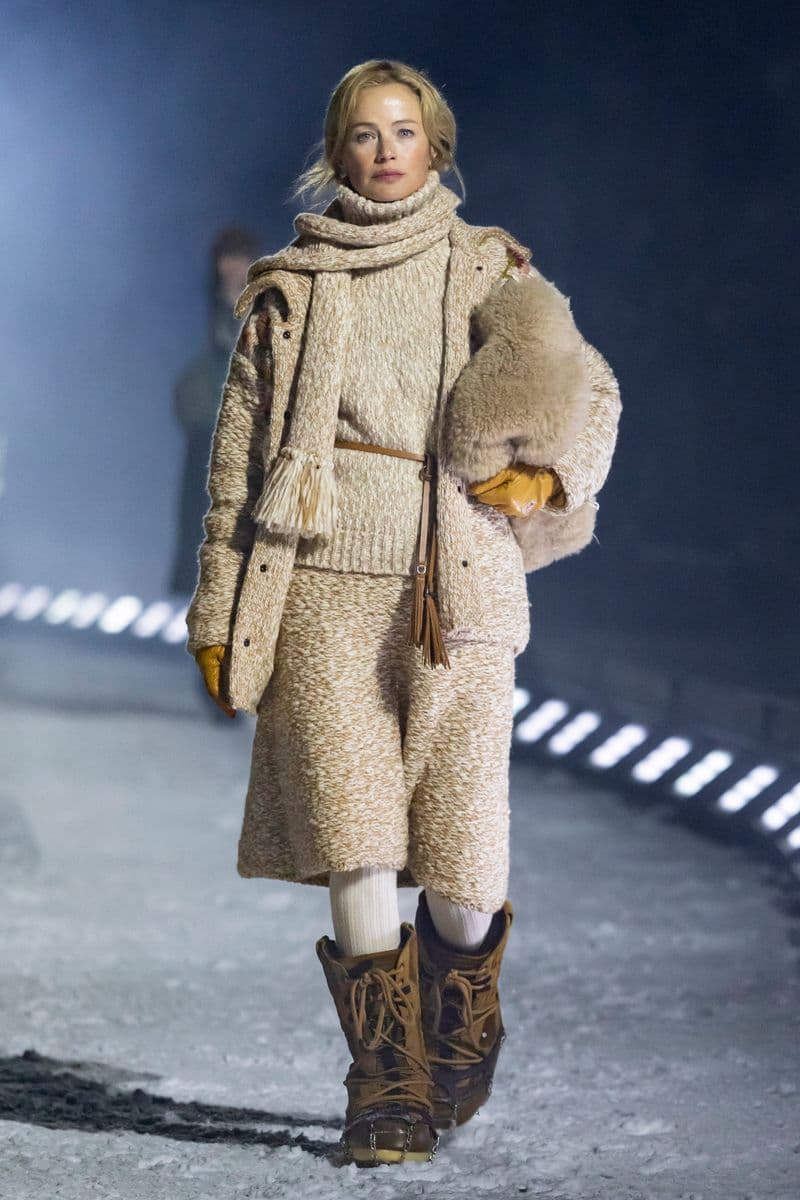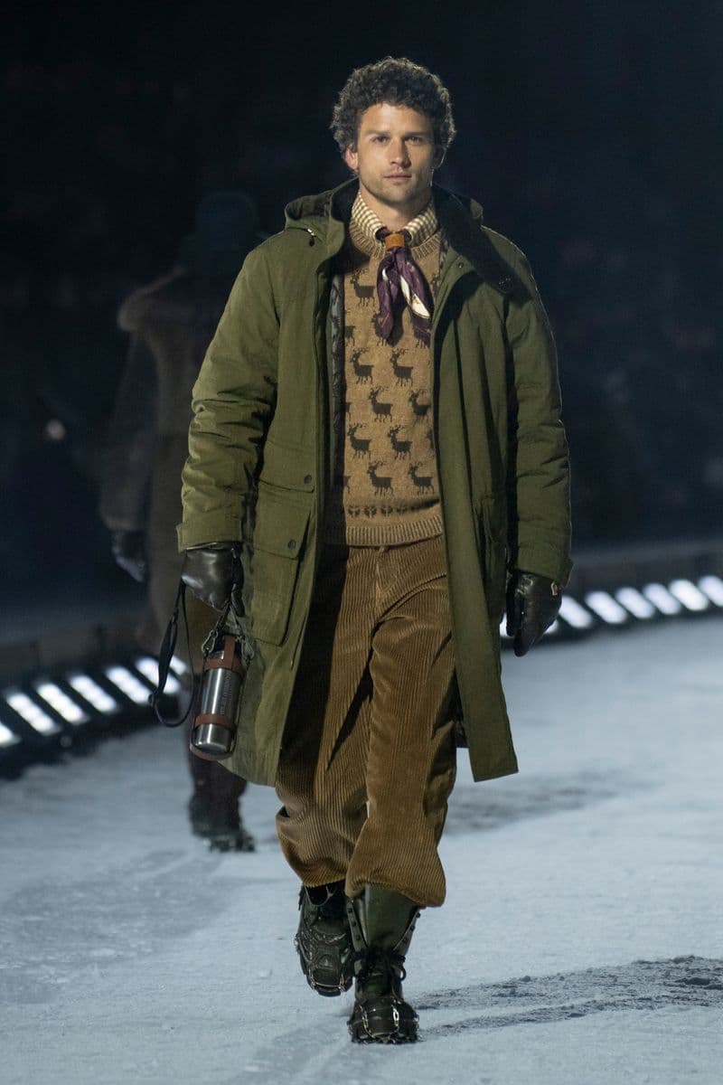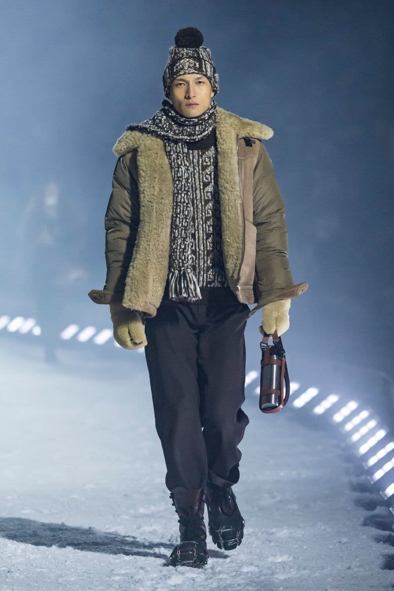 在设计层面,系列聚焦高性能外套系统的进阶演绎:多层结构羽绒服、滑雪夹克与技术大衣通过立体剪裁与分区保暖设计,实现防风、防水与轻量化的协同。功能性面料成为核心语言,结合弹性织物、技术填充与耐候材质,适应雪地、低温与高海拔条件。细节上可见大量源自专业滑雪装备的设计逻辑,如功能口袋配置、可调节结构与包裹式廓形,在保持运动机能的同时,强化整体线条的精致度与奢华感。