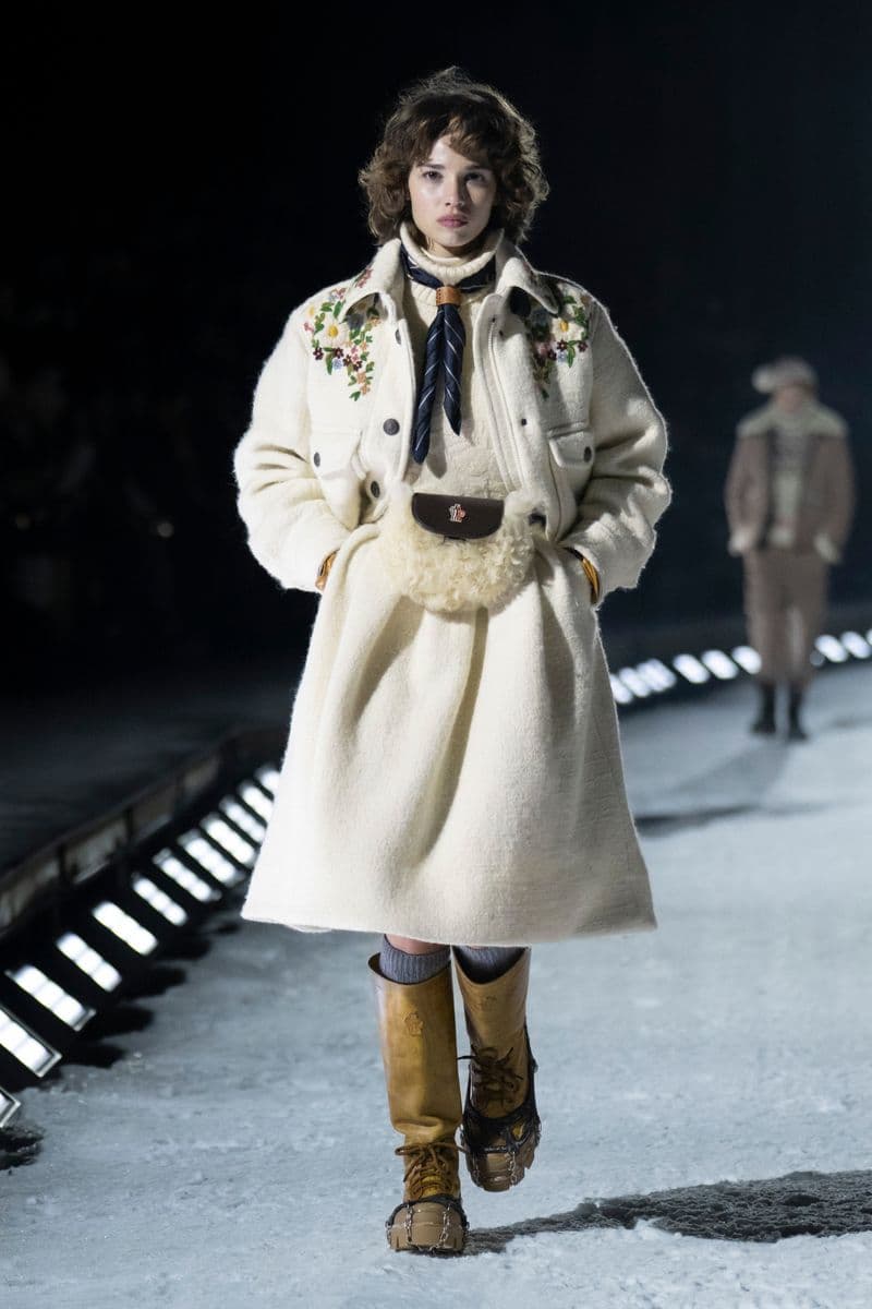 本次大秀将以户外雪山实景形式呈现,延续 Moncler Grenoble 将自然环境转化为发布舞台的传统。秀场选址于高海拔雪地之中,观众将沉浸于冰雪、山体与极端气候所构成的真实环境,直观感受系列在严苛条件下的功能表现与设计张力。技术面料、立体结构与运动性能将在动态走秀中被放大,雪地不再只是背景,而是检验服装性能的天然场域。