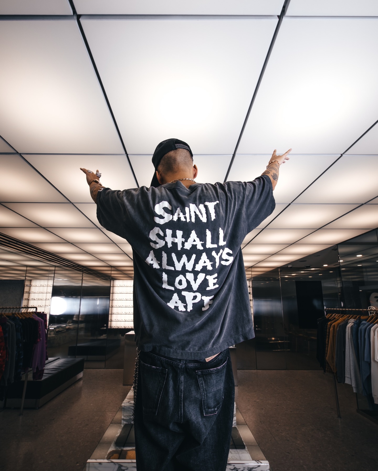 A BATHING APE® 与 ©SAINT Mxxxxxx 联名推出合作系列,由设计师细川雄太 和艺术家 Cali DeWitt 领衔设计。该系列涵盖服装和生活方式单品,包括两款 T 恤、一件短袖圆领卫衣、一件卫衣外套和一顶网眼帽,以及精选家居用品。艺术家 JP THE WAVY 担任该系列视觉形象代言人,展现了他与两个品牌的紧密联系。该系列将于 2026 年 2 月 7 日(星期六)起在 A BATHING APE® 和 ©SAINT Mxxxxxx 授权门店以及 BAPE.com 发售。