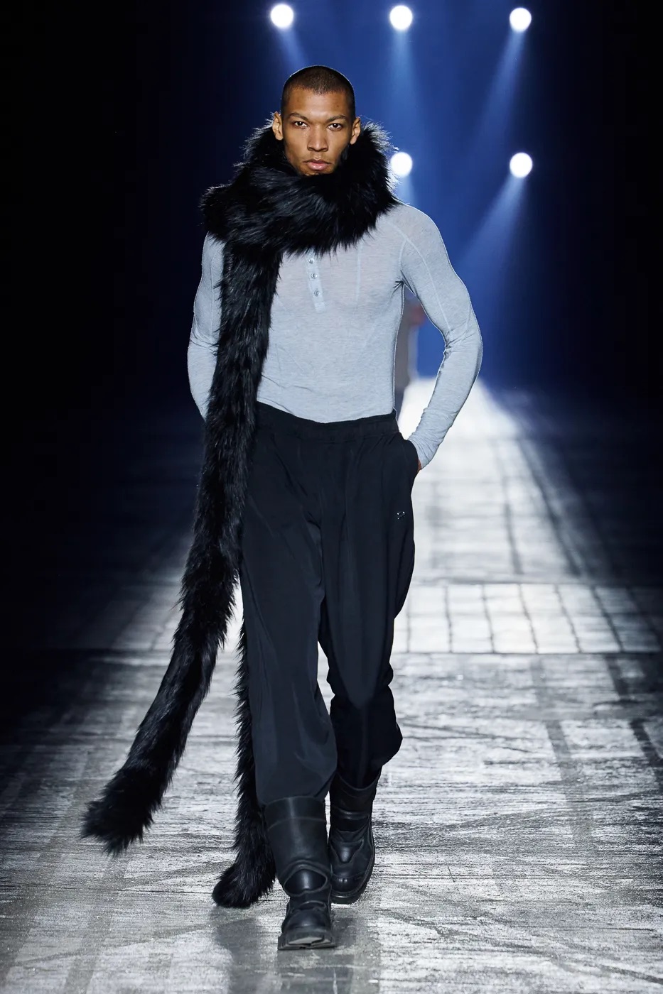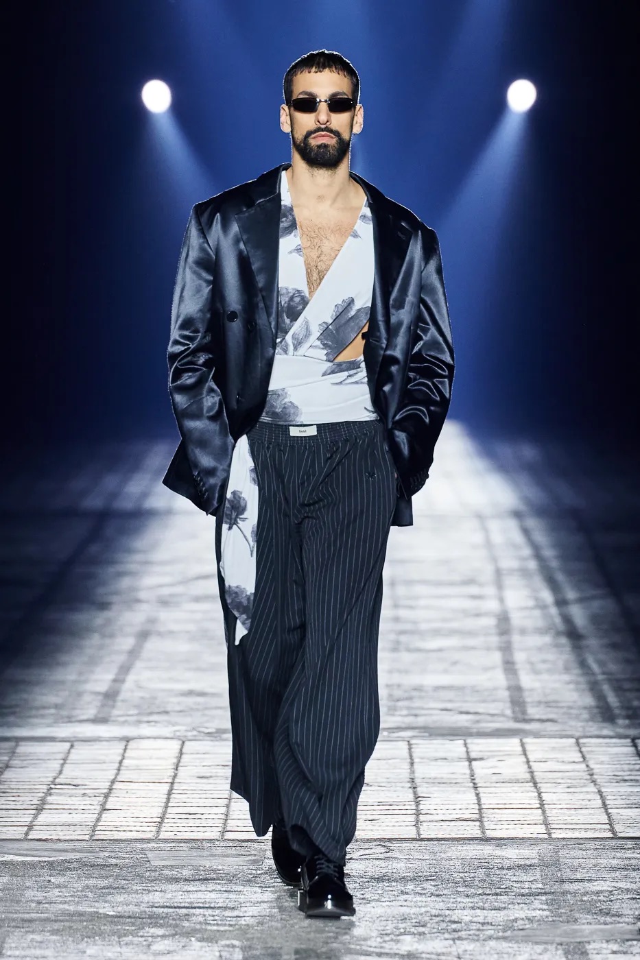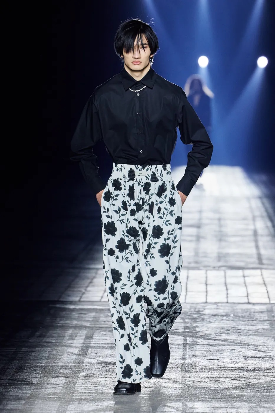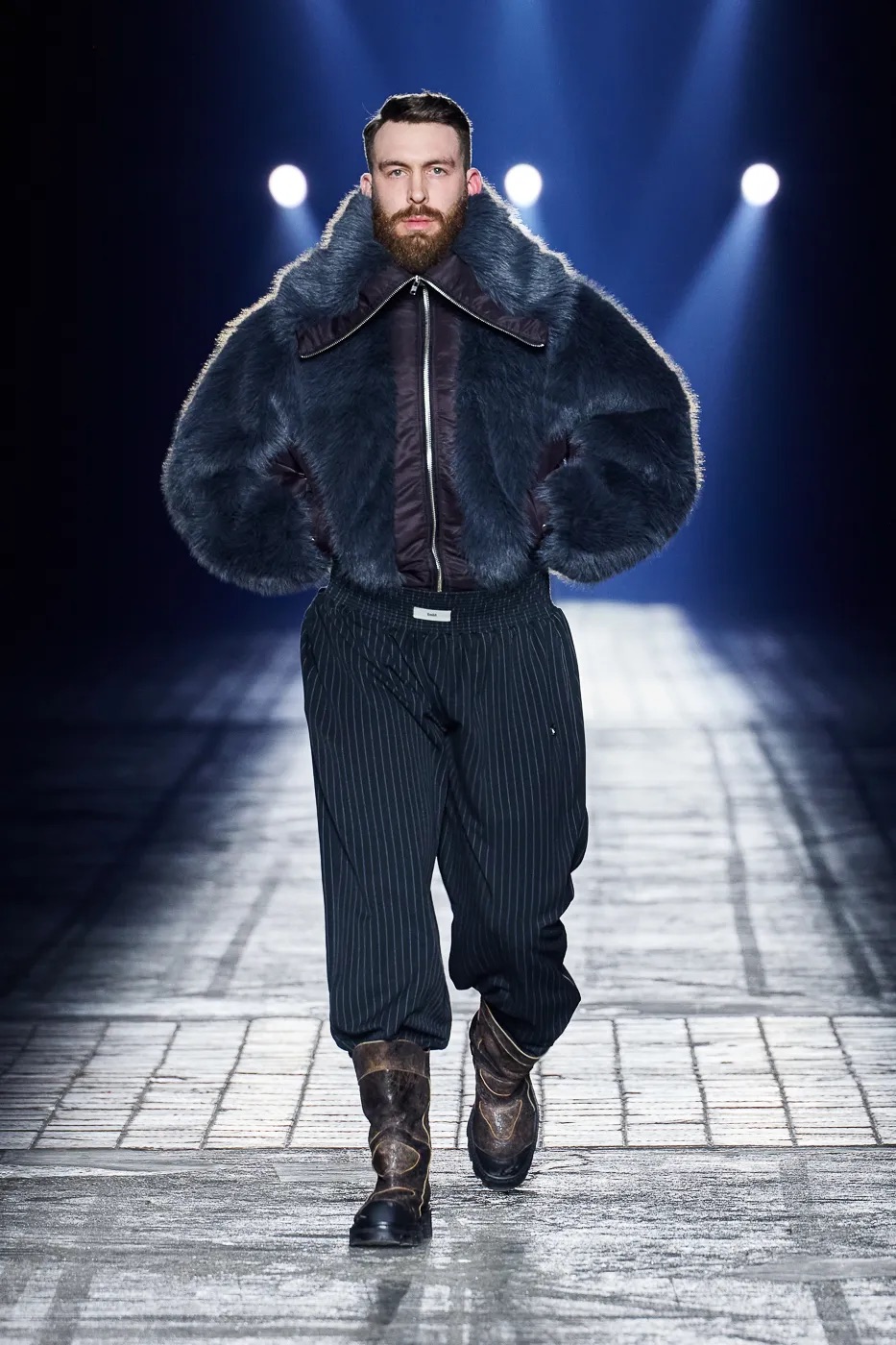 本季延续了 GmbH 始终拒绝沉默的理念,并从柏林的过往中汲取灵感,聚焦于 20 世纪 80 年代初的实验音乐场景。彼时的柏林充满反主流文化和乌托邦式的理想,而今被贪婪和压迫所取代。GmbH 将新系列视为一种反抗,用服装唤起人们对这座城市昔日美好的回忆。整季以黑、灰、米白和冷银色为主色调,硬挺的面料上点缀以花卉印花,蓬松的皮草质感、不对称的廓形设计既彰显空间感,又提供了防护性。超大号连帽衫和皮背心与结构感十足的长裤和宽肩设计相得益彰。