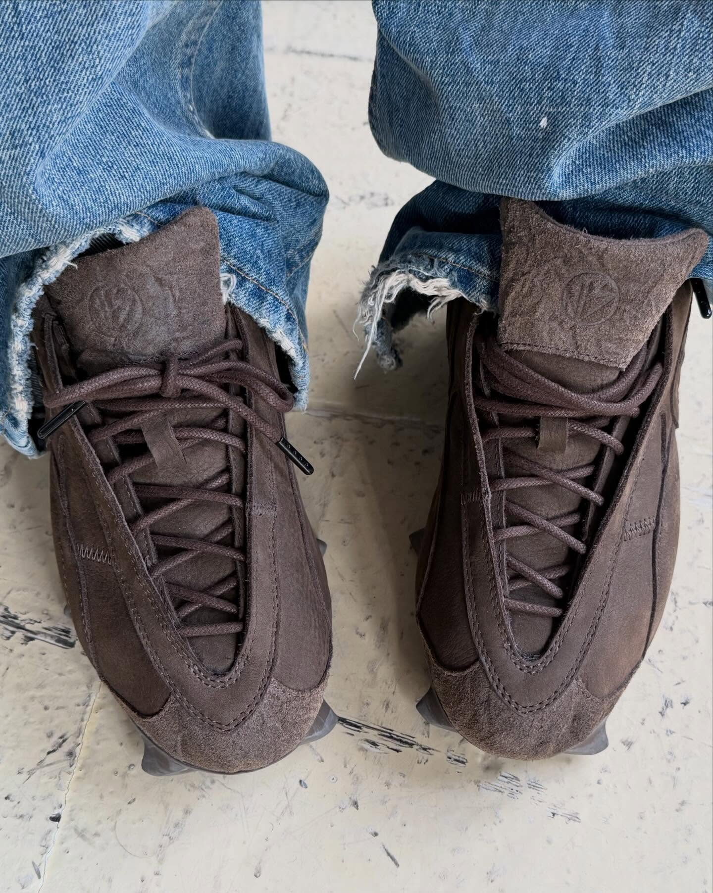 Beisser 因其极具攻击性的外露齿状鞋底而被昵称为「Biter」。流线型鞋身结合赛车运动灵感,呈现出鲜明的空气动力学轮廓,即便放在当下科技跑鞋盛行的背景下,依旧显得锋利而超前。本次合作延续 Beisser 原有的造型语言,将 Y2K 时代的性能基因,与 No/Faith Studios 所擅长的工业化、高端街头美学相融合,连接千禧年初的田径文化与当代设计语境。