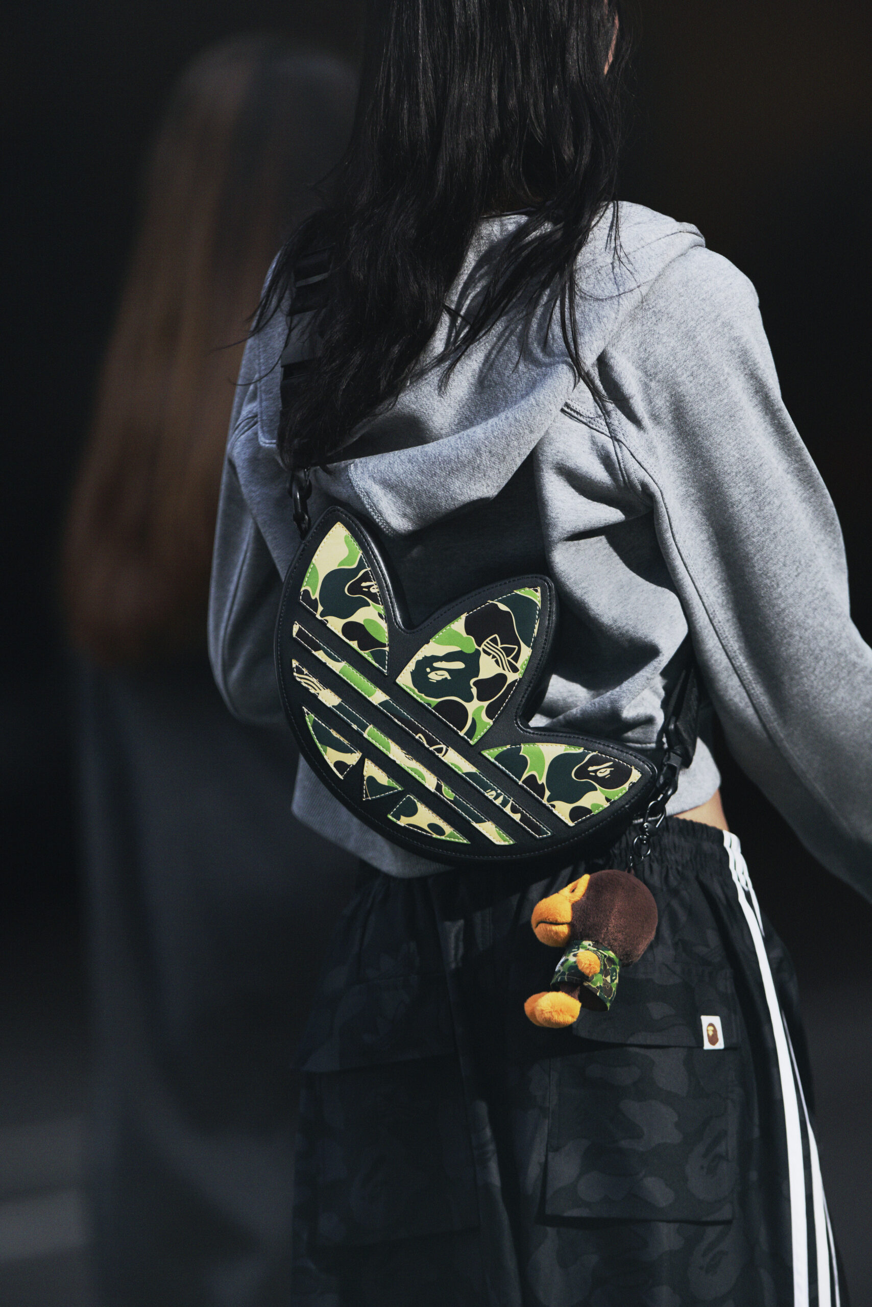 鞋履系列则聚焦于三款经典鞋型:adistar HRMY BAPE®、Samba BAPE® 以及 Campus 00s BAPE®。首先,adistar HRMY BAPE® 鞋身采用 ABC 迷彩绿配色,饰以三叶草细节,并搭载反光 BAPESTA™ 底层图案,中底印有标志性鲨鱼齿纹路。Samba BAPE® 则为上一季首度亮相的鞋型带来全新配色。最后,Campus 00s BAPE® 以黑色配色呈现,侧面醒目的白色 BAPESTA 图案与内侧的三条纹设计成为亮点。