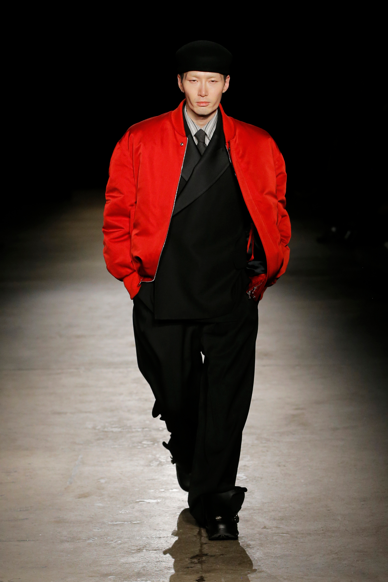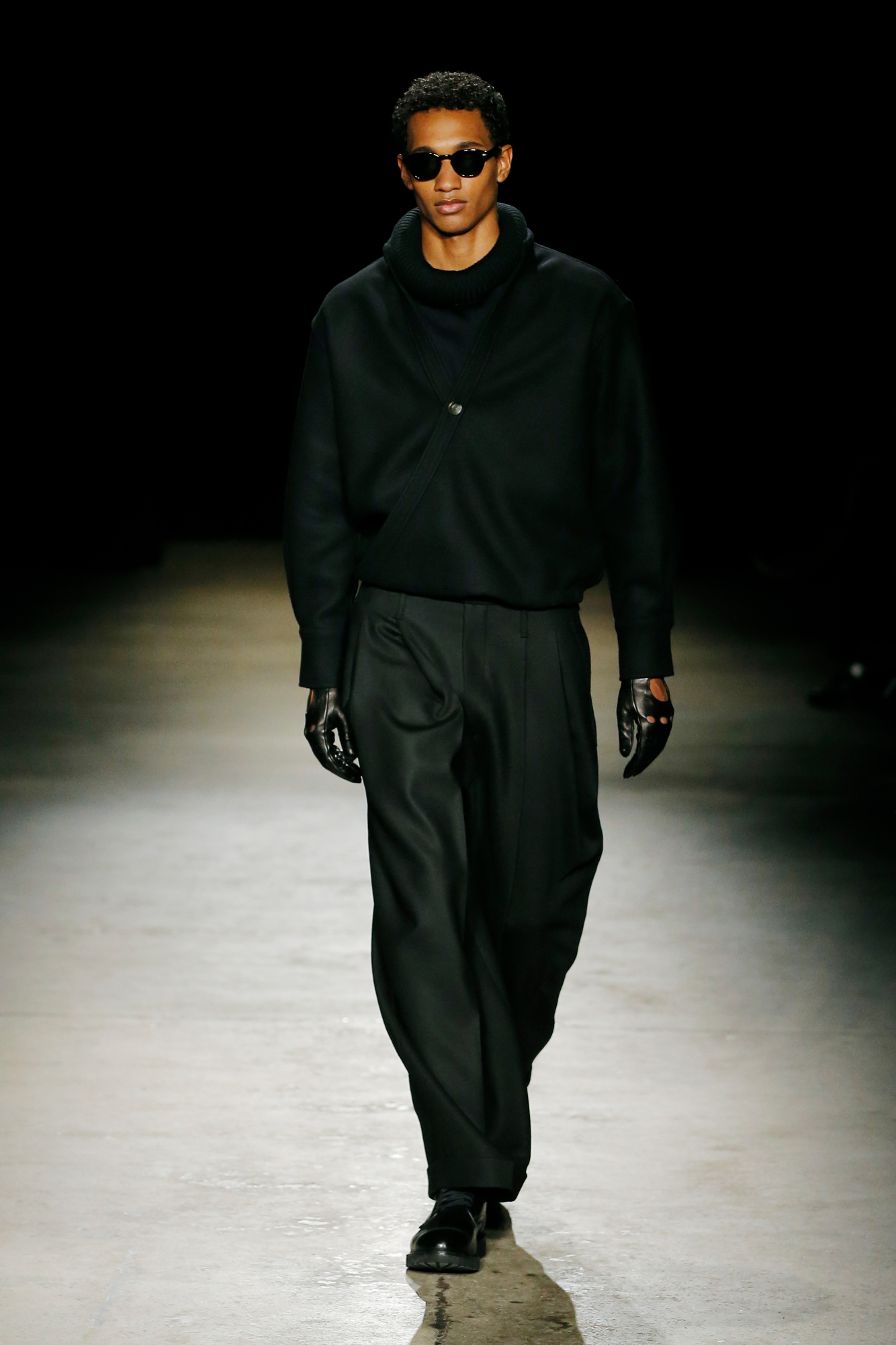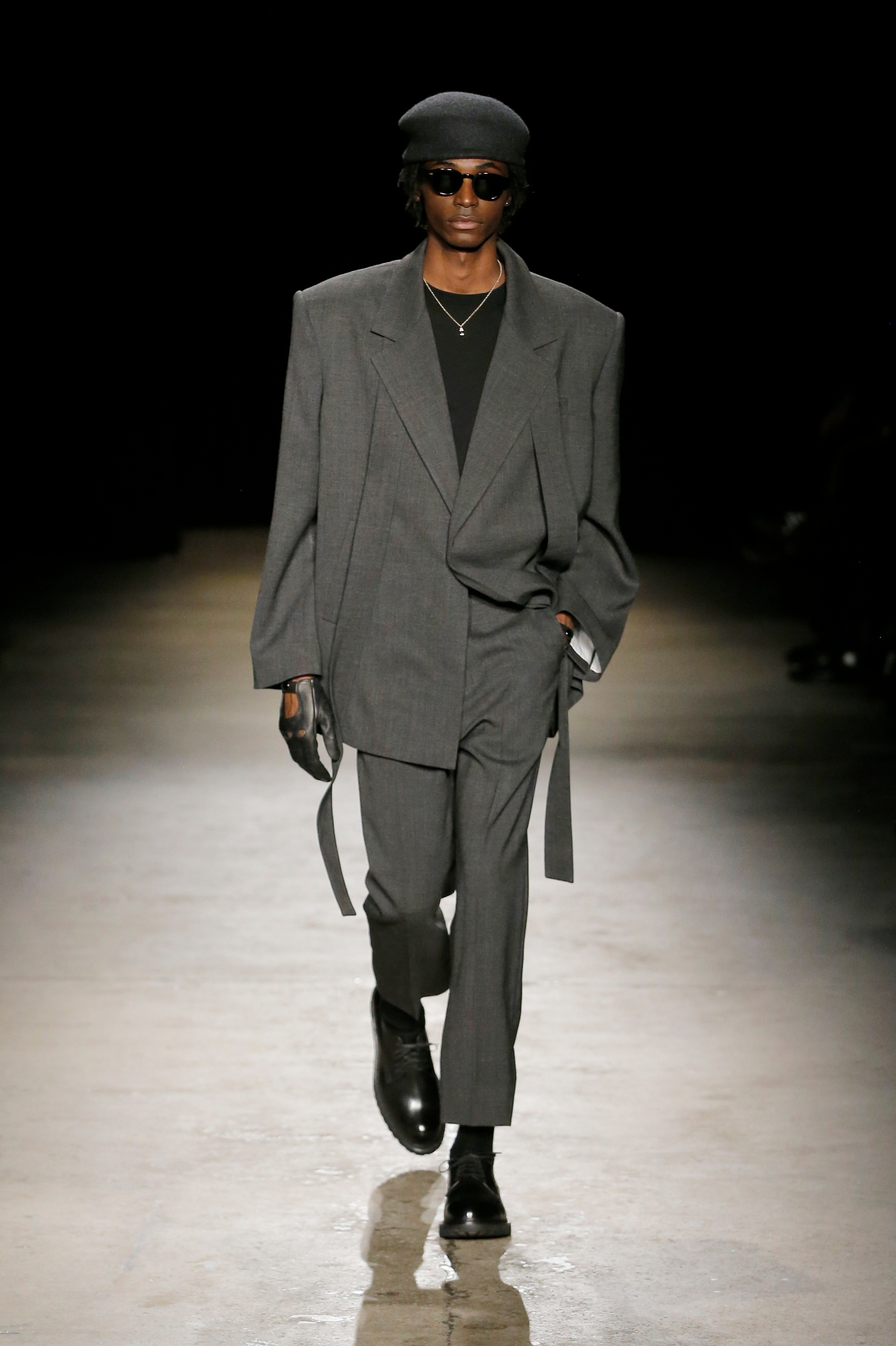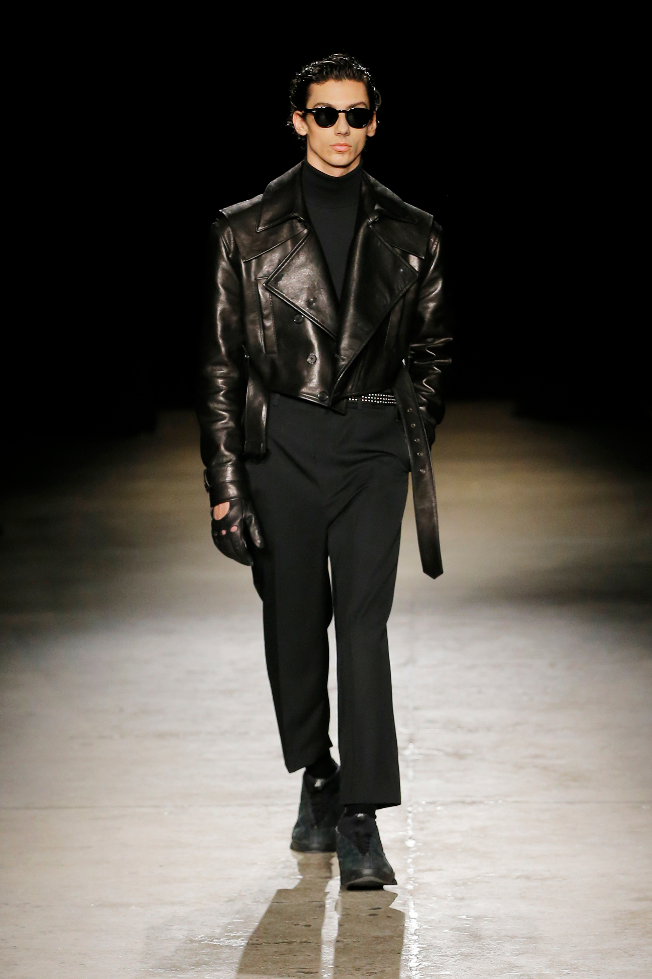 系列中出现了锋利剪裁的裹式西装、流动感的建筑风格重新诠释的剪裁、西装外套、经典的高级派大衣和飞行夹克,背部的造型设计加入了收褶元素,甚至有款夹克通过额外的臂洞让袖子变得更具装饰性。此外,皮革面料被重新演绎,细腻的皮质裤子与夹克成为亮点。