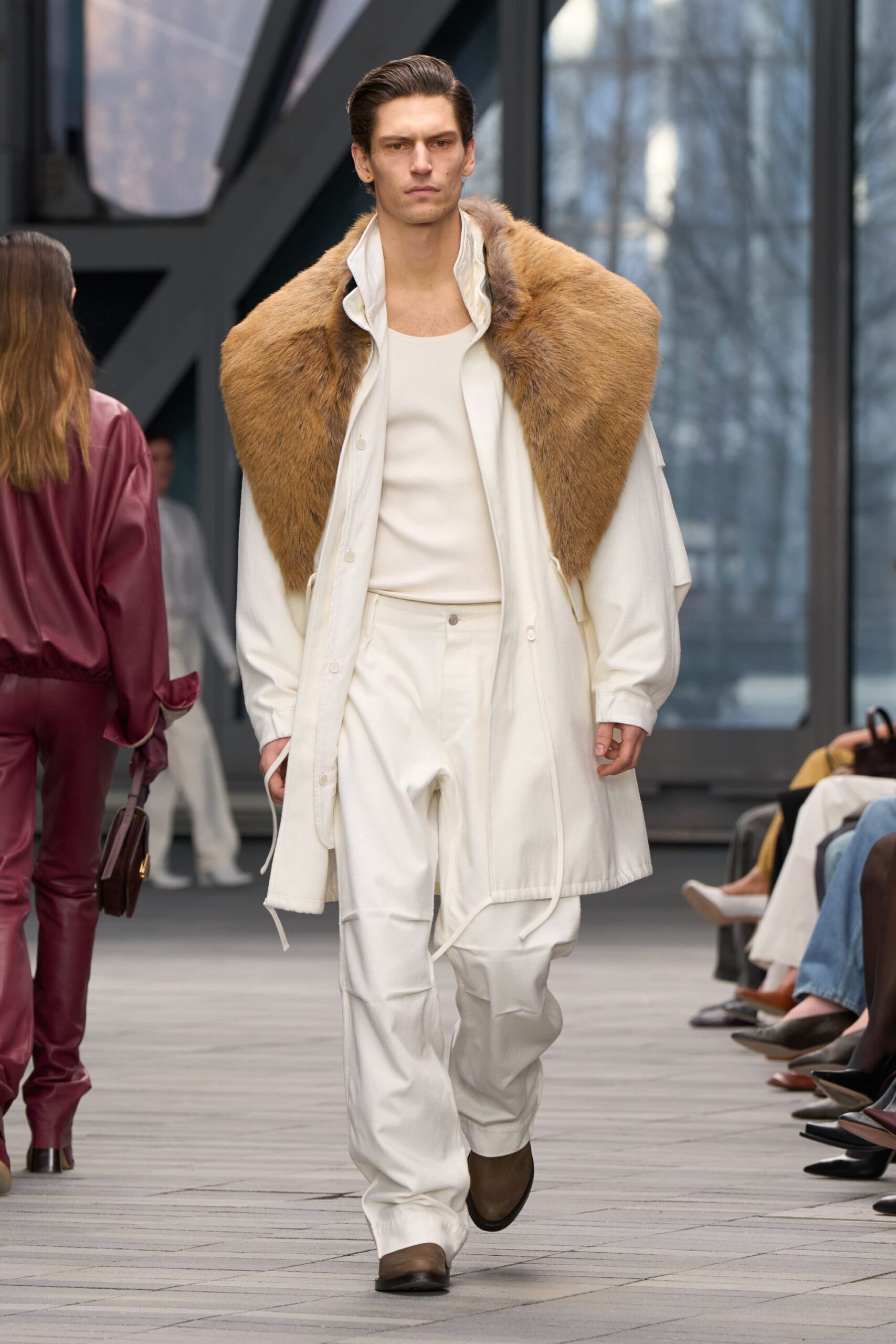 Calvin Klein Collection 2026 秋冬系列进一步展现了创意总监 Veronica Leoni 对品牌奢华形象的诠释。这一季的主题定义为「享乐主义优雅」,通过性感的剪裁、奢华的毛领和简约的几何线条将奢华与克制巧妙融合。