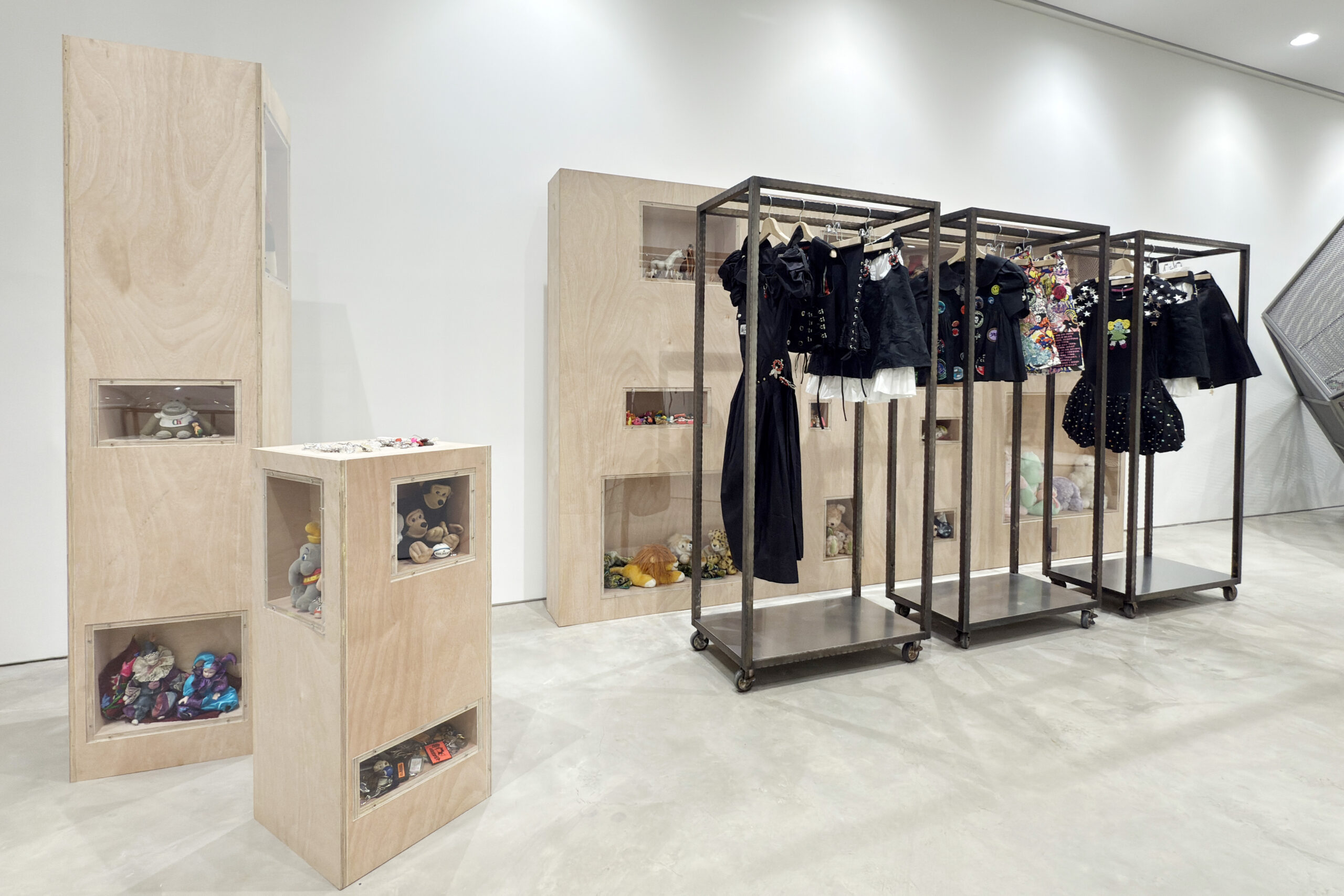 COMME des GARÇONS 于一层 Elephant Space 呈现 2026 春夏特别装置,川久保玲以「破坏与重生」为主题,在解构木质框架中构建戏剧化场景,呼应「After the dust」核心灵感,延续可步入式艺术展厅的空间表达。