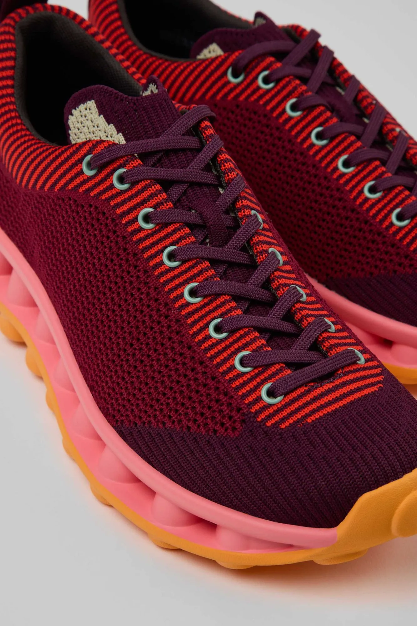 2026 年春夏,CAMPER 携手 SUNNEI 推出了双方的第三款 PELOTISSIMA 运动鞋。这款最终联名版本源自 CAMPER 于 1996 年推出的休闲鞋 Pelotas Nu——该鞋以其轻盈的鞋身和独特的双钉鞋底而著称。最新版 PELOTISSIMA 采用了双色双钉 XL EXTRALIGHT EVA 外底,以提供双重缓震。透气简约的针织鞋面由 85% 再生聚酯纤维和 15% 熔融纱线制成,打造出轻盈舒适的穿着体验。本季推出的四款配色融合了不同色调的蓝色、绿色、酒红色和棕色,完美呼应了 SUNNEI 和 CAMPER 的标志性配色。