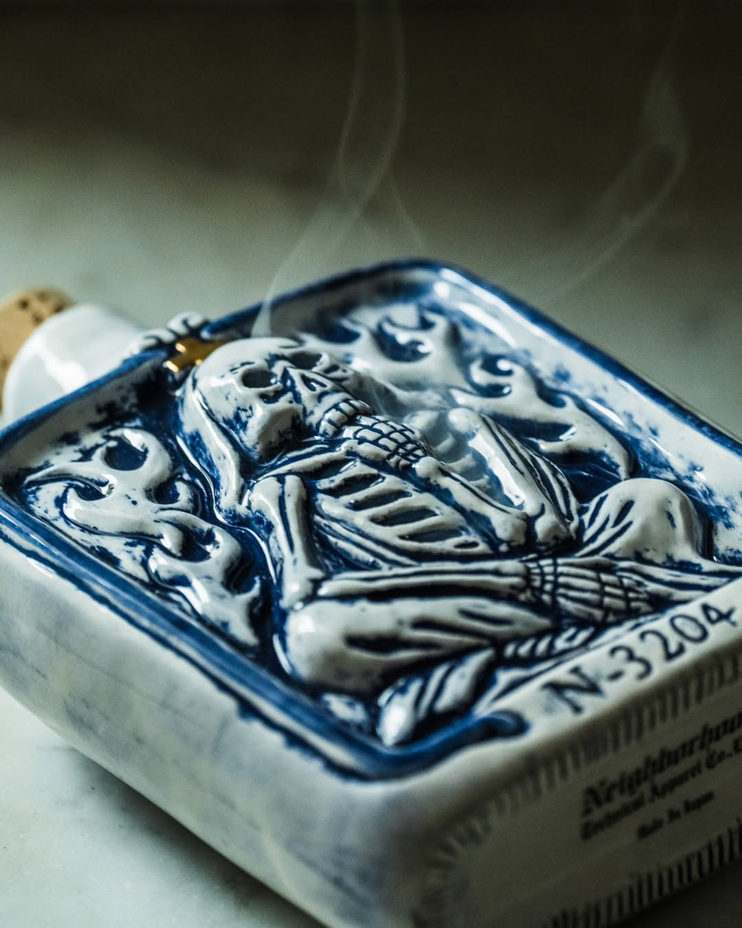 NEIGHBORHOOD 每季推出的陶瓷线香座都被视为品牌极具代表性的收藏单品。来到 26 春夏新作正式亮相,这一次设计以酒瓶轮廓为原型,在品牌标志性的暗黑美式语境下重新塑造。整体延续高规格陶瓷工艺,通过瓶身细致的骷髅浮雕与隐藏式出烟孔结构,营造出强烈的视觉张力,将于 2 月 14 日登陆品牌指定门店发售。