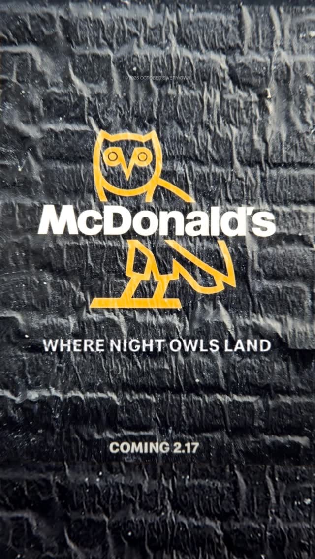 近日,McDonald’s 释出了一段 OVO 合作预告。根据近期在多伦多曝光的宣传海报,双方将标志性的猫头鹰 Logo 与金色拱门巧妙融合,并配以「Where Night Owls Land」标语,确认企划将于 2 月 17 日正式启动。据传,此次联乘或将加入 McDonald’s「Famous Orders」名人套餐系列,并有望推出黑金色特别包装及联名周边服饰,延续 Drake 将街头奢华美学融入大众文化的独特视角。目前宣传主要集中于加拿大市场,更多产品与发售细节有待官方进一步公布。