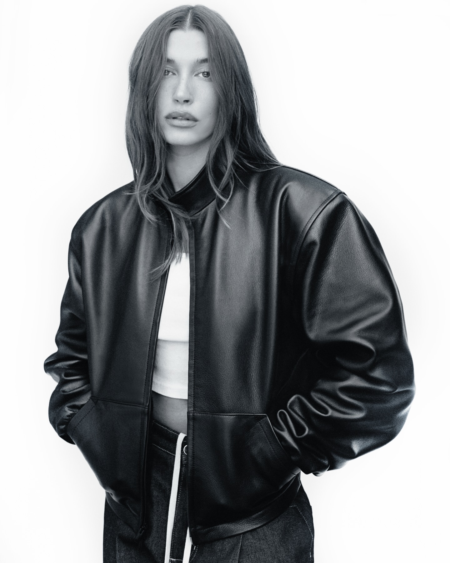 Justin Bieber 个人品牌 SKYLRK 发布情人节限定系列,由 Hailey Bieber 出镜演绎,整体视觉呈现 90 年代低保真美学。系列以垫肩皮革外套与同款连帽卫衣为核心,融入 Hailey 标志性的面孔轮廓,配色严守白、灰、黑冷调。服装线同步推出冷帽、短版背心及贴身短裤,鞋履部分则释出全新单色拖鞋,与品牌手机壳等配饰共同完善日常造型。据悉该系列将于 2 月 13 日上午 10 时(太平洋时间)在品牌官网正式发售。