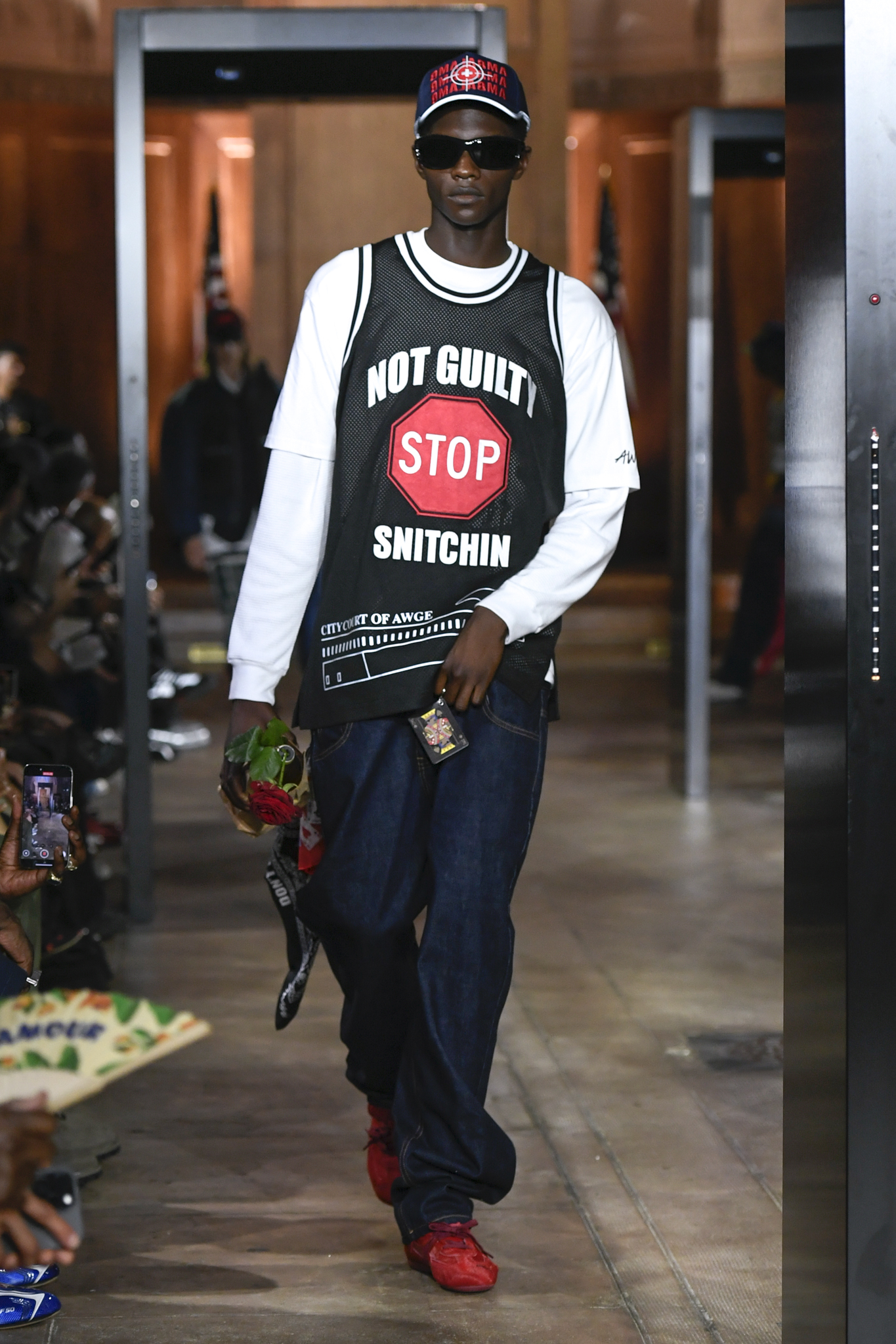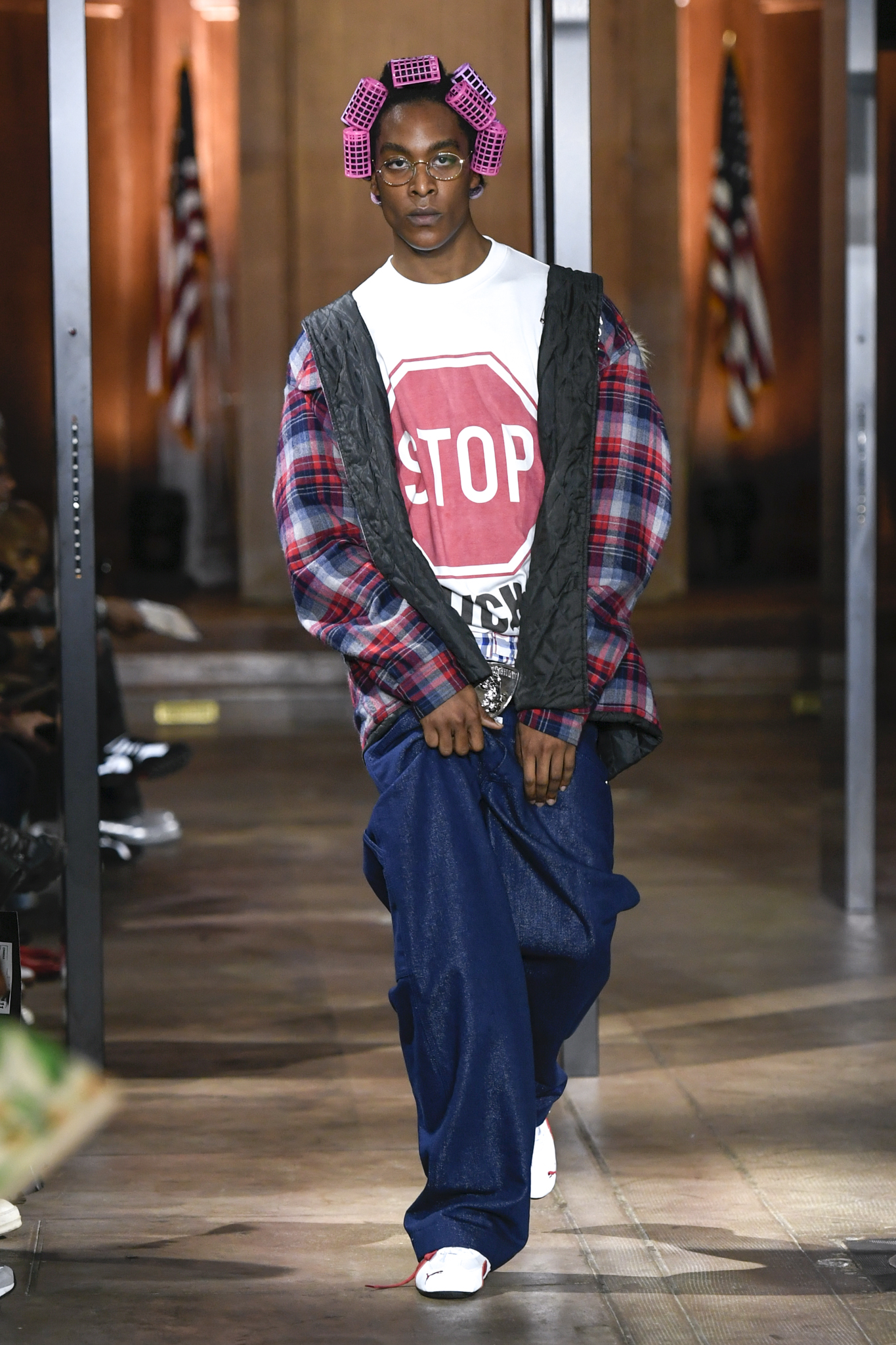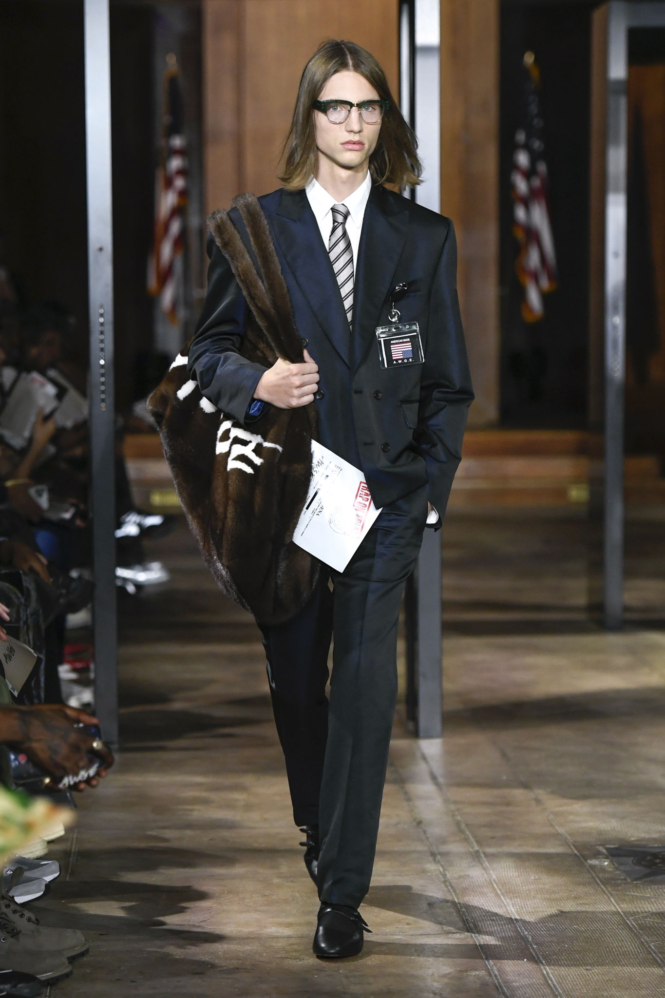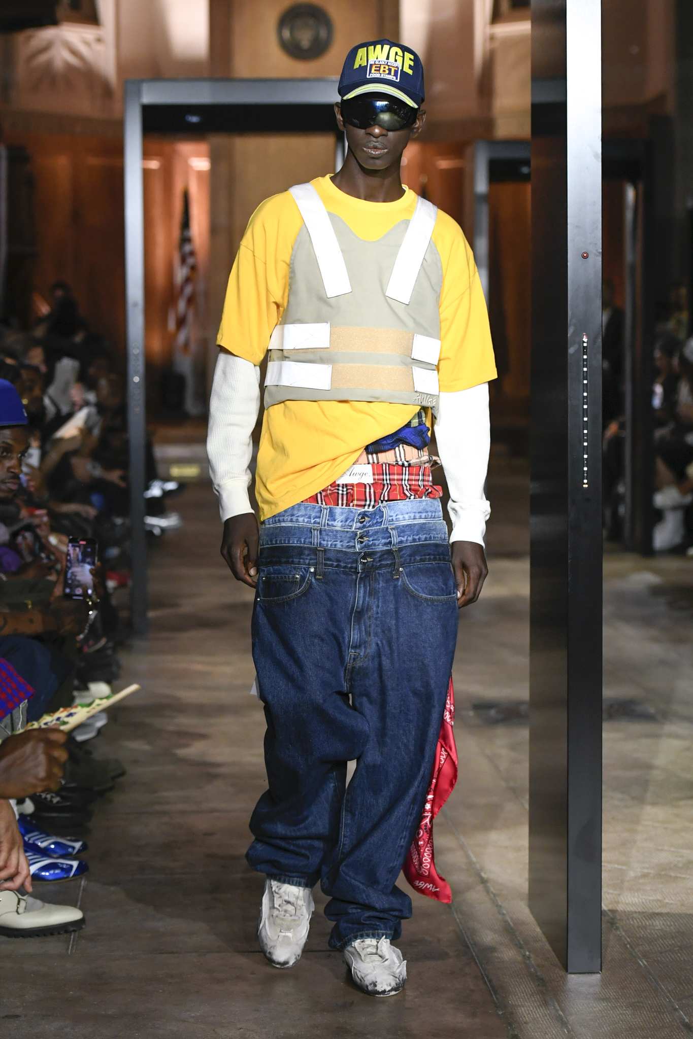 A$AP Rocky 携个人品牌 AWGE 回归家乡纽约,于市政厅旧址呈现 2026 秋季大秀。系列以「Obligatory Fashion」为主题,延续对创作过程的解构,将秀场后台搬至 T 台中央,化妆镜与等候队列成为视觉叙事的一部分。设计上模糊性别界限,融合利落剪裁、学院格纹与实用工装,并以乳胶质感、夸张比例及皮草饰边注入叛逆张力。亮点单品包括与 Puma 合作的皮质赛车外套、超大号态度包袋及皮质婴儿车,将其父亲角色与街头美学并置。秀场亦特邀蕾哈娜前排助阵,全程贯穿 Rocky 对社群、身份与日常衣着的真挚探讨。