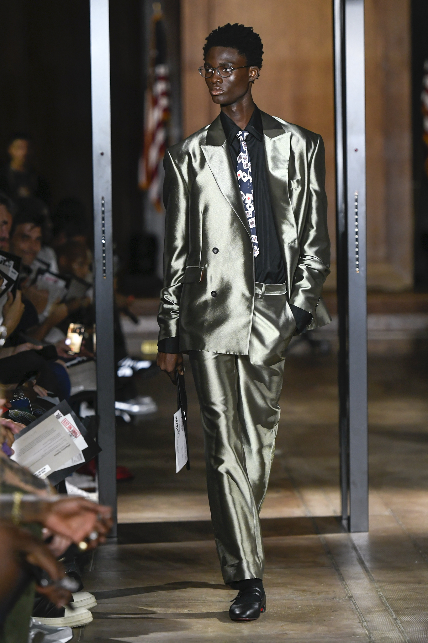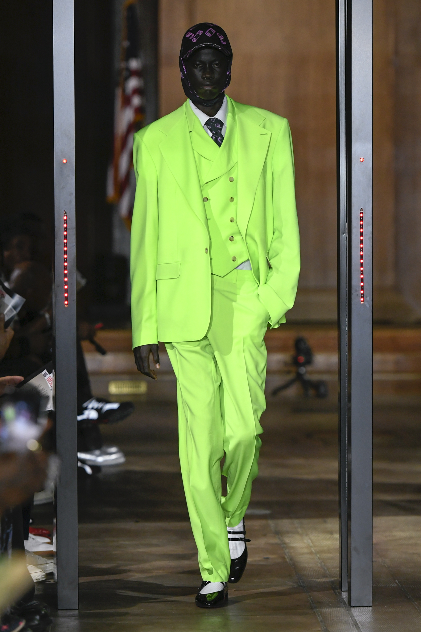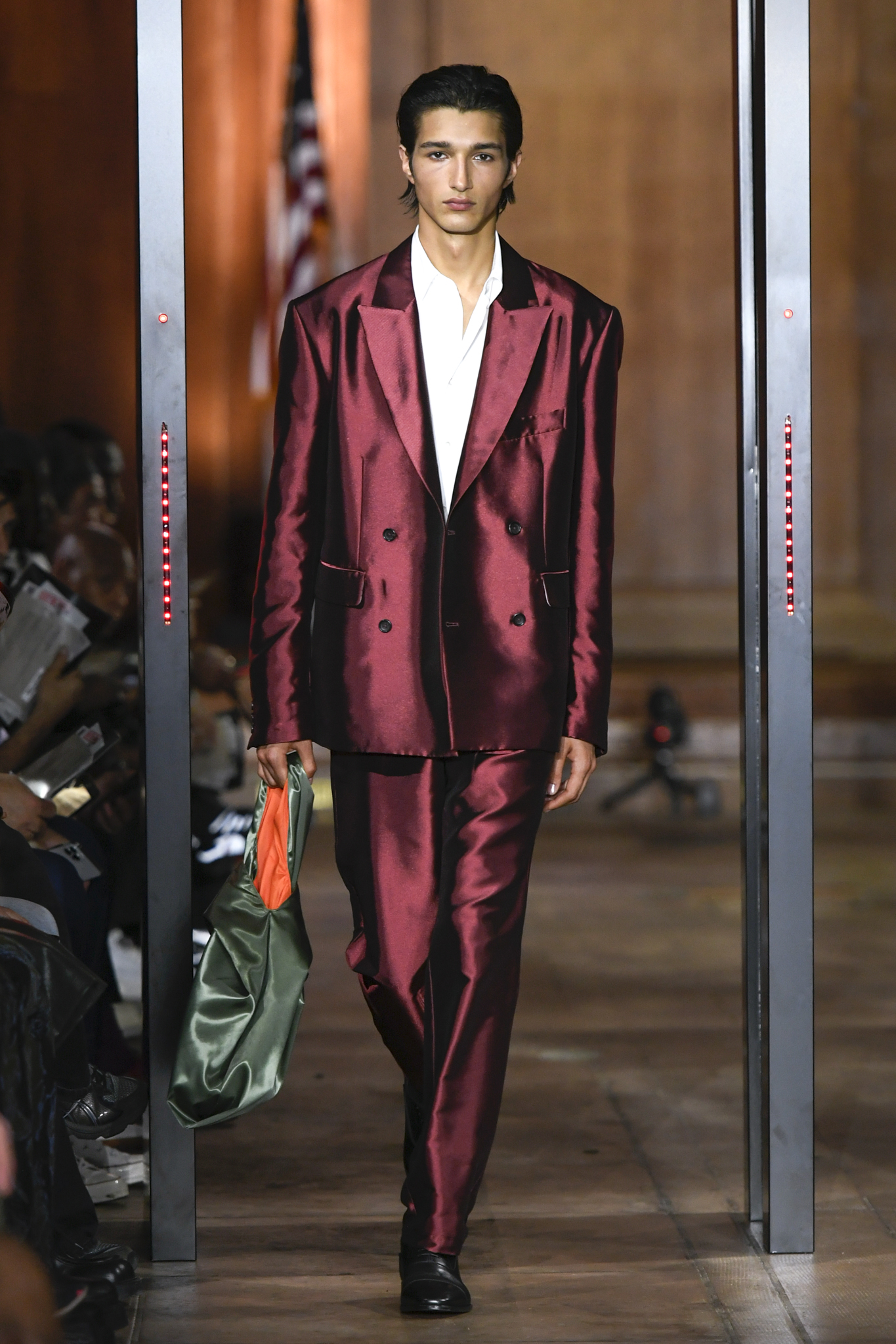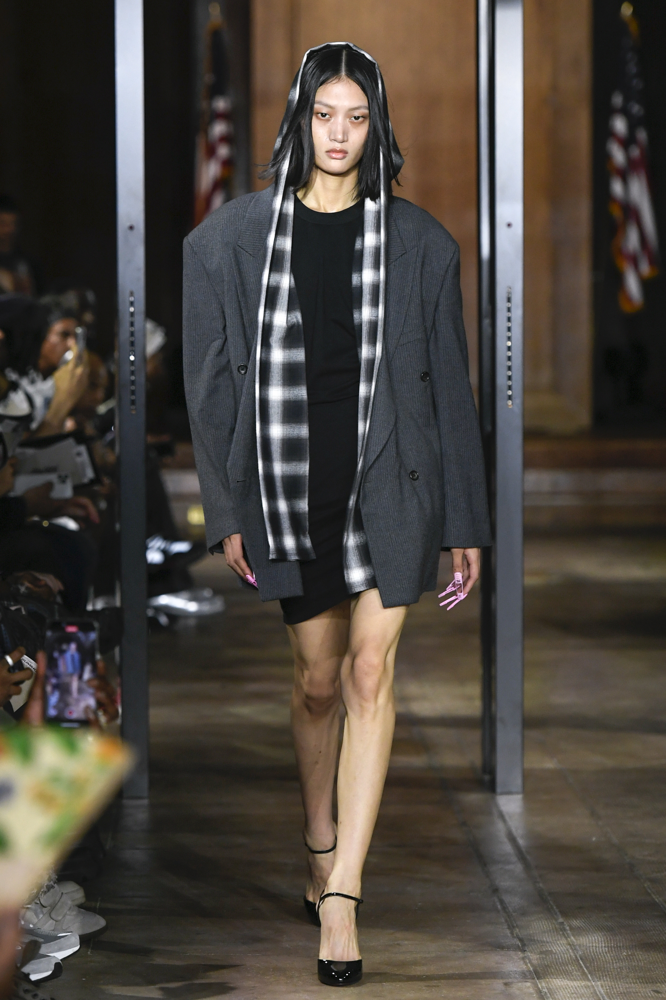 A$AP Rocky 携个人品牌 AWGE 回归家乡纽约,于市政厅旧址呈现 2026 秋季大秀。系列以「Obligatory Fashion」为主题,延续对创作过程的解构,将秀场后台搬至 T 台中央,化妆镜与等候队列成为视觉叙事的一部分。设计上模糊性别界限,融合利落剪裁、学院格纹与实用工装,并以乳胶质感、夸张比例及皮草饰边注入叛逆张力。亮点单品包括与 Puma 合作的皮质赛车外套、超大号态度包袋及皮质婴儿车,将其父亲角色与街头美学并置。秀场亦特邀蕾哈娜前排助阵,全程贯穿 Rocky 对社群、身份与日常衣着的真挚探讨。