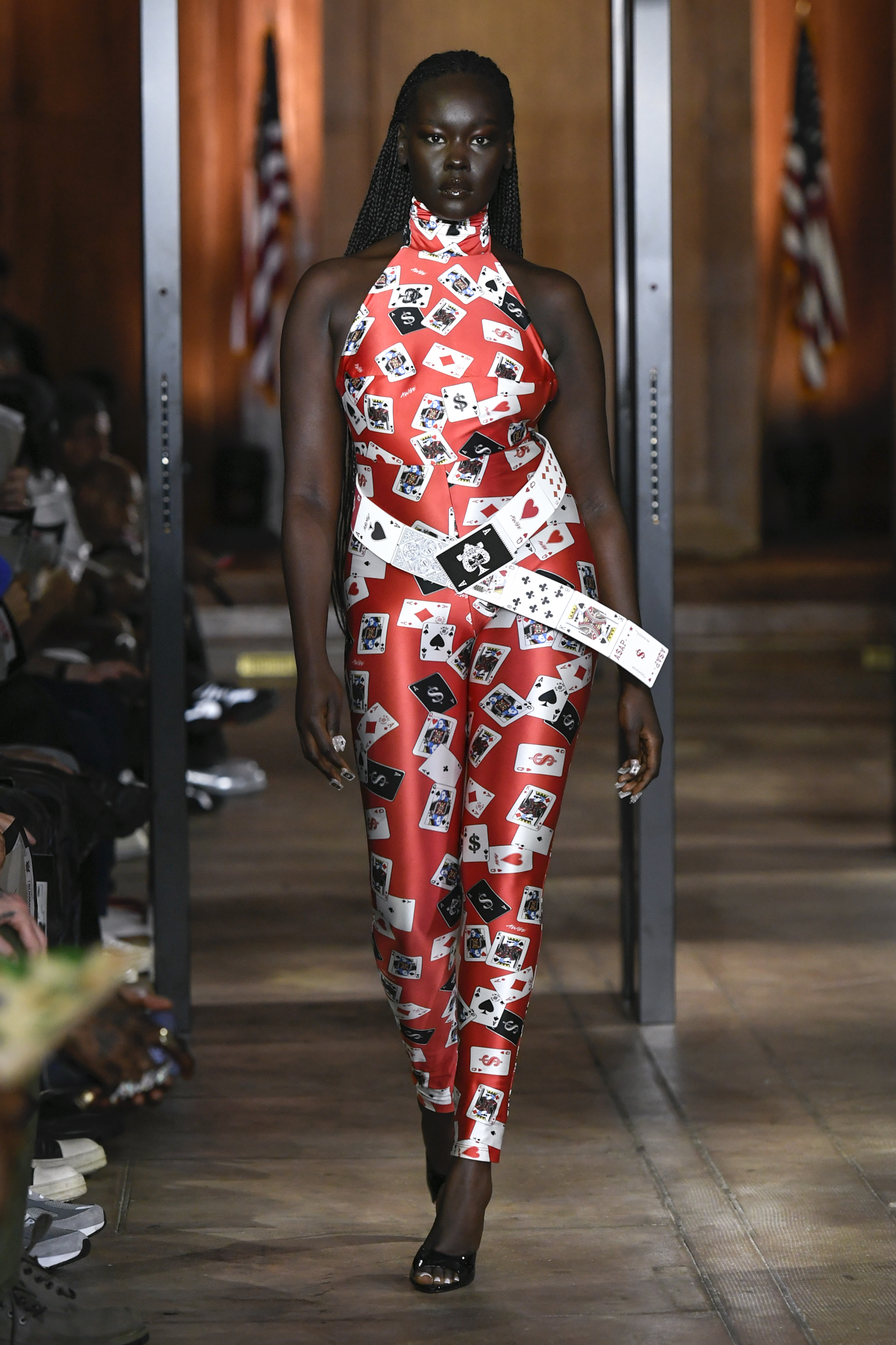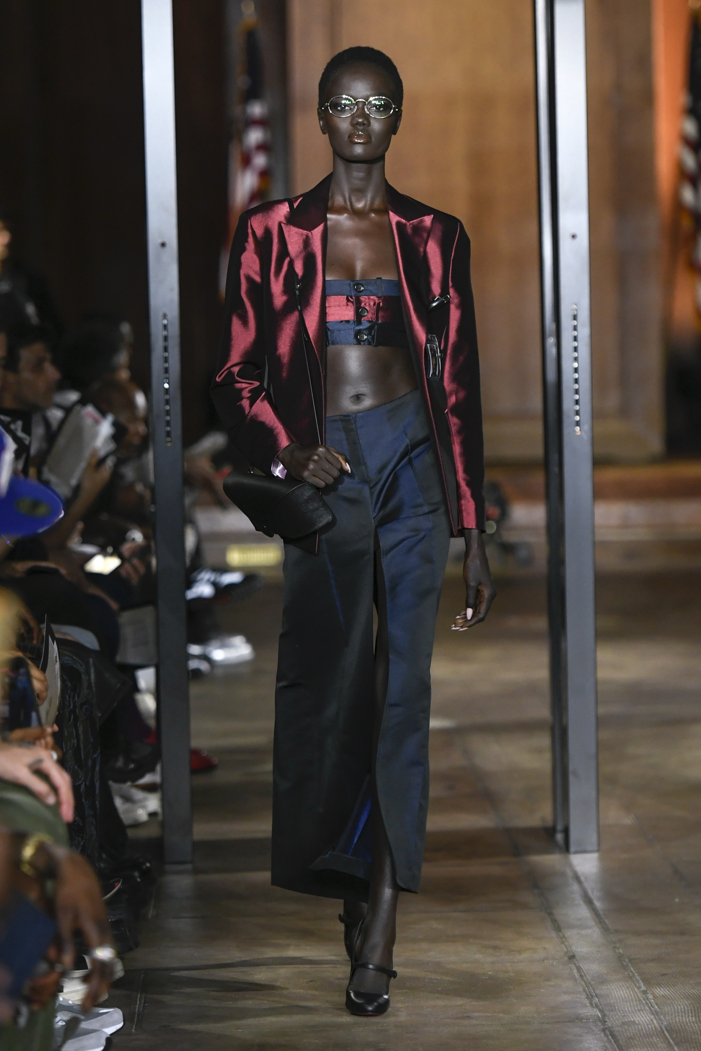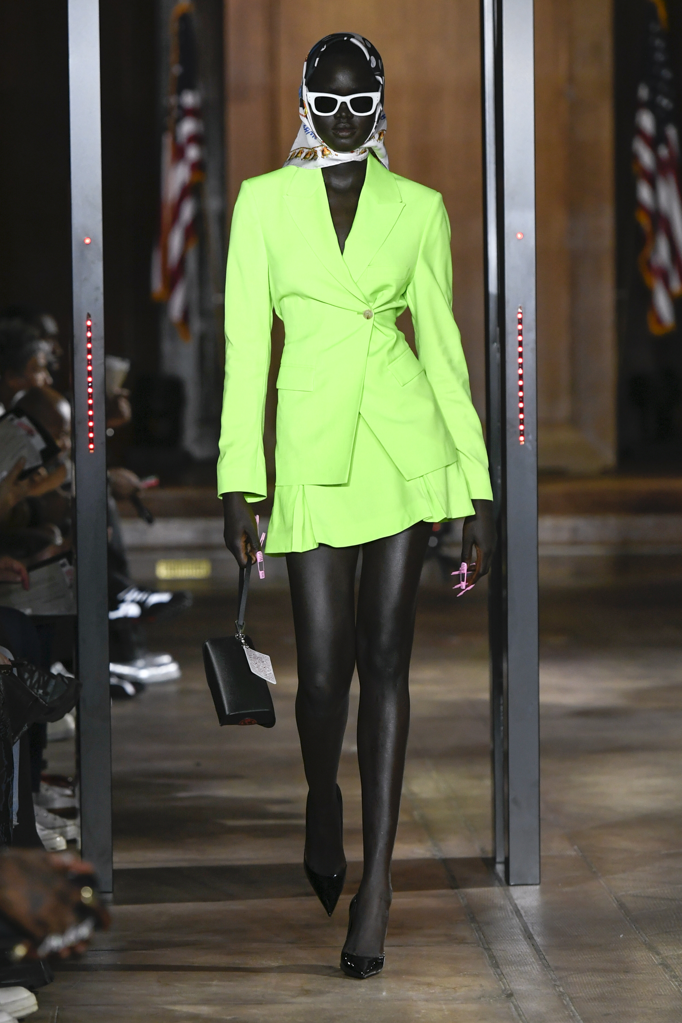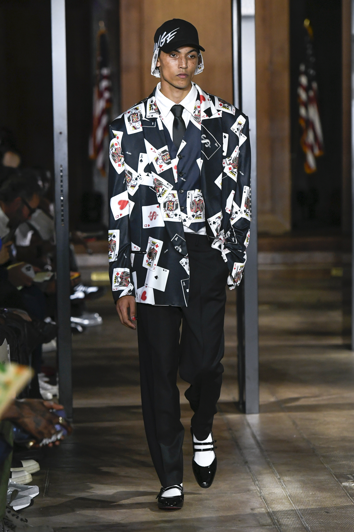 A$AP Rocky 携个人品牌 AWGE 回归家乡纽约,于市政厅旧址呈现 2026 秋季大秀。系列以「Obligatory Fashion」为主题,延续对创作过程的解构,将秀场后台搬至 T 台中央,化妆镜与等候队列成为视觉叙事的一部分。设计上模糊性别界限,融合利落剪裁、学院格纹与实用工装,并以乳胶质感、夸张比例及皮草饰边注入叛逆张力。亮点单品包括与 Puma 合作的皮质赛车外套、超大号态度包袋及皮质婴儿车,将其父亲角色与街头美学并置。秀场亦特邀蕾哈娜前排助阵,全程贯穿 Rocky 对社群、身份与日常衣着的真挚探讨。
