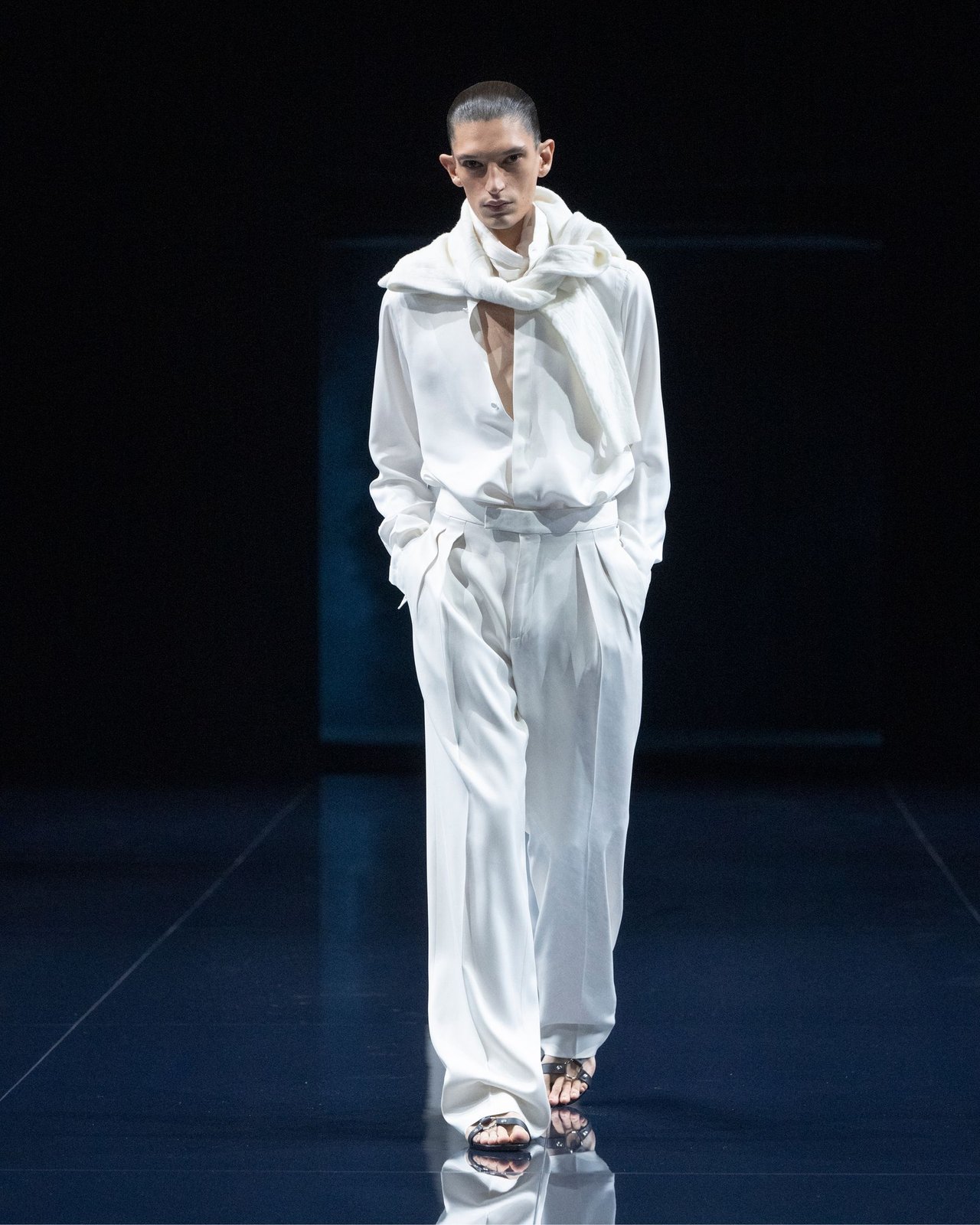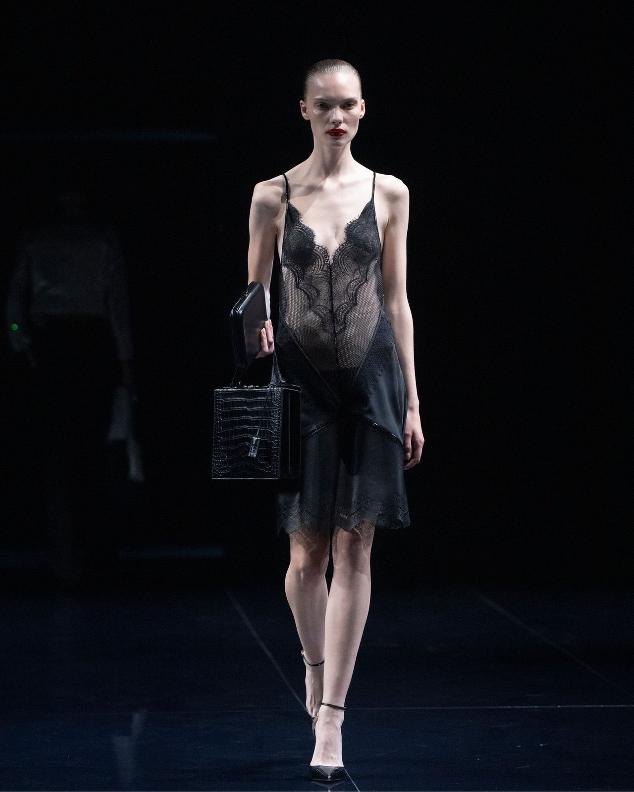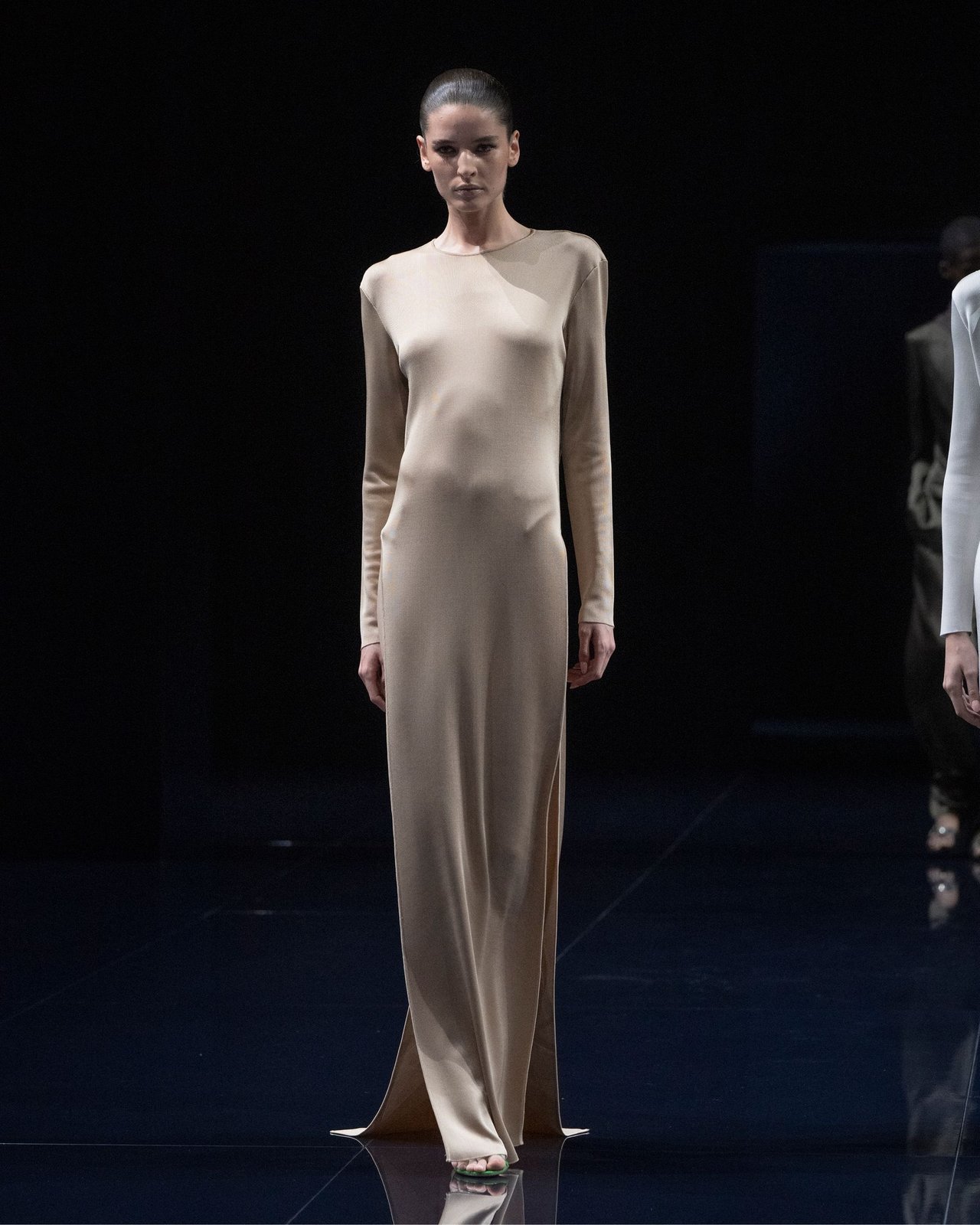 系列由创意总监 Haider Ackermann 主导设计,通过流畅而锋利的廓形、精致面料与微妙比例变化,重新书写 Tom Ford 语境下的性感定义。整体风格不再依赖直白的暴露,而是通过线条、垂坠与留白,营造出更具心理深度的吸引力,呈现一种内敛却极具力量的当代感官语言。