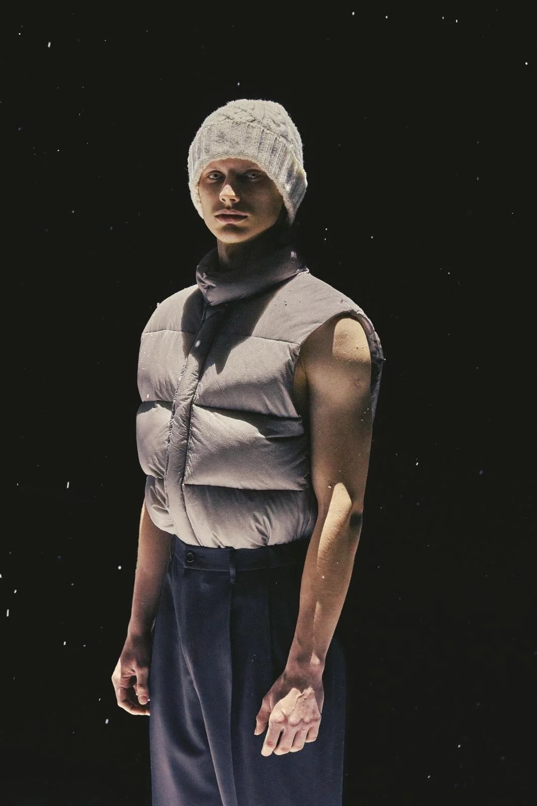 N.HOOLYWOOD 旗下的子品牌 N.HOOLYWOOD COMPILE 最新推出了 2026 秋冬系列。设计师尾花大辅将目光聚焦于格陵兰岛、冰岛和芬兰的极寒和荒凉地貌,并将这种感觉转化为一个以羽绒背心、夹克和派克大衣为主的服饰系列。在名为「N.Hoolywood Compile」的虚拟展示中,这位设计师展示了厚实的羽绒服、超大号绞花毛衣、各种面料的夹克以及用天然和合成纤维拼接设计的针织衫,其中许多单品都是专门为这一季开发的。