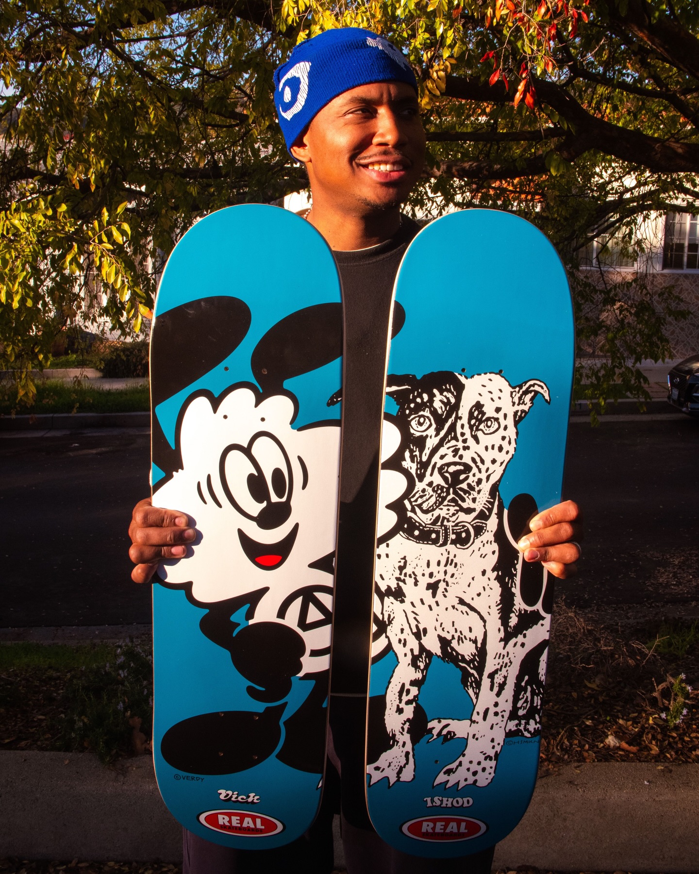 REAL SKATEBOARDS 携手艺术家 Verdy 推出全新联名系列,专为滑板店铺量身打造。系列以经典 REAL Oval 滑板为蓝本,由滑手 Ishod Wair 参与设计两款签名款,分别致敬其爱犬 Valentine 与 Verdy 标志性角色 Vick。签名款采用「双联画」设计,并排时可拼合成完整画作。该系列旨在传递滑板店日的精神。该系列是 Verdy 首次专为滑板渠道创作的限定作品,延续去年合作款迅速售罄的热度。据悉全系列将于 2 月 21 日起在实体店及线上同步发售。