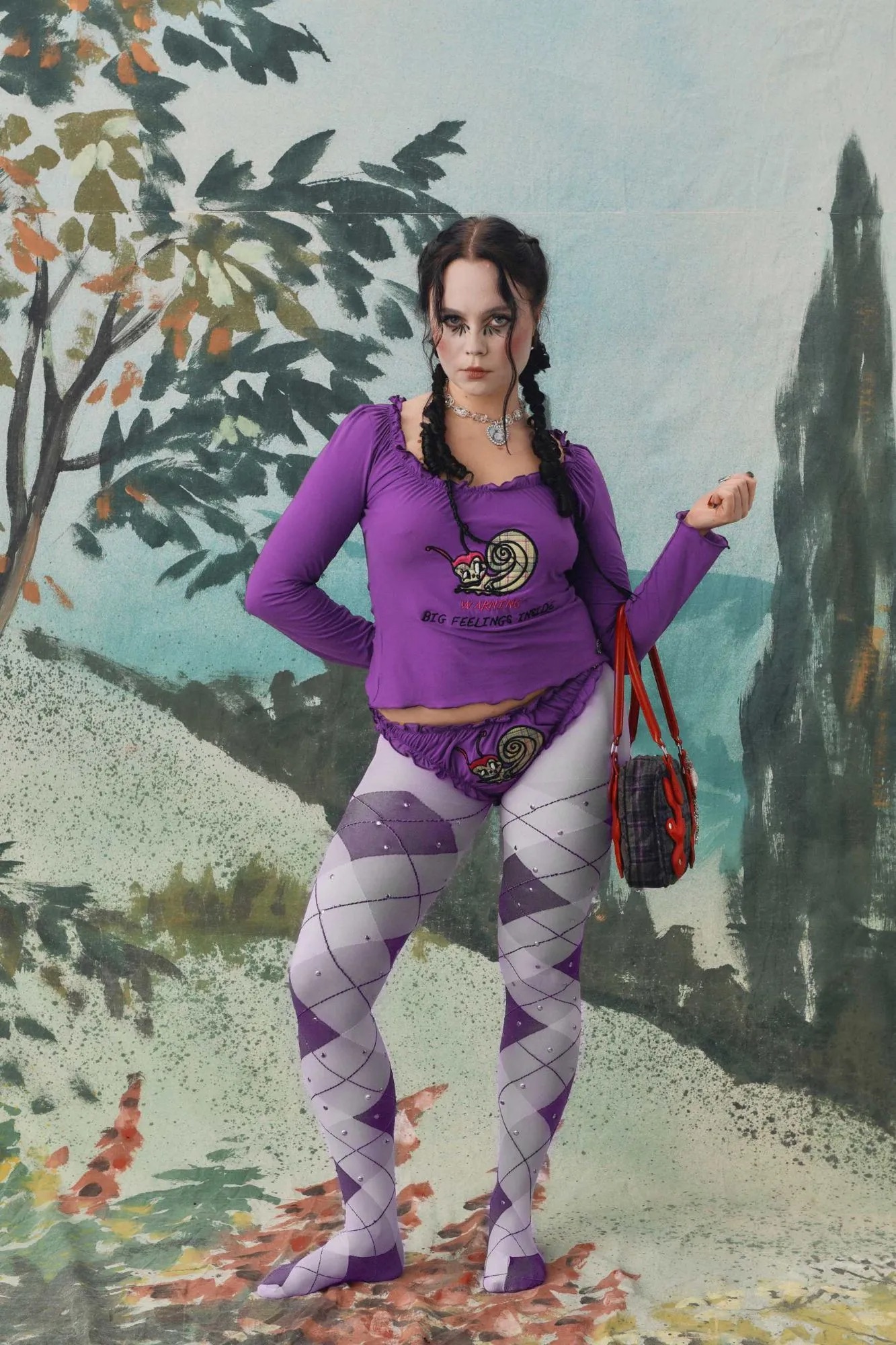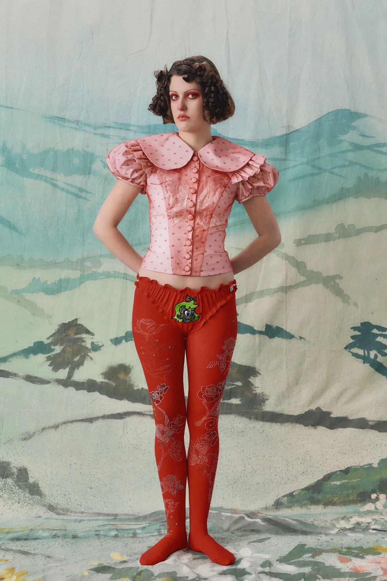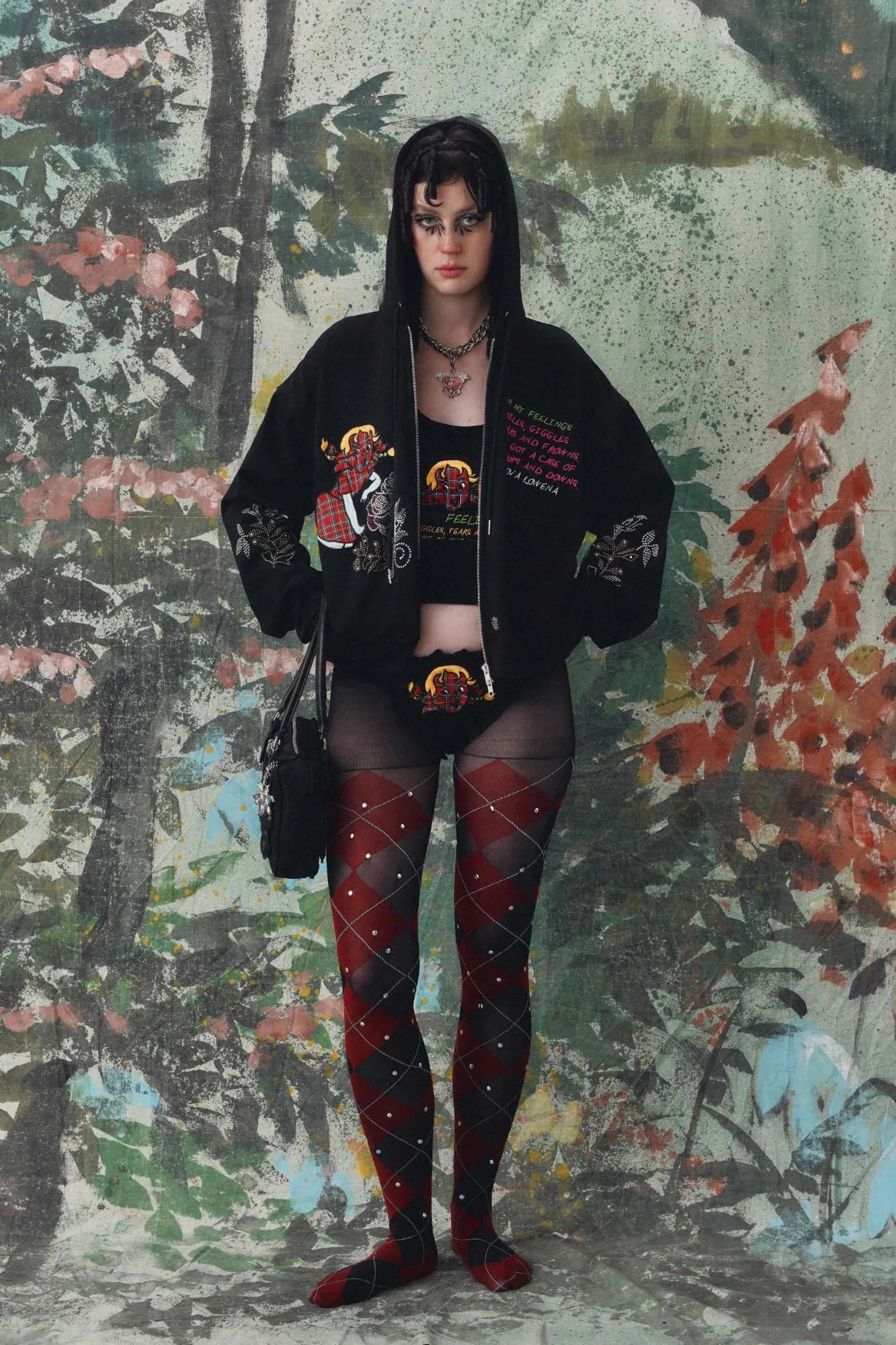 本季还推出了两大特殊项目:一是设计师们对品牌库存面料进行了升级改造;其次是推出了全天候穿着的贴身内衣系列「Chopova Lowena Feelings」——包括配套的 T 恤和运动套装。
