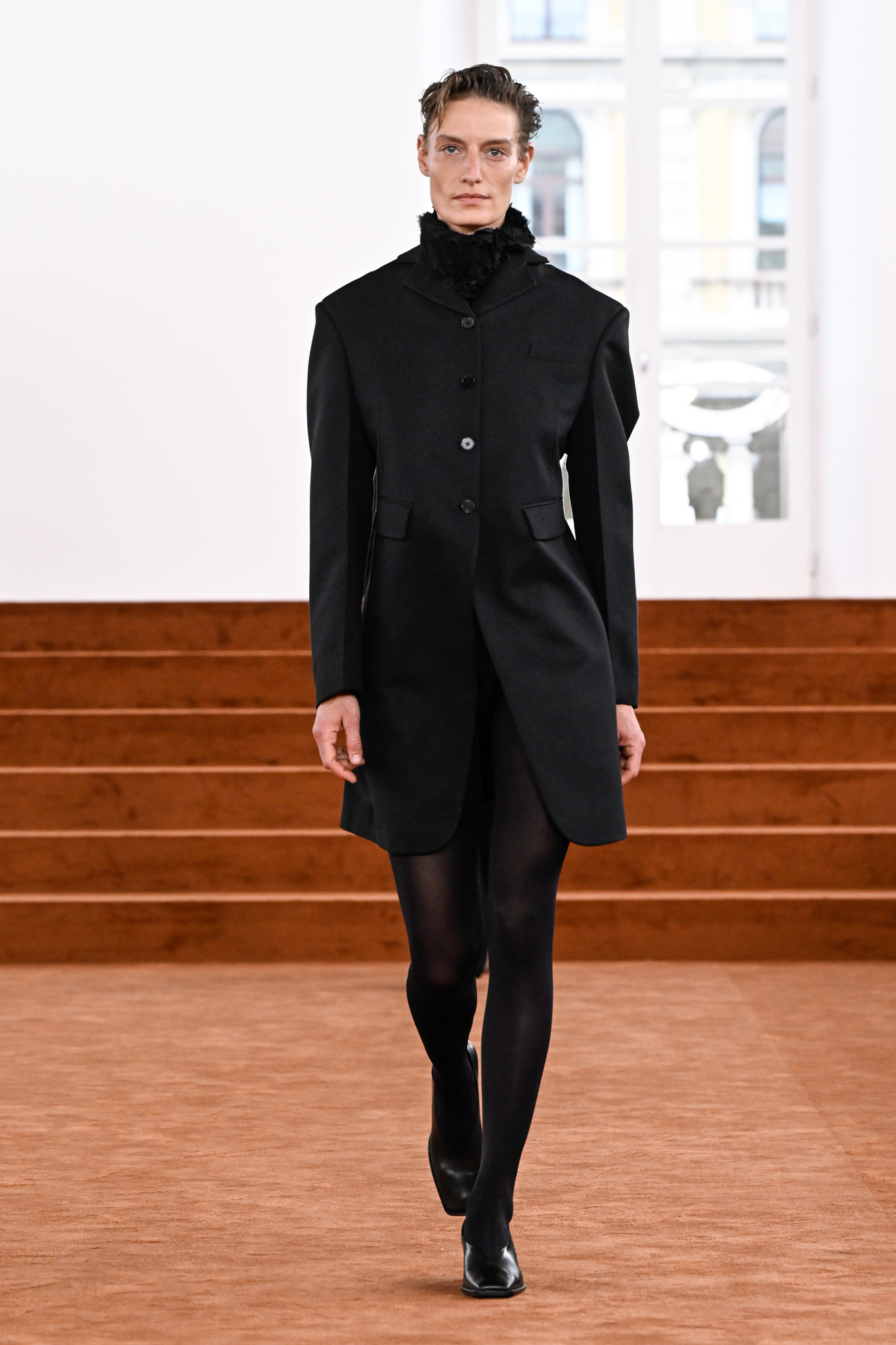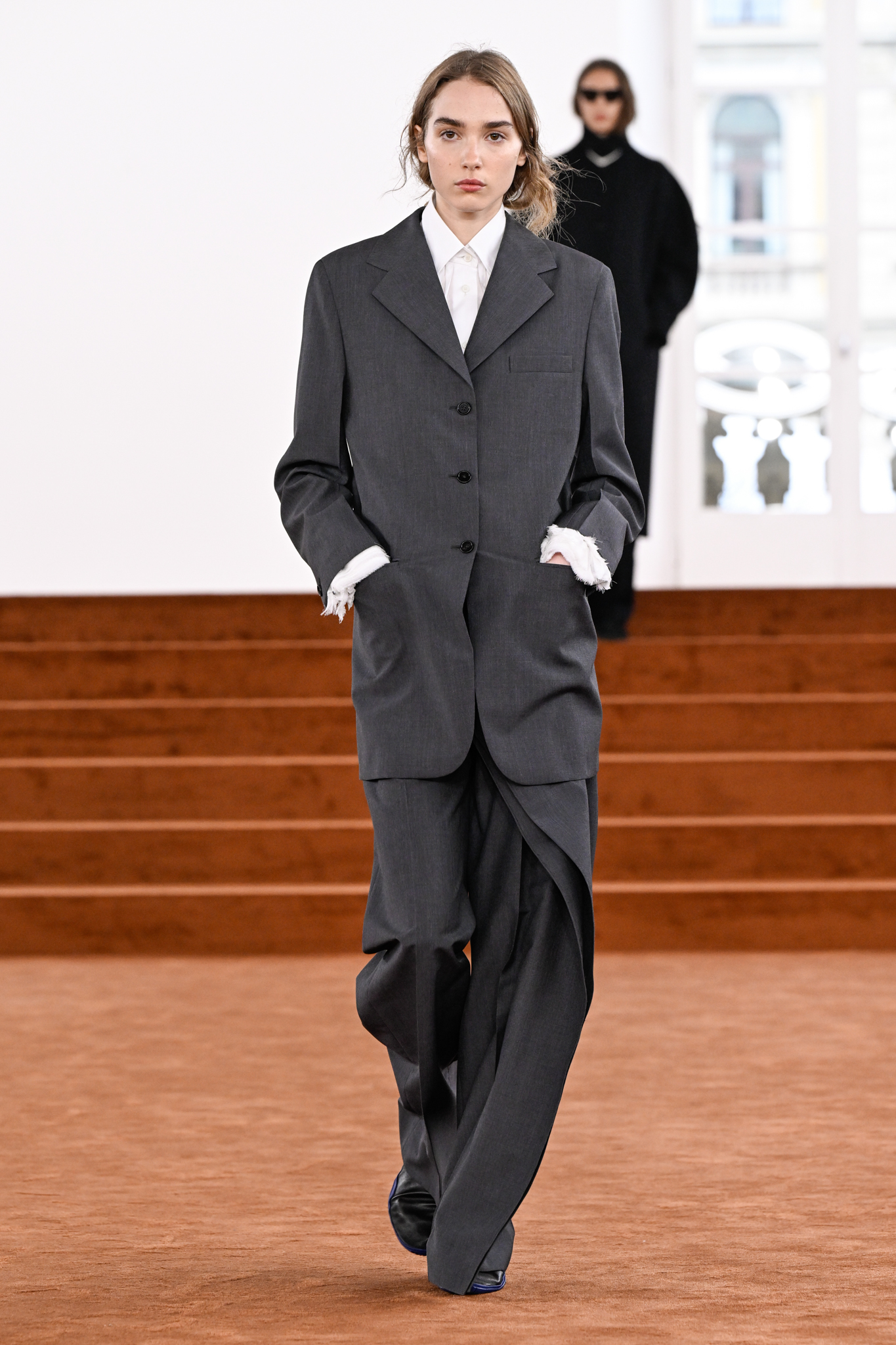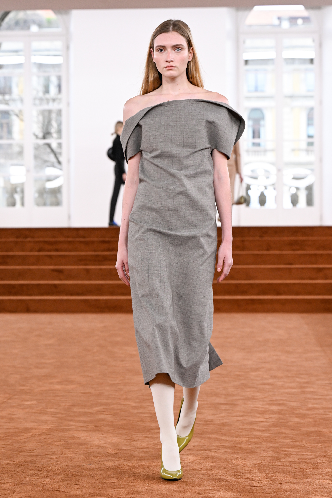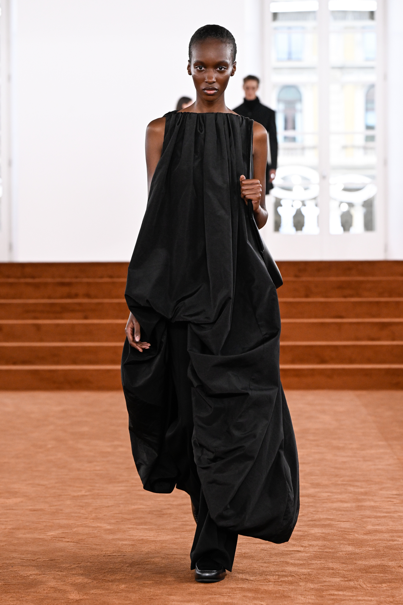 秀前播放的诗歌中青少年逃离家园,成为离家出走者,经历了大城市的危险与疏离,最终回到家。而这种「逃离」也在本季裙装和连衣裙的面料流动与设计中得到了体现,腰部折叠、开衩设计、S 型接缝和泡泡裙下摆等元素,均营造了「逃离」与「回归」的氛围。在这两者之间的家族传统中,Bellotti 正在构建一个包含矛盾的新 JIL SANDER,并让其在这些矛盾中逐渐成为品牌更具本质的表现。