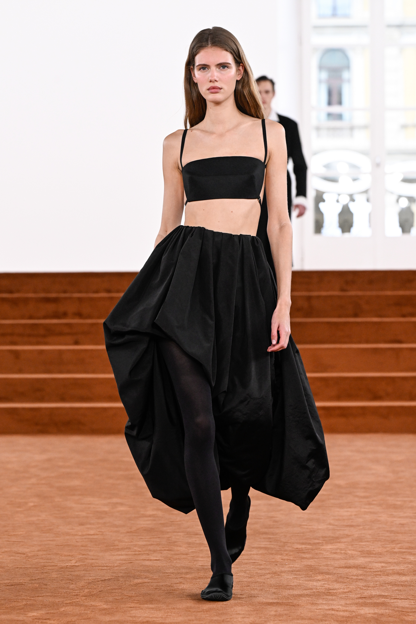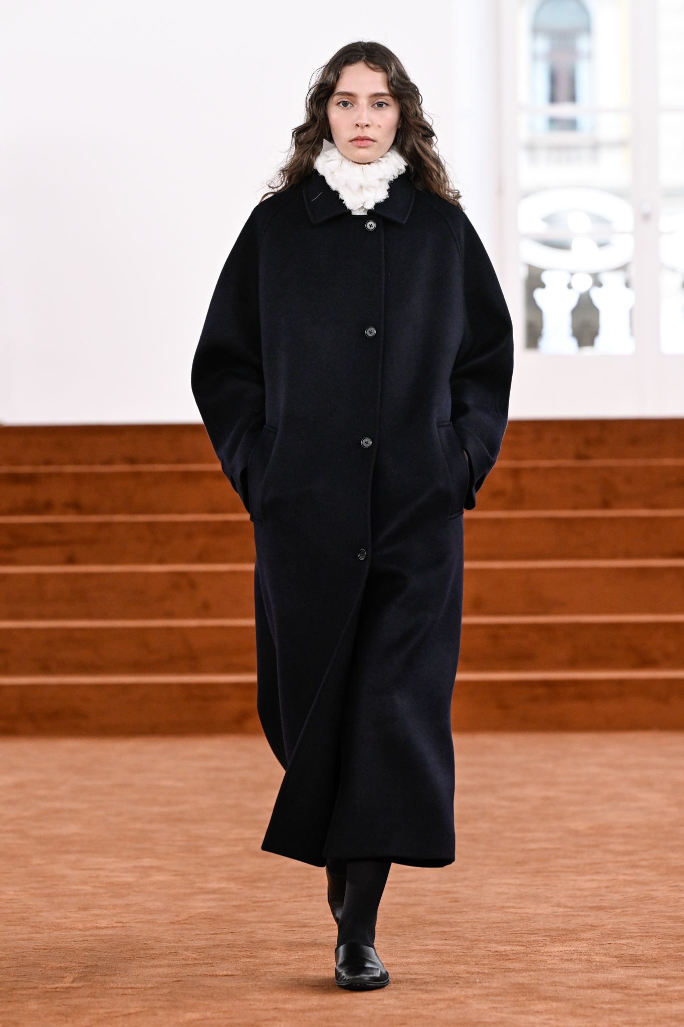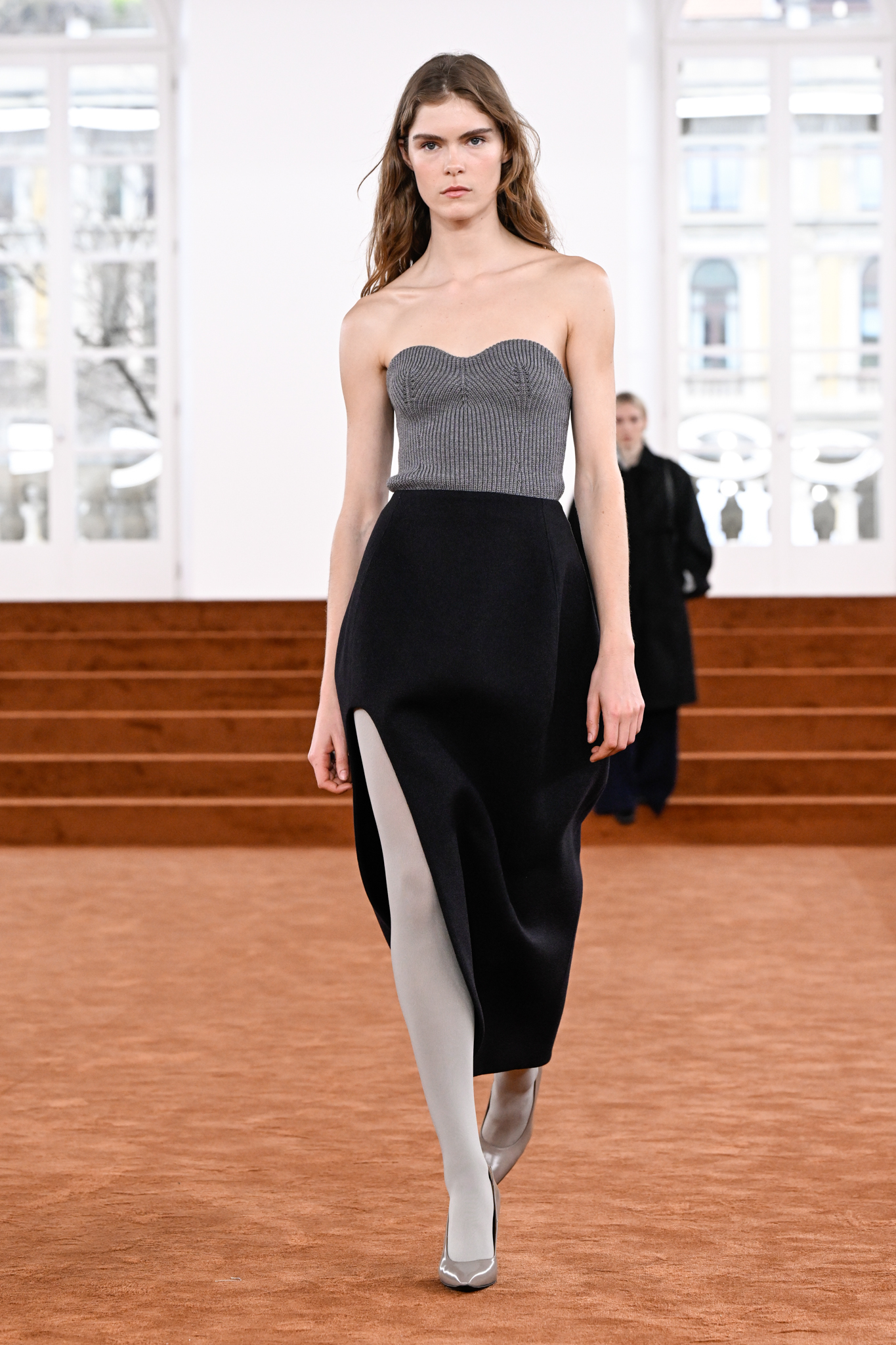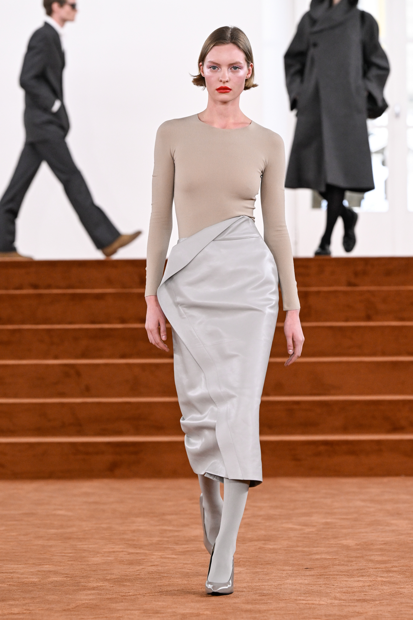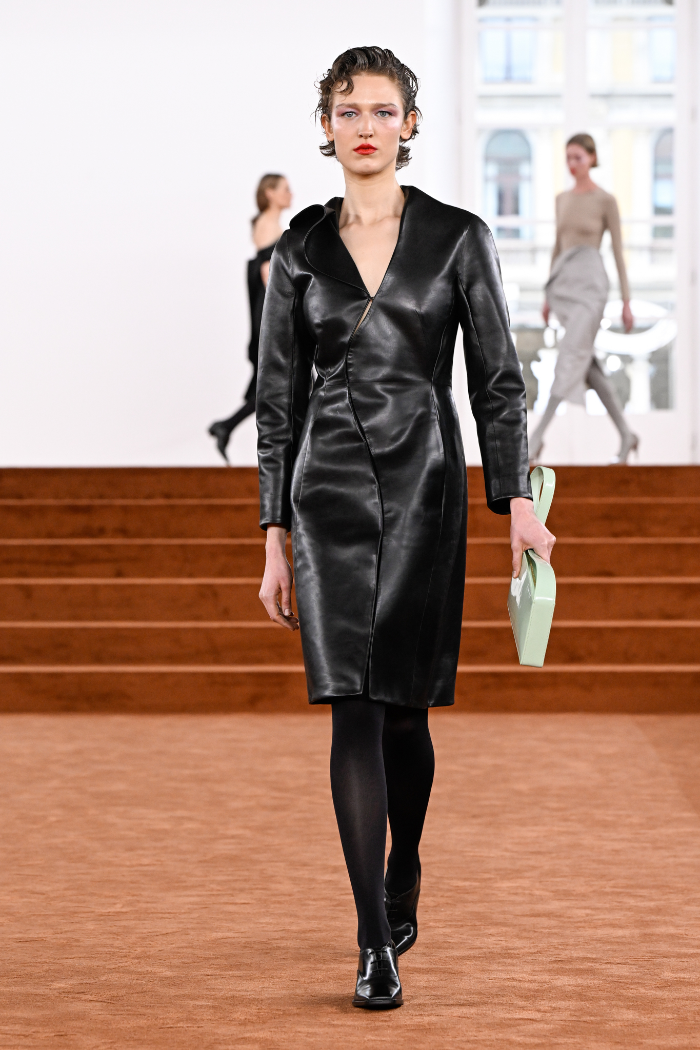 秀前播放的诗歌中青少年逃离家园,成为离家出走者,经历了大城市的危险与疏离,最终回到家。而这种「逃离」也在本季裙装和连衣裙的面料流动与设计中得到了体现,腰部折叠、开衩设计、S 型接缝和泡泡裙下摆等元素,均营造了「逃离」与「回归」的氛围。在这两者之间的家族传统中,Bellotti 正在构建一个包含矛盾的新 JIL SANDER,并让其在这些矛盾中逐渐成为品牌更具本质的表现。