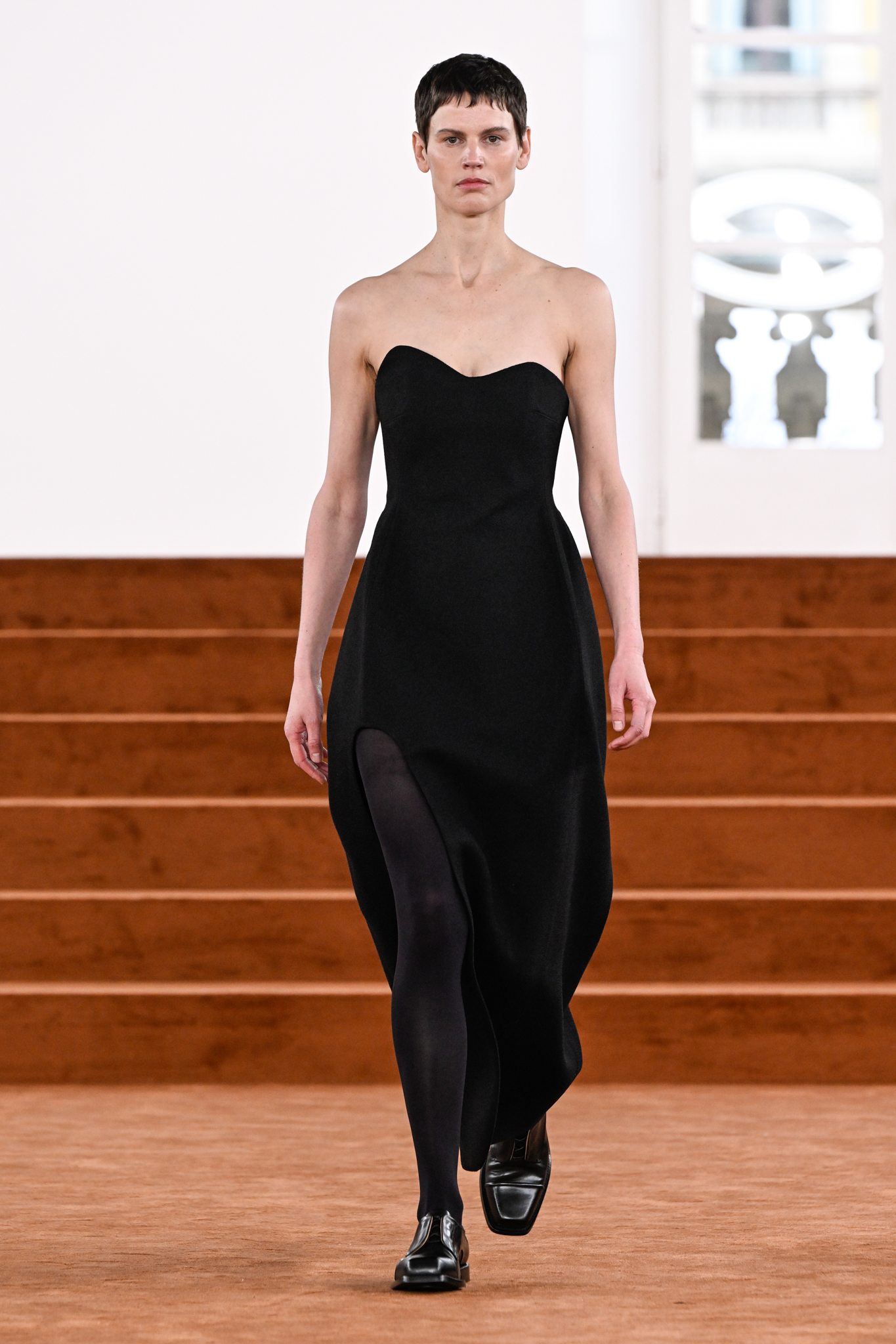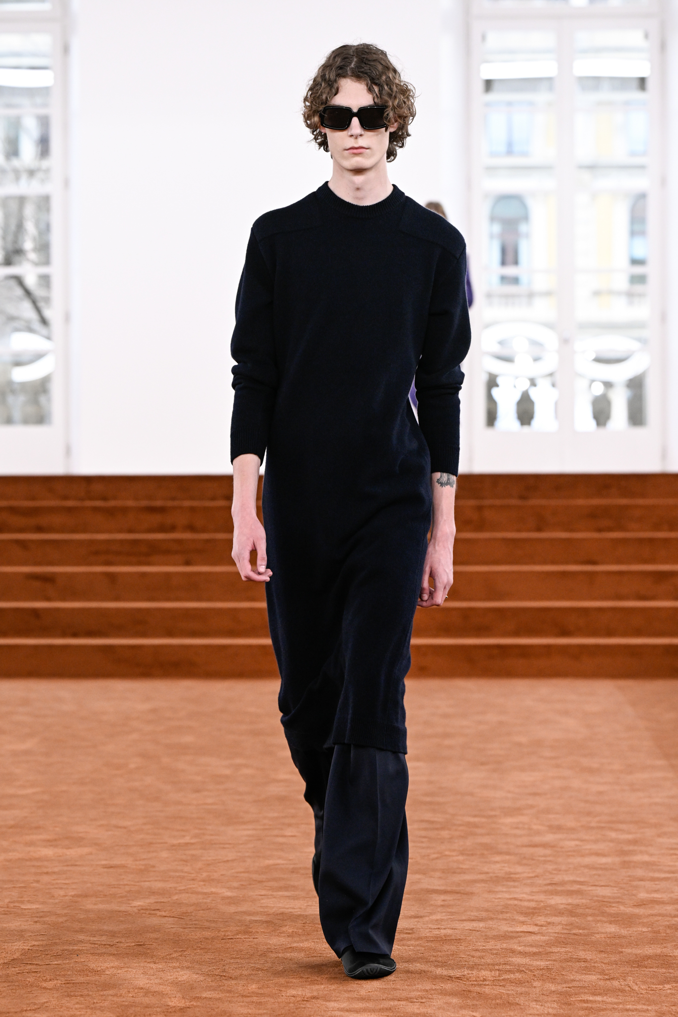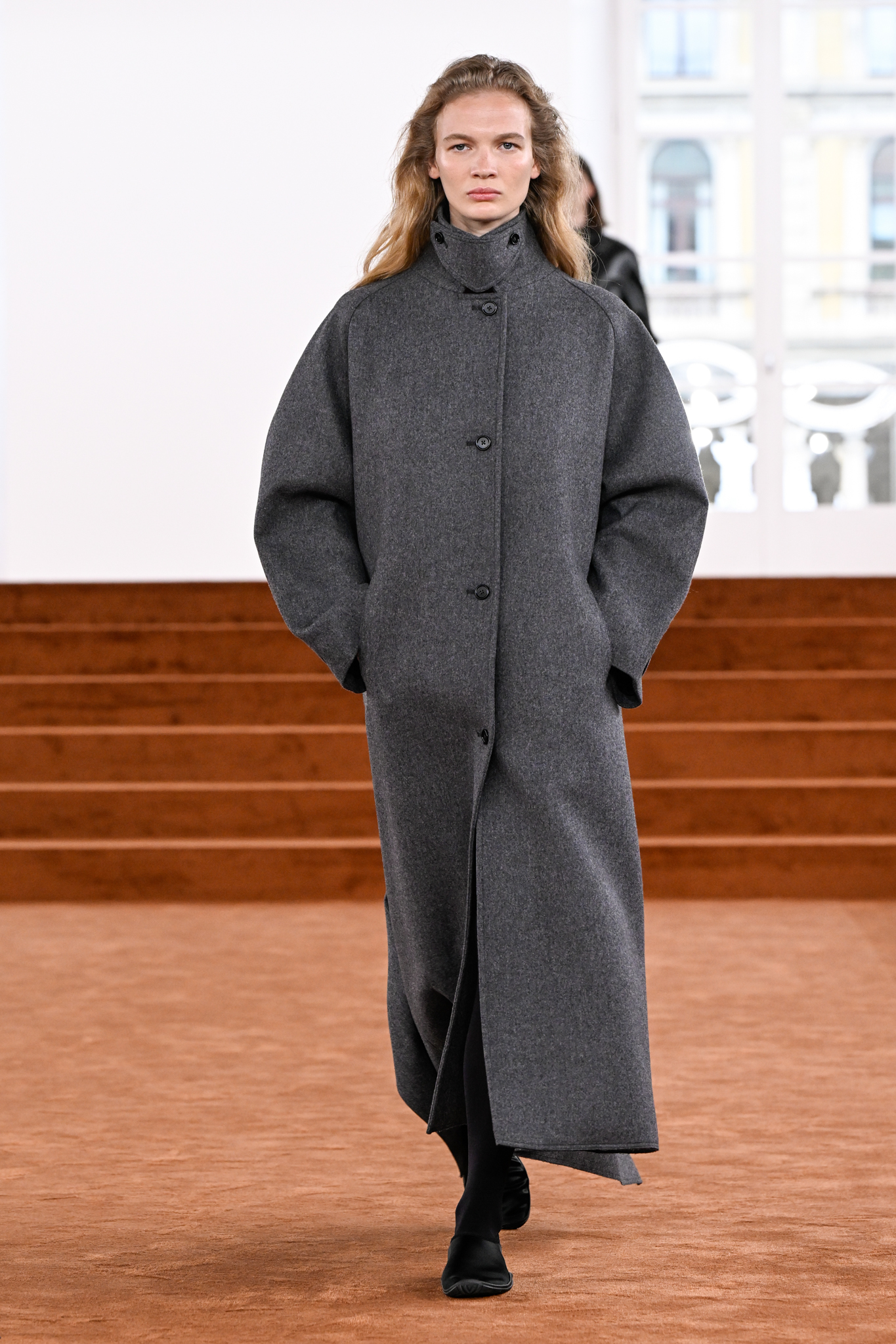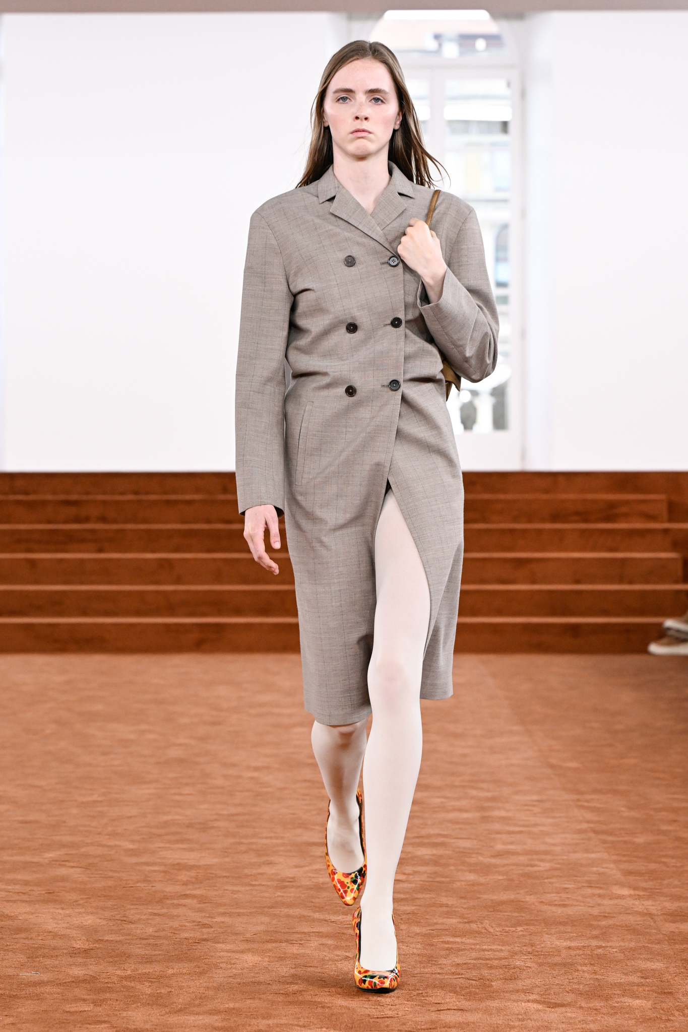 秀前播放的诗歌中青少年逃离家园,成为离家出走者,经历了大城市的危险与疏离,最终回到家。而这种「逃离」也在本季裙装和连衣裙的面料流动与设计中得到了体现,腰部折叠、开衩设计、S 型接缝和泡泡裙下摆等元素,均营造了「逃离」与「回归」的氛围。在这两者之间的家族传统中,Bellotti 正在构建一个包含矛盾的新 JIL SANDER,并让其在这些矛盾中逐渐成为品牌更具本质的表现。