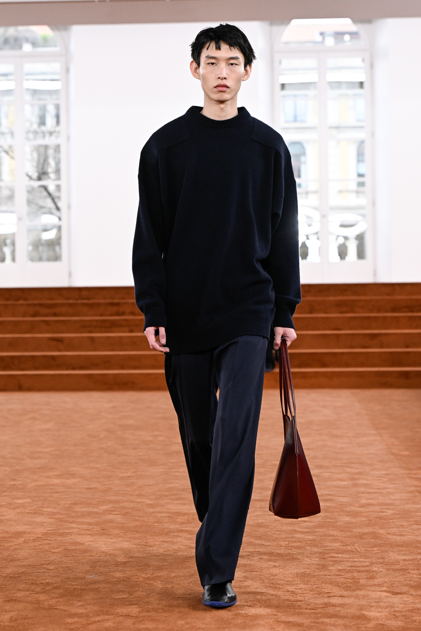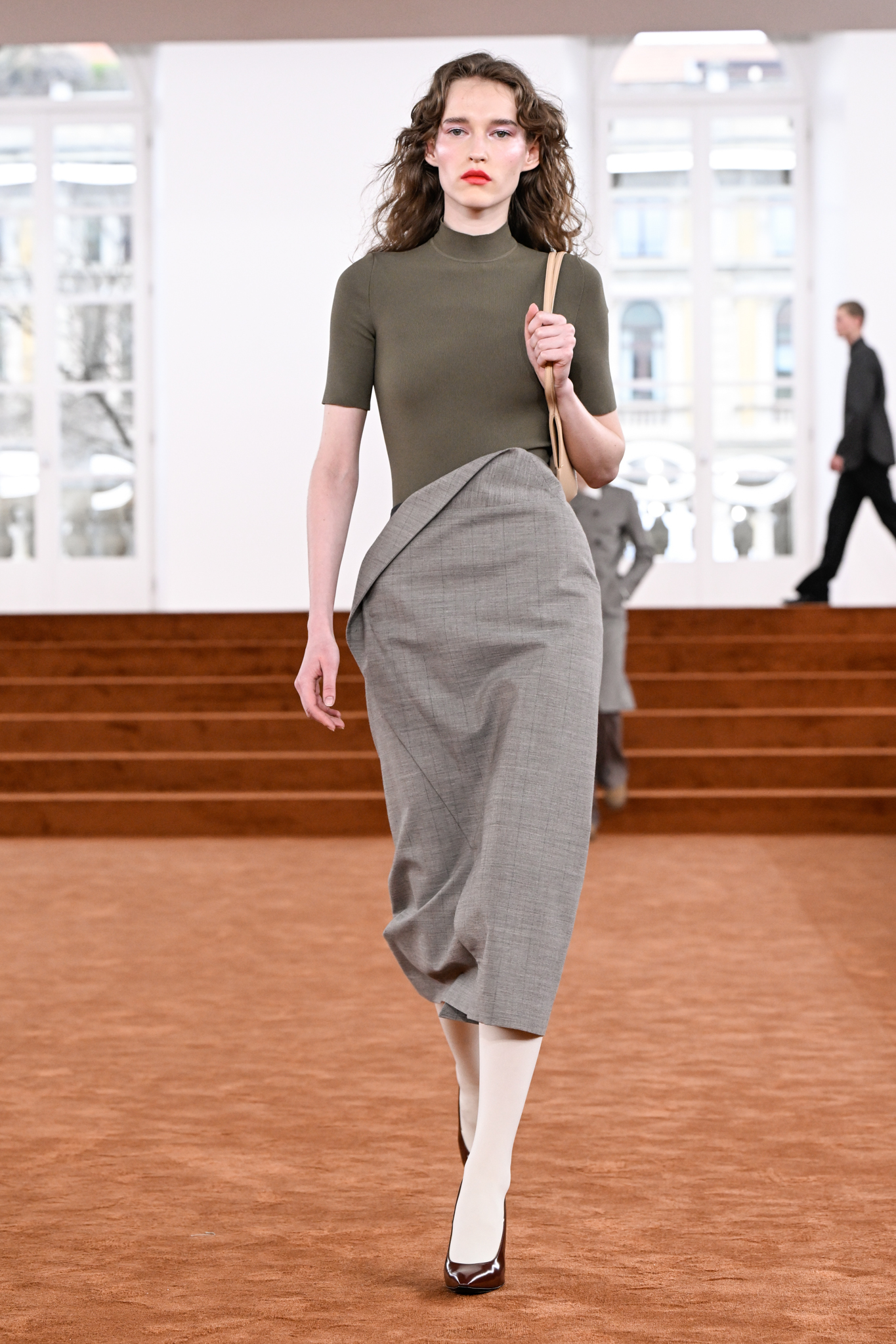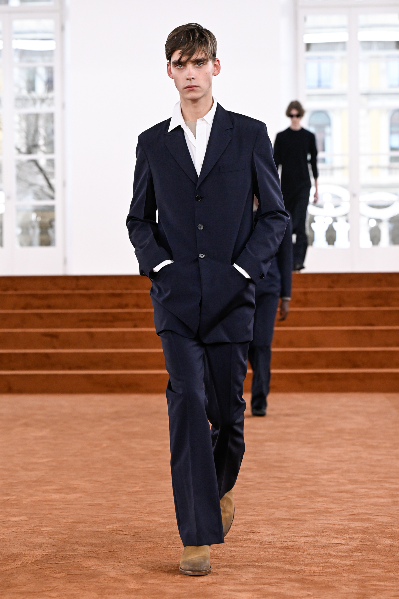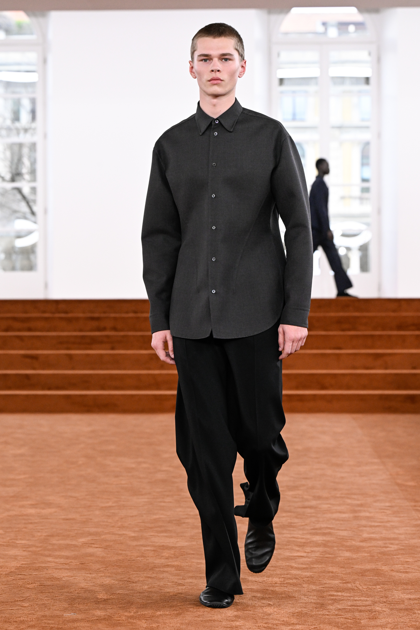 JIL SANDER 在创意总监 Simone Bellotti 的领导下继续进行调整。在他的第二季的设计中,自信地面对了既要遵守品牌传统,又要实现革新的双重压力。然而,他并未抛弃这些传统,而是在尝试一些过剩的元素上对其进行了微妙的颠覆。