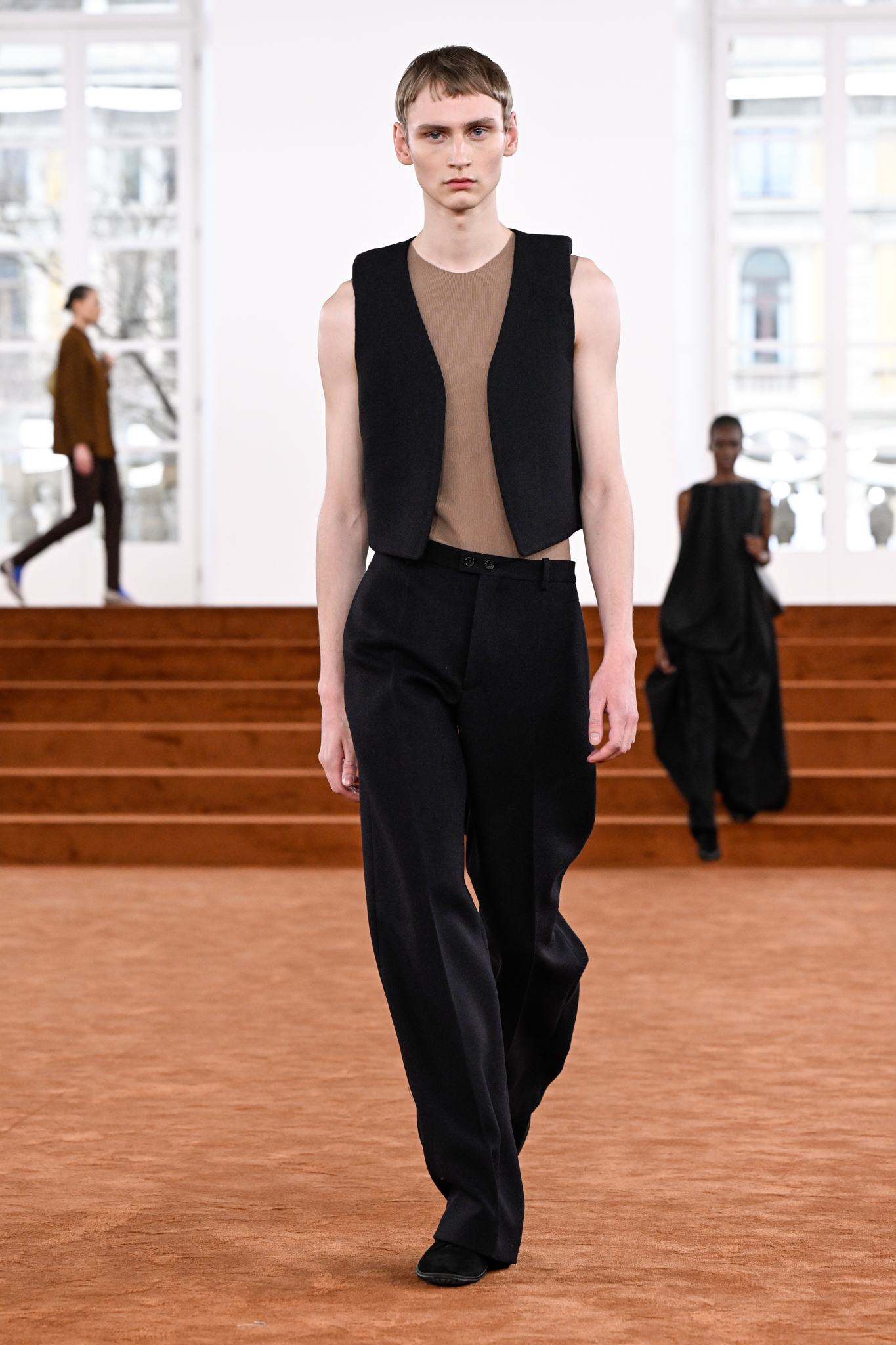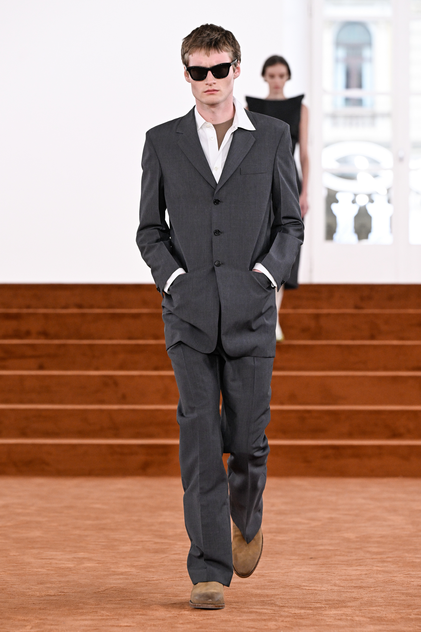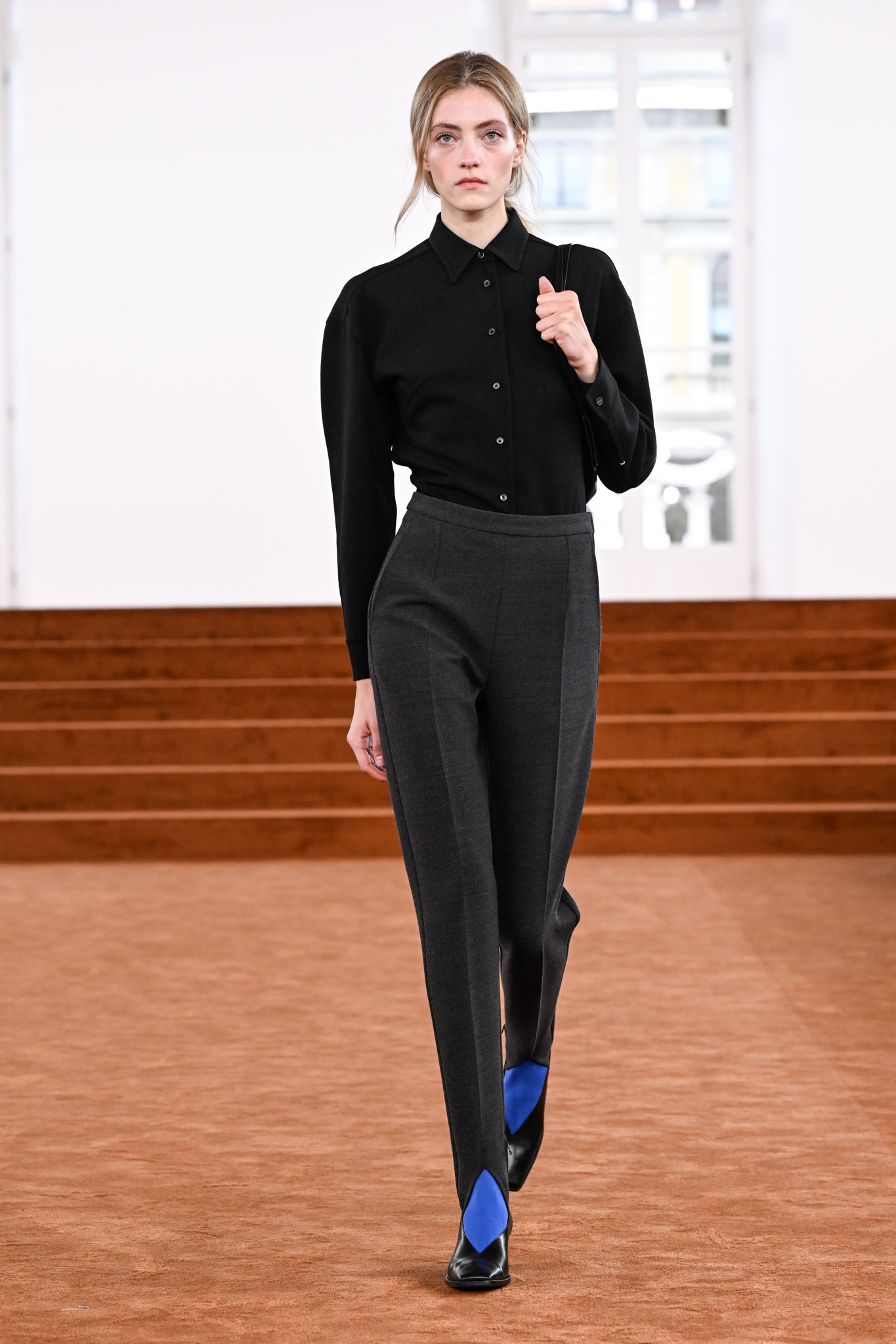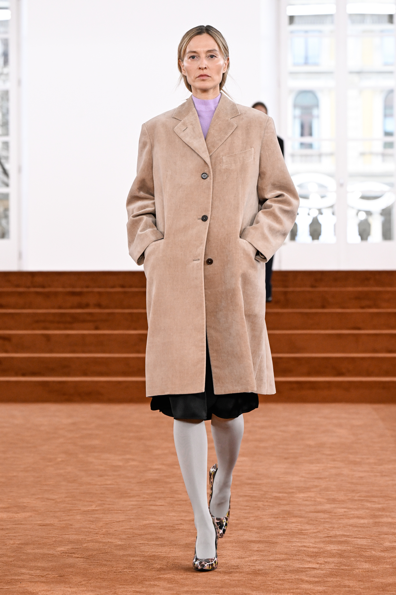 JIL SANDER 在创意总监 Simone Bellotti 的领导下继续进行调整。在他的第二季的设计中,自信地面对了既要遵守品牌传统,又要实现革新的双重压力。然而,他并未抛弃这些传统,而是在尝试一些过剩的元素上对其进行了微妙的颠覆。