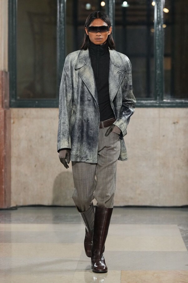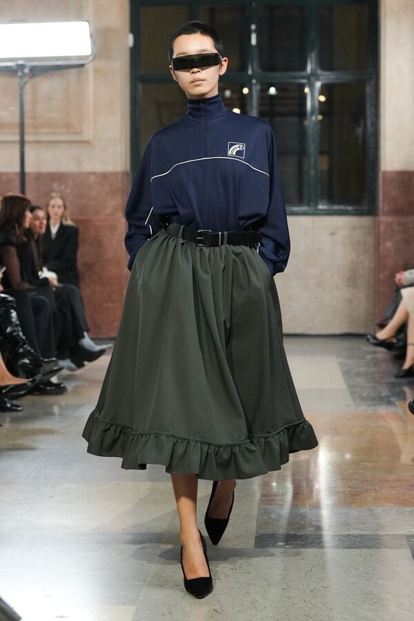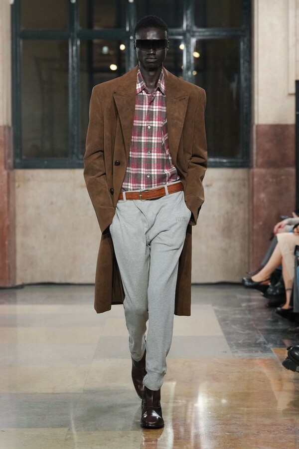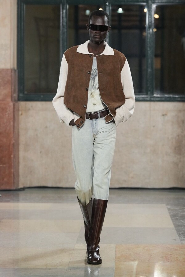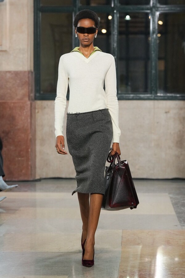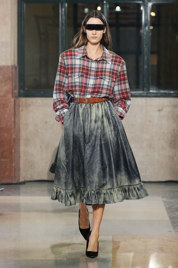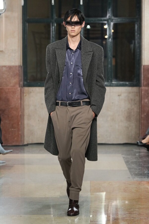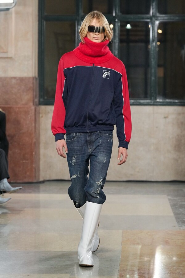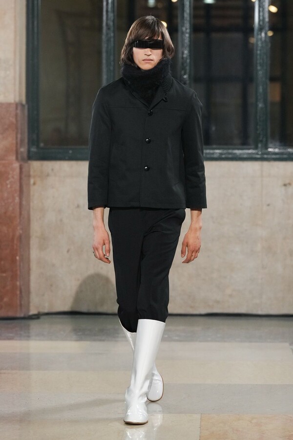 Mm6 Maison Margiela 2026 秋冬系列秀在米兰中央车站的候车室举行。这一季依旧贯彻 Martin Margiela 将寻常变为非凡的设计风格。可以看到外套下摆向上卷起并用按扣固定,以防止被自行车溅到水等日常意外弄脏;铅笔裙实际上是露背围裙,为了遮掩身材而穿在长款 T 恤外面;衬衫的缝线隐约可见原本的轭形领口。牛仔裤作为最常见的日常服装也得到了充分演绎:男款牛仔裤采用双层腰带设计,外层腰带若隐若现;女款的高腰锥形裤则重现了 20 世纪 80 年代的风格。
