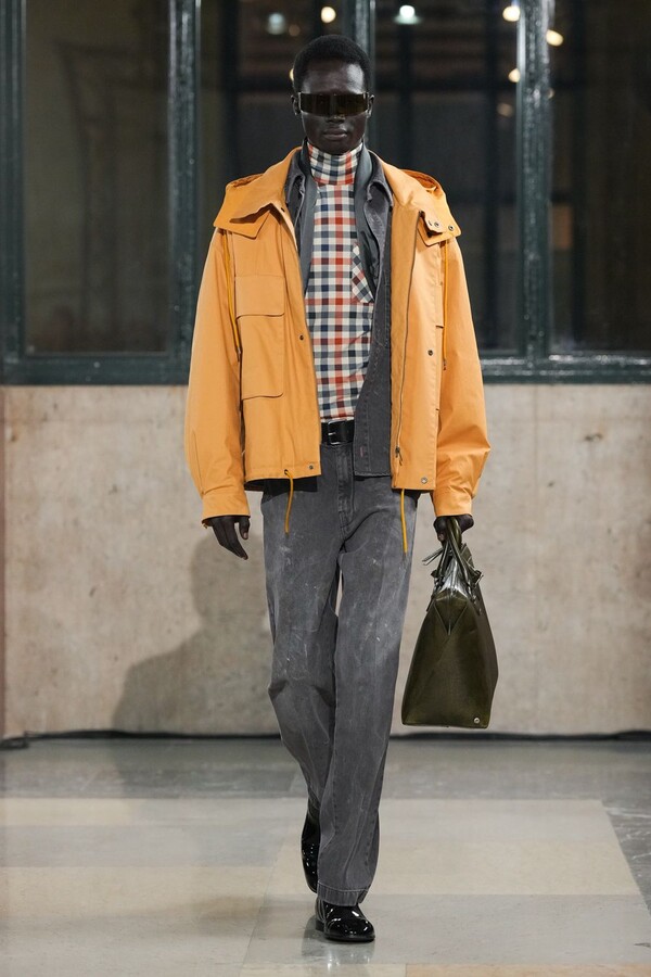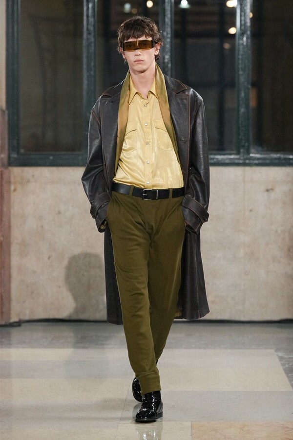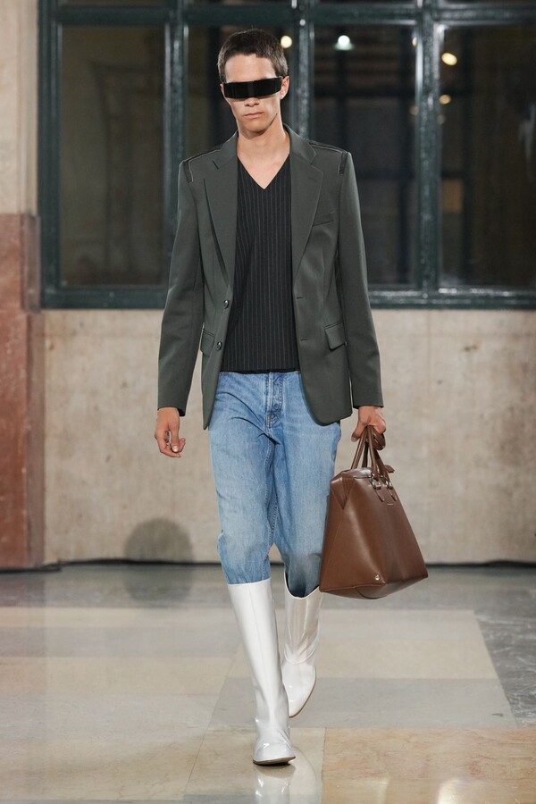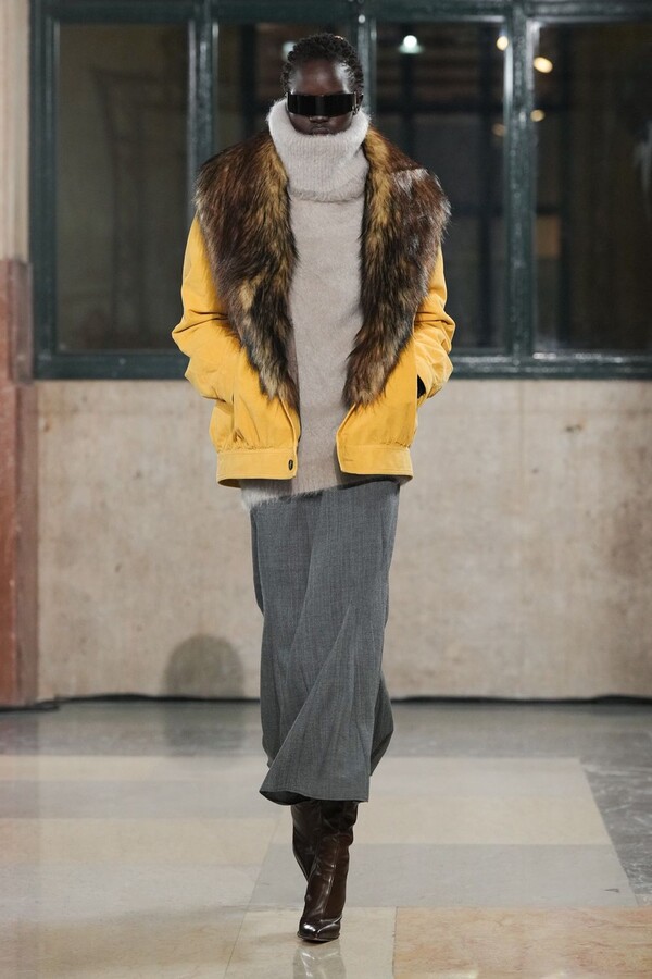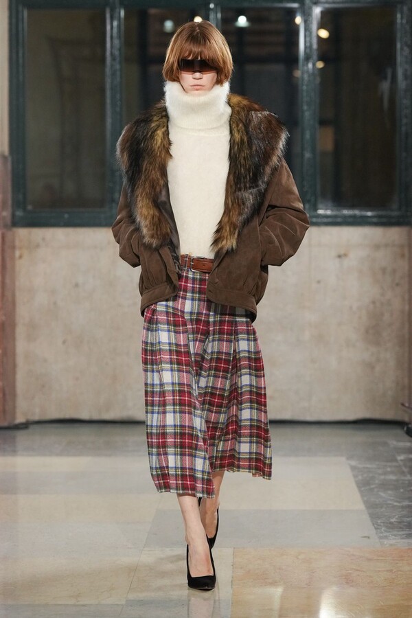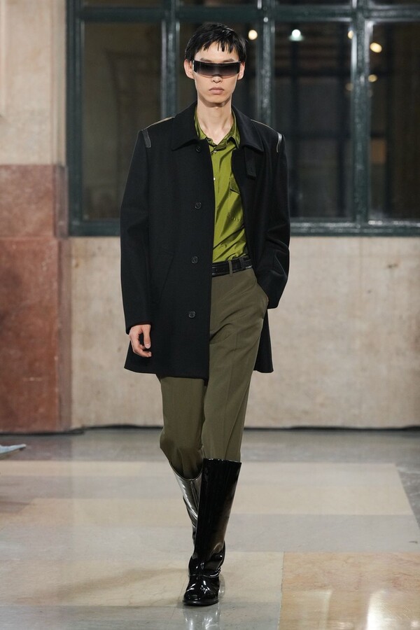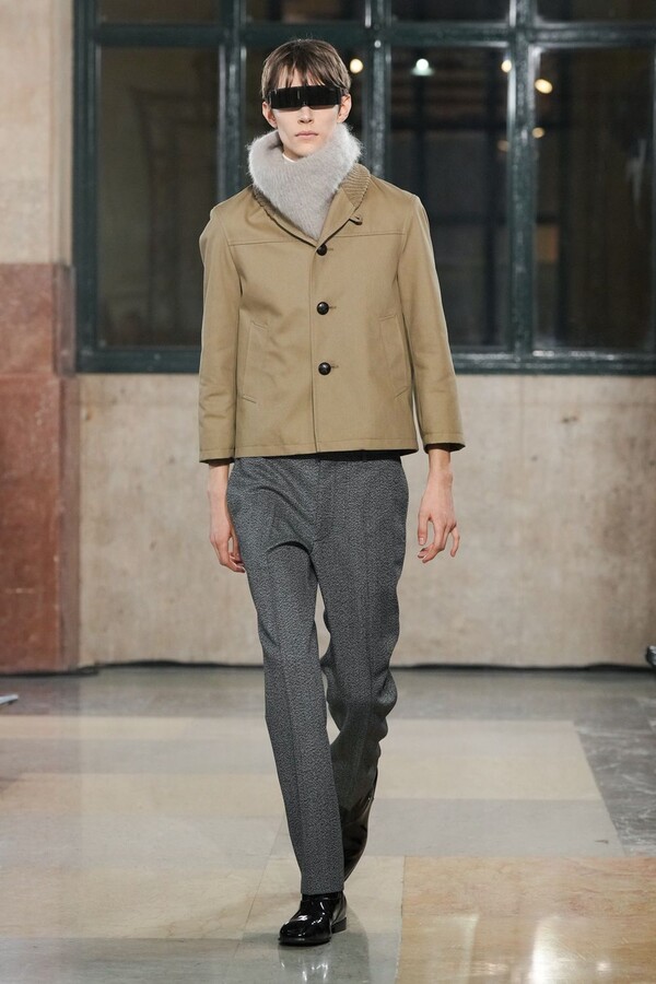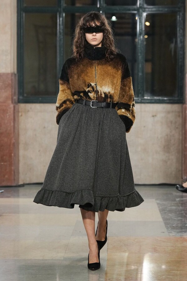 Mm6 Maison Margiela 2026 秋冬系列秀在米兰中央车站的候车室举行。这一季依旧贯彻 Martin Margiela 将寻常变为非凡的设计风格。可以看到外套下摆向上卷起并用按扣固定,以防止被自行车溅到水等日常意外弄脏;铅笔裙实际上是露背围裙,为了遮掩身材而穿在长款 T 恤外面;衬衫的缝线隐约可见原本的轭形领口。牛仔裤作为最常见的日常服装也得到了充分演绎:男款牛仔裤采用双层腰带设计,外层腰带若隐若现;女款的高腰锥形裤则重现了 20 世纪 80 年代的风格。