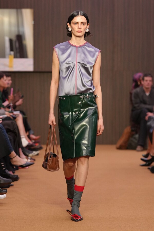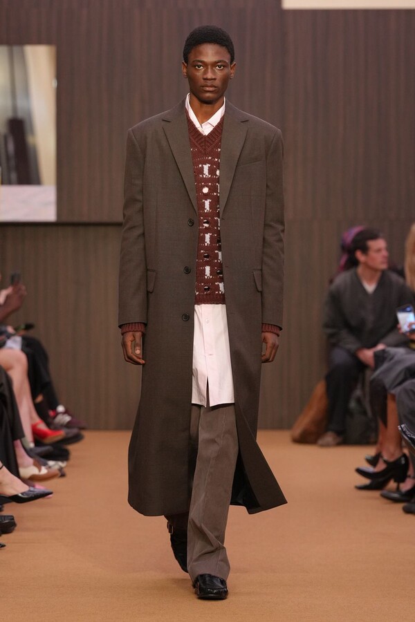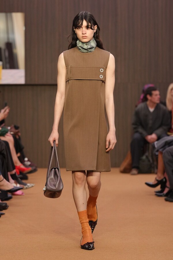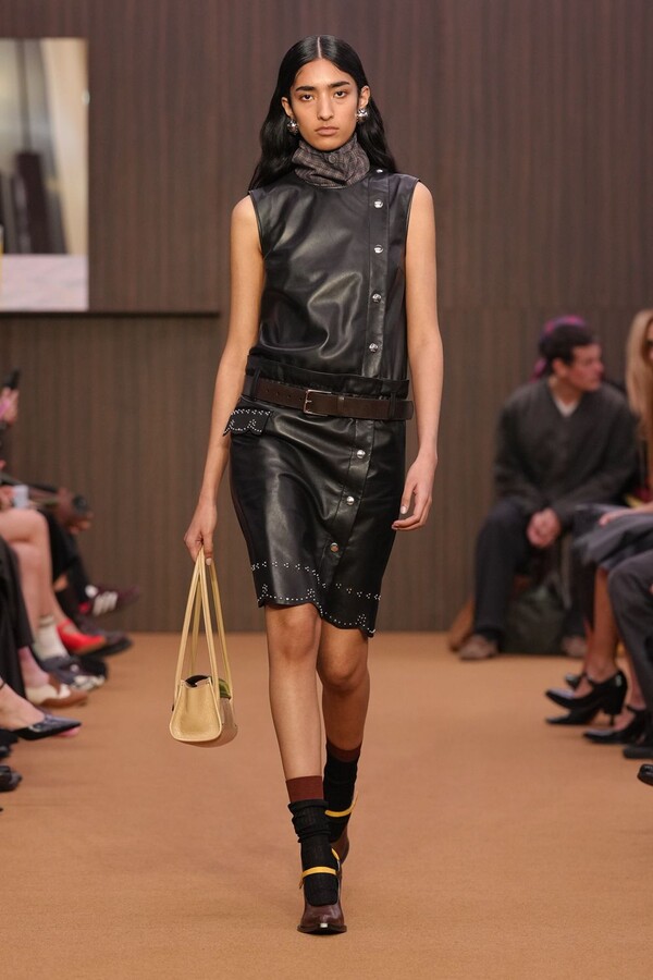 Marni 在新任创意总监 Meryll Rogge 的带领下开启了新的篇章。这位比利时设计师自青少年时便是 Marni 的忠实拥趸,在 2026 秋冬系列中,她深入挖掘了 Marni 最早的系列——始于 1993 年的极简主义风格。彼时没有印花、装饰和多余的点缀,只有材质的完整性和雕塑般的简洁线条。这种克制导致本季以黑色和柔和的色调为主,色彩运用极为节制,只用柔和的粉彩色调或醒目的亮色加以点缀。