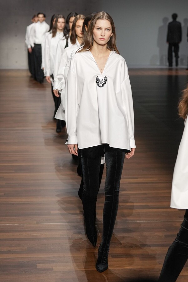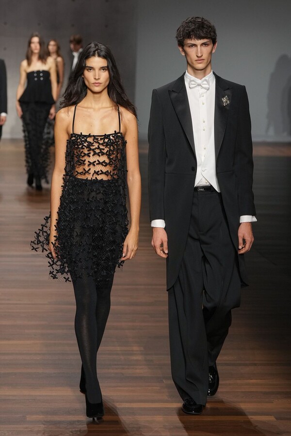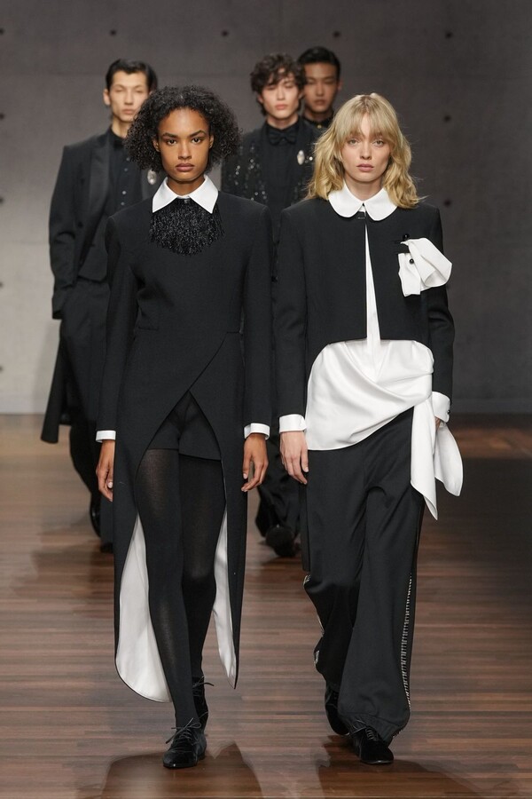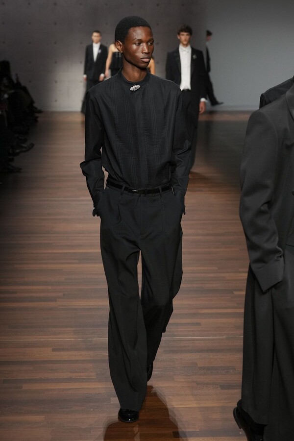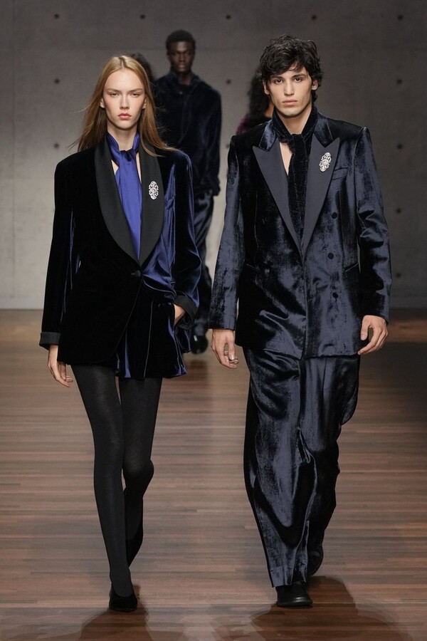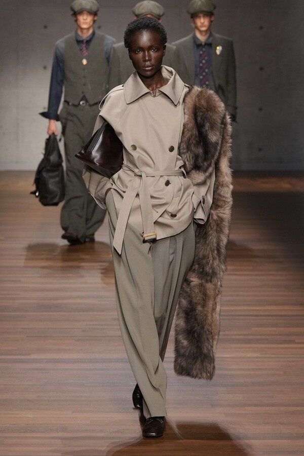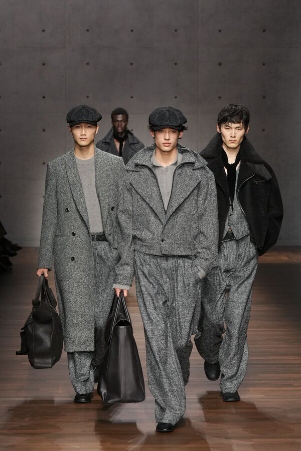 Emporio Armani 2026 秋冬系列由 Giorgio Armani 的创意继承人——Silvana Armani 和 Leo Dell’Orco 两位设计师操刀,呈现了一场气势恢宏、男女皆宜的时尚盛宴。本季外套占据主导地位,从流畅柔和的剪裁西装外套到厚实的羊毛飞行员夹克,各种款式应有尽有。大衣、风衣、浴袍式外套、羊毛外套——每一种廓形都专为现实中的气候和场景打造。清爽的白色晚礼服衬衫配以圆领、尖领或蝴蝶结领,在剪裁之下更添浪漫气息。