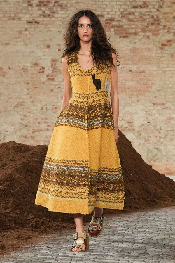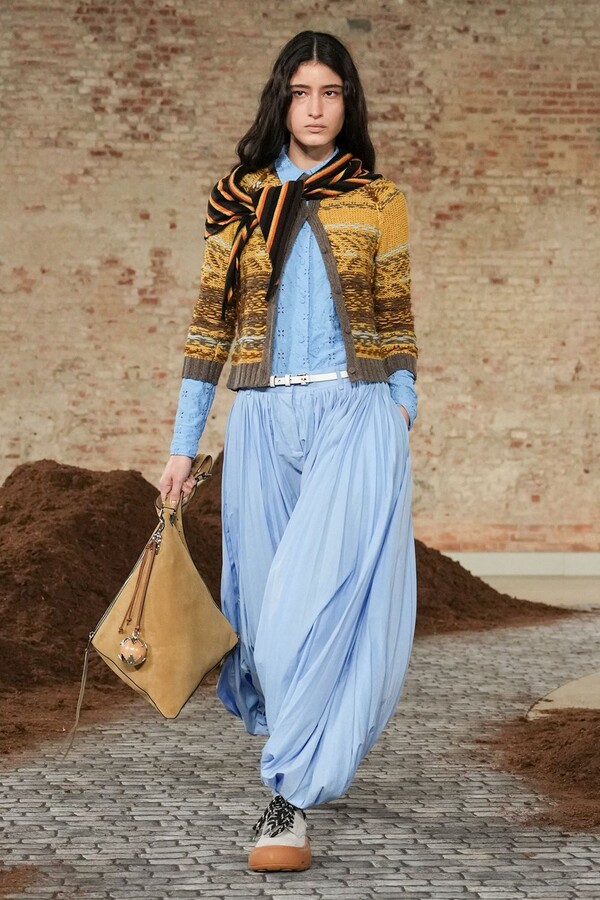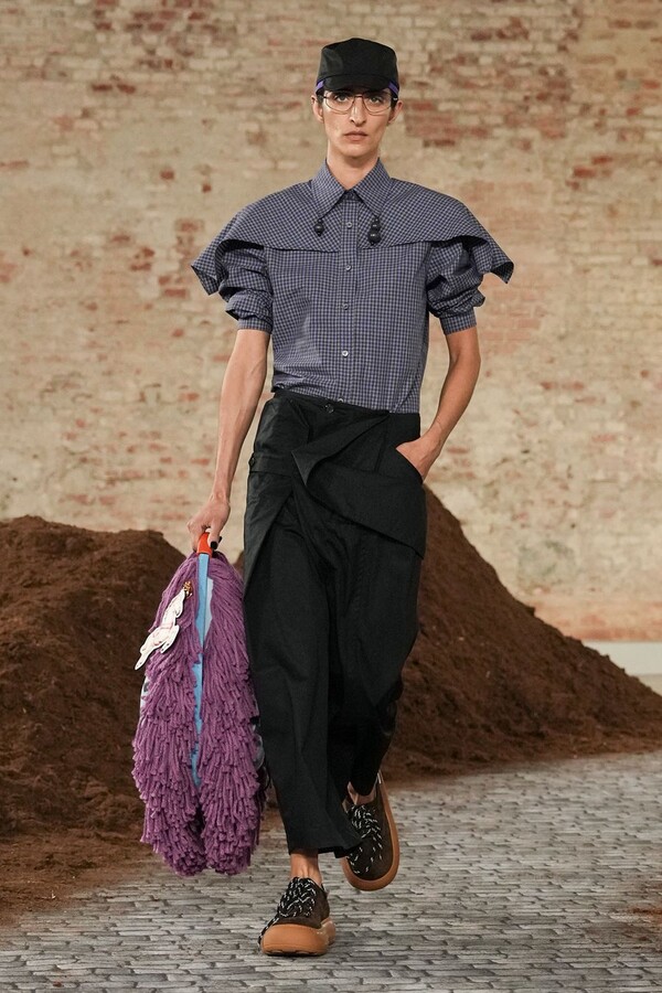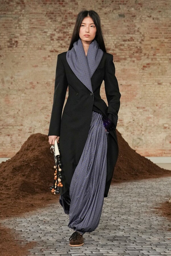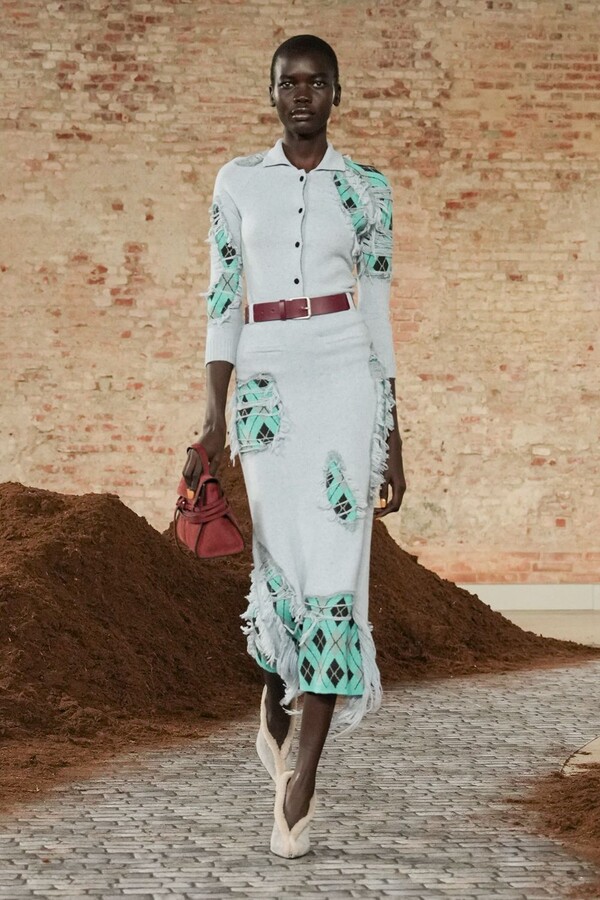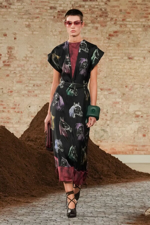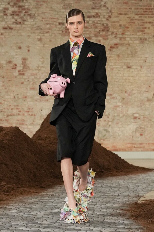 设计游走于服饰本身与批判之间。适合跳探戈的连衣裙充满戏剧张力;带有高乔风格的服饰则致敬田园浪漫主义;足球图案则注入了大众化的活力。配饰——尤其是新奇的包袋承载着丰富的概念性,有时甚至比服装本身更具决定性意义。