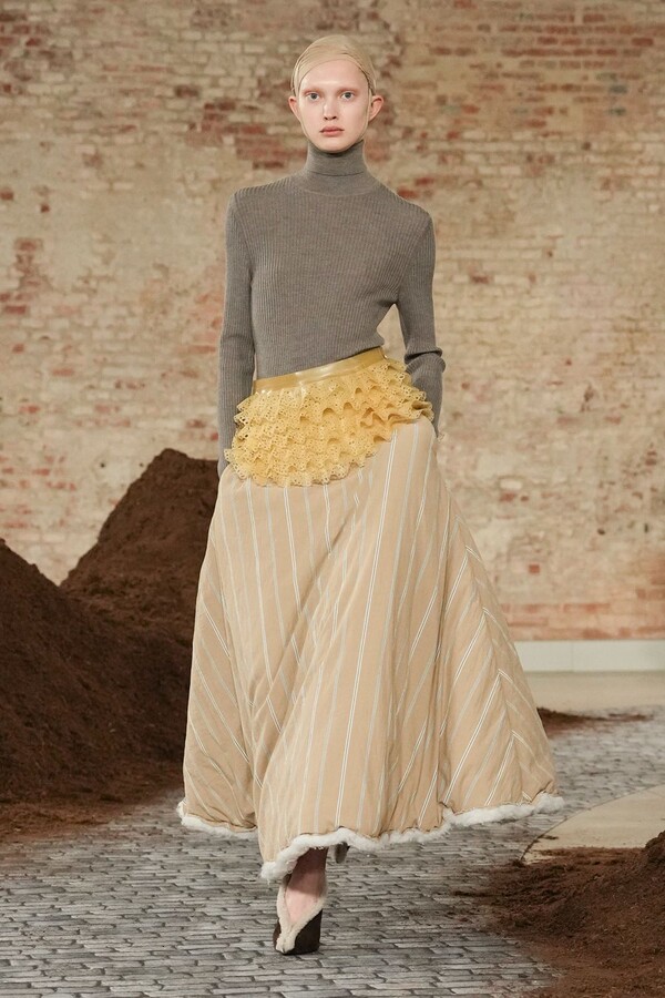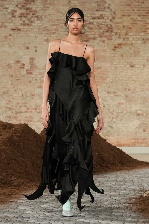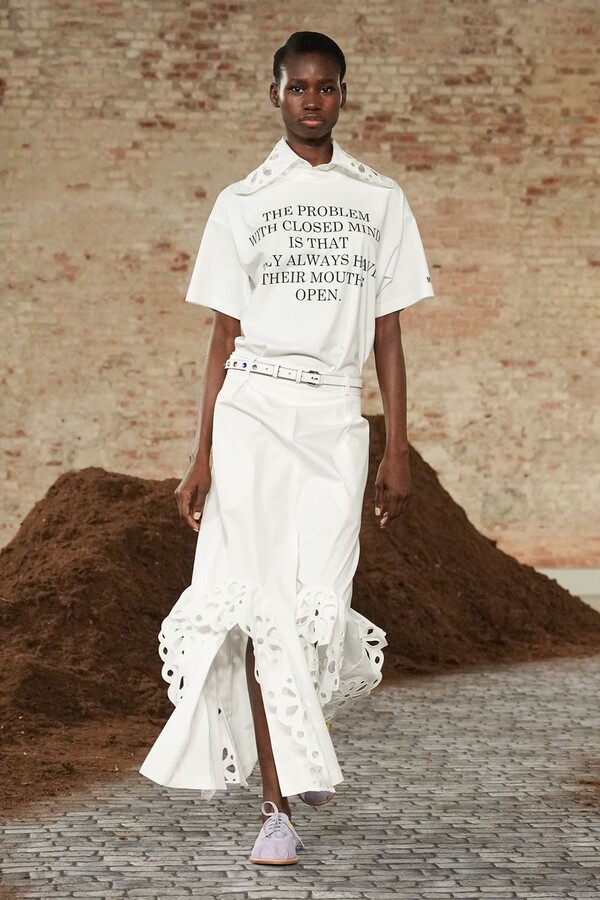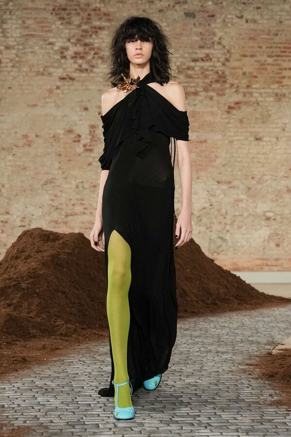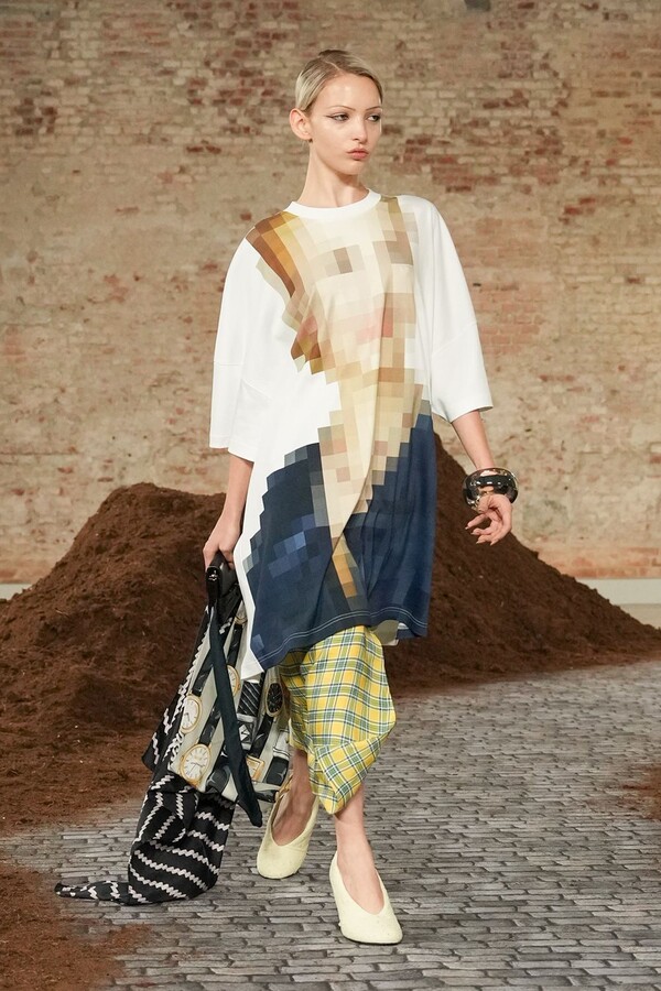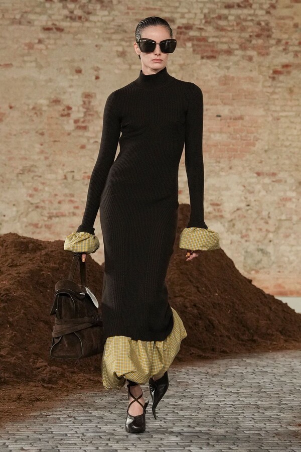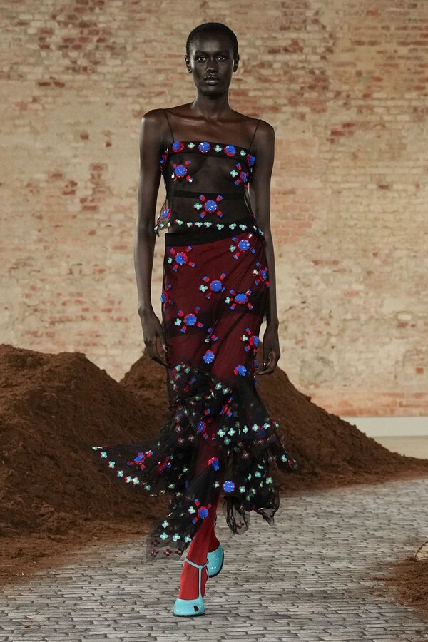 设计游走于服饰本身与批判之间。适合跳探戈的连衣裙充满戏剧张力;带有高乔风格的服饰则致敬田园浪漫主义;足球图案则注入了大众化的活力。配饰——尤其是新奇的包袋承载着丰富的概念性,有时甚至比服装本身更具决定性意义。