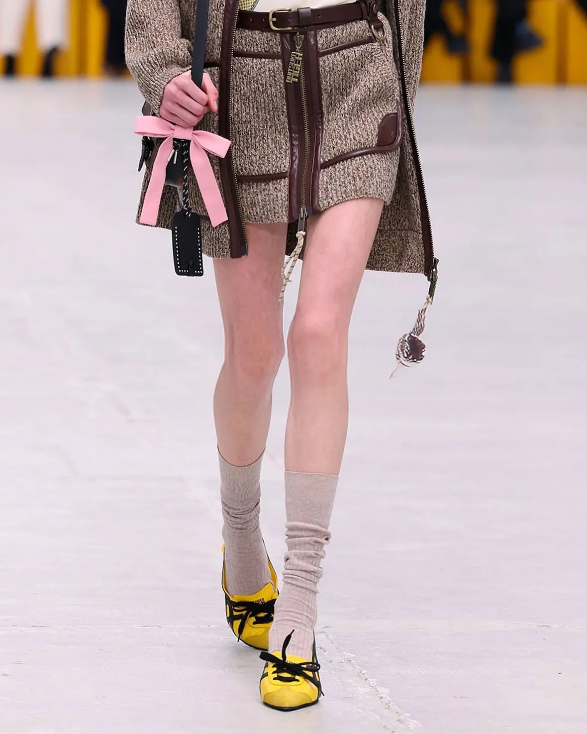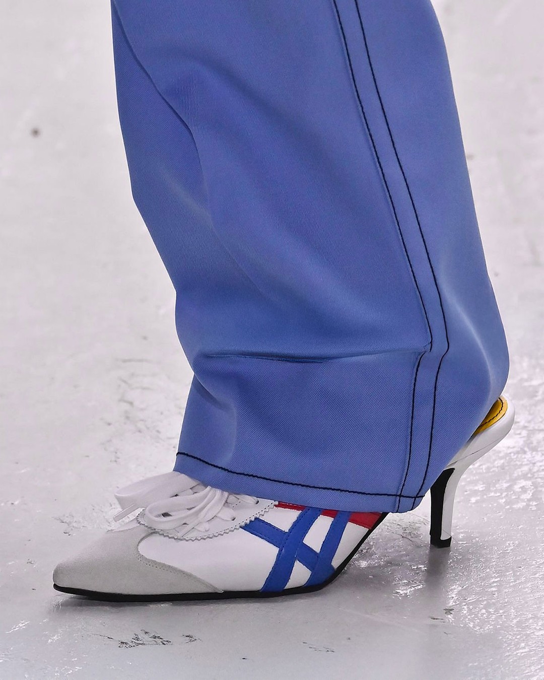 Onitsuka Tiger 正在将其经典鞋履设计推向新的领域,以迎接 2026 年秋季的到来。在最新发布的 2026 秋冬系列中,该品牌对其标志性的 Mexico 66 鞋款进行重新设计,大胆推出了一款将运动鞋传统和秀场造型融合的小猫跟版本。新款保留了原版的关键元素,同时提升了整体外观。尖头鞋型取代了传统的圆头,皮革鞋垫和环绕式鞋带则增添了精致时尚的气息。标志性的侧边条纹依然保留,以传承 Mexico 66 鞋型的最初基因。