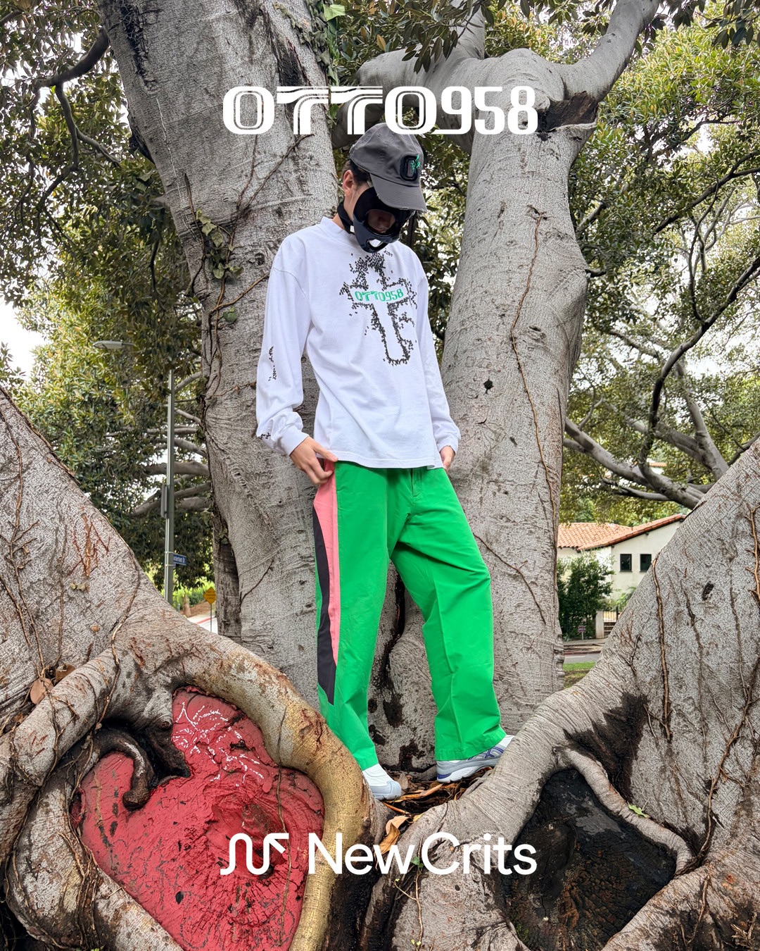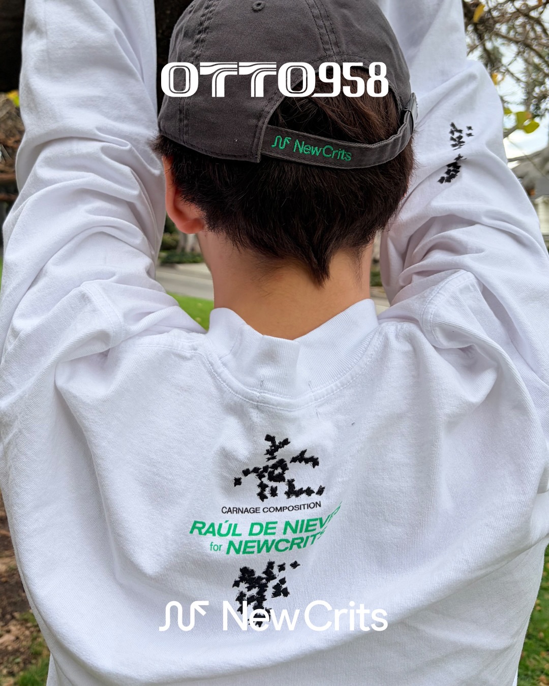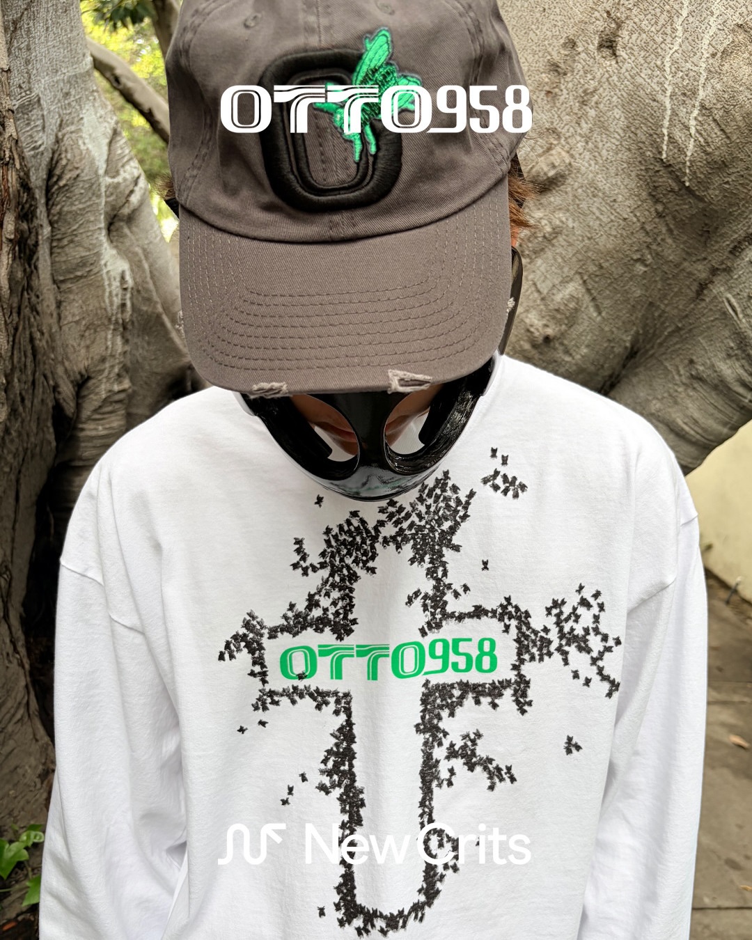 OTTO 958 近日携手线上创意平台 NewCrits 推出全新联名单品。此次合作带来一顶 6 片式 Canazzi Composition 帽款与一件长袖 T 恤。设计上,帽款正面以标志性的「O」字 Logo 为核心,并点缀一只停驻其上的苍蝇图案;背面则绣有 NewCrits 标识,形成鲜明呼应。整体风格延续 OTTO 958 一贯的实验气质,同时融入平台属性,呈现出兼具艺术感与街头态度的视觉表达。
